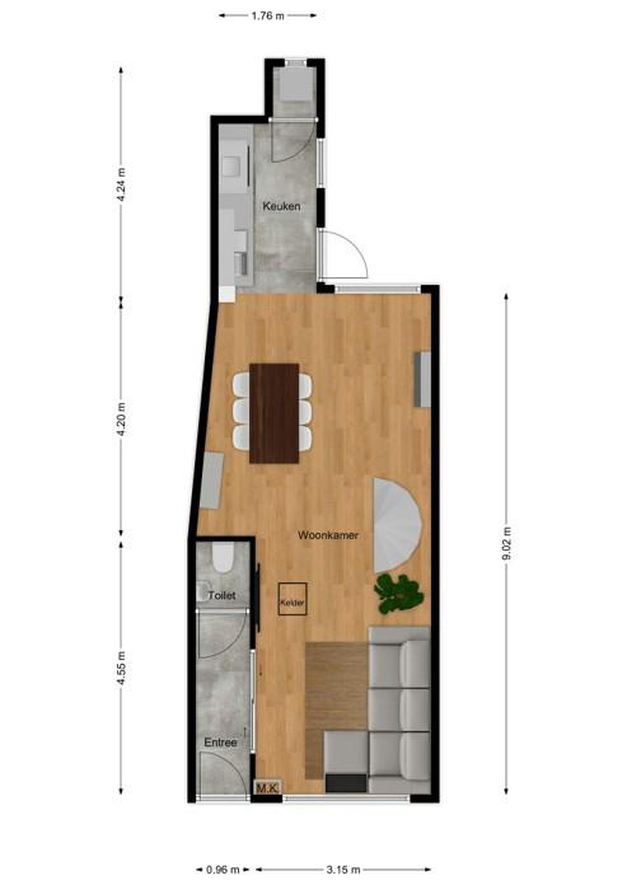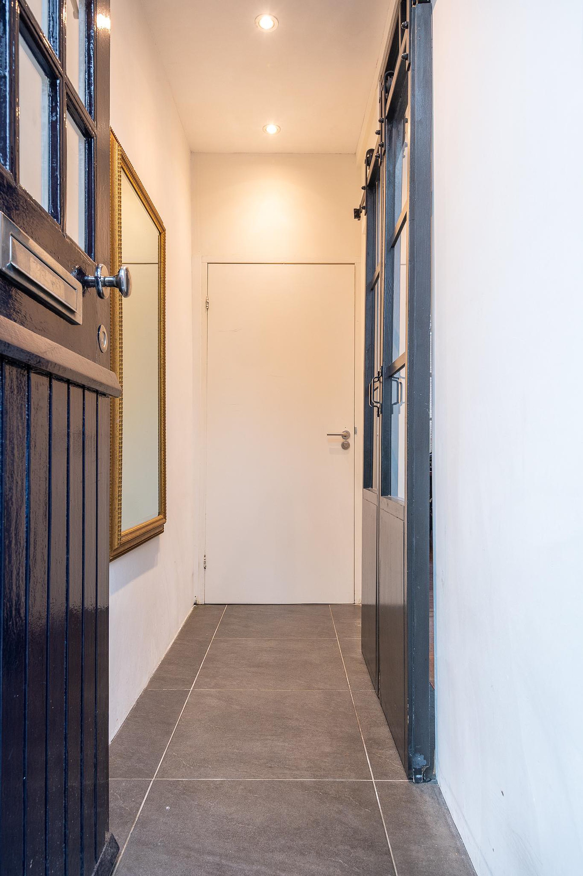 Begane grond Hal-/entree voorzien van tegelvloer, toilet, middels schuifdeuren toegang tot de woonkamer;