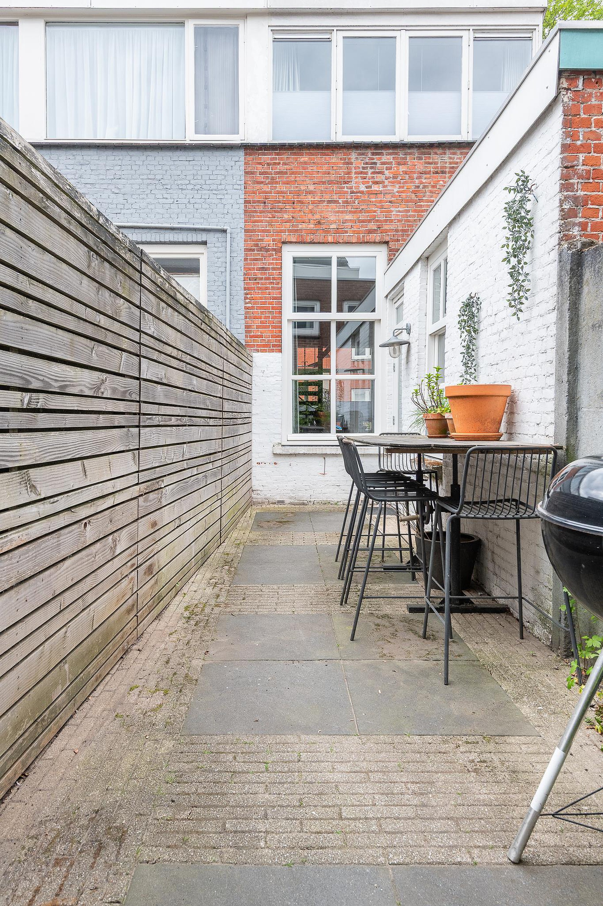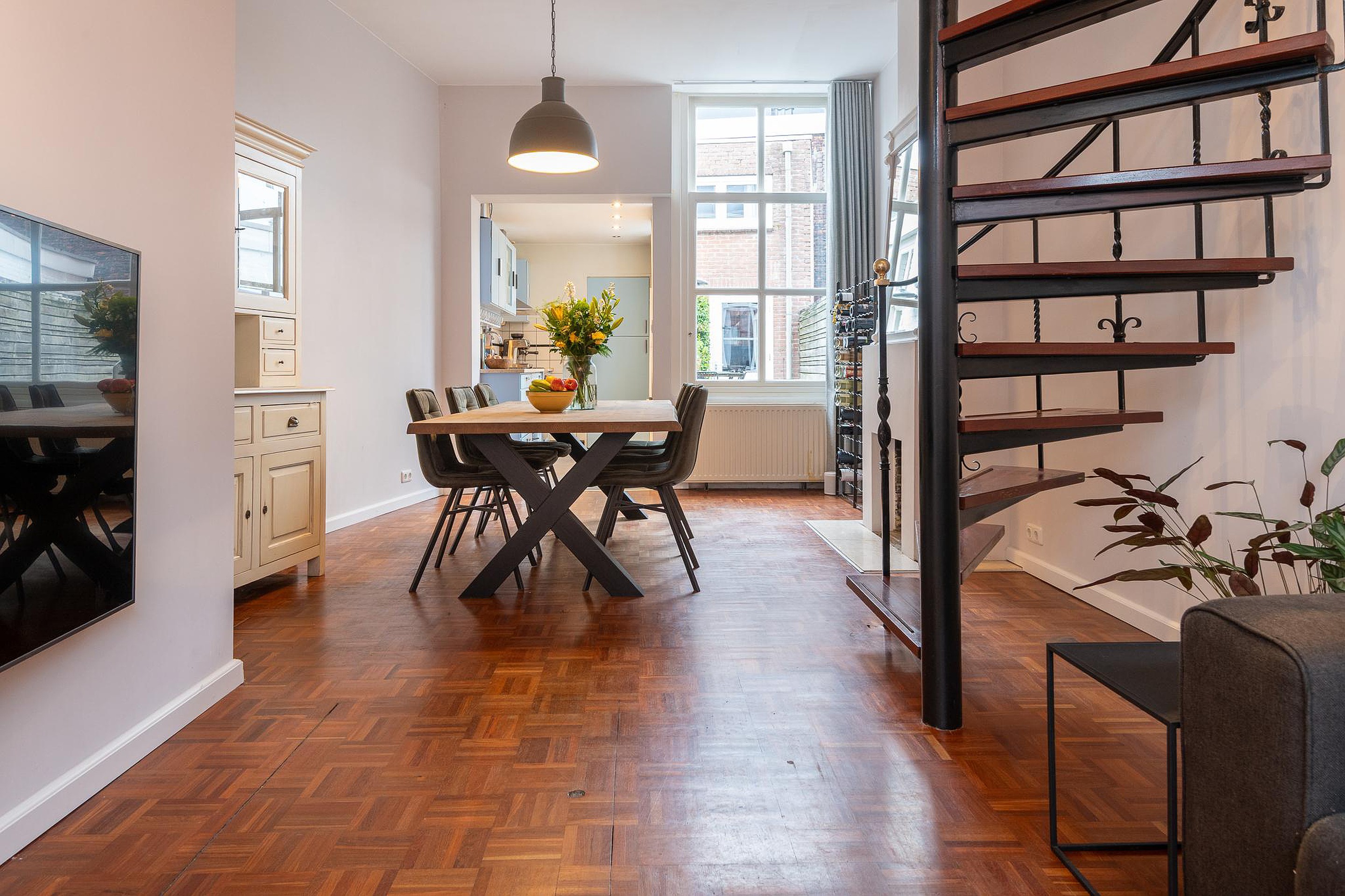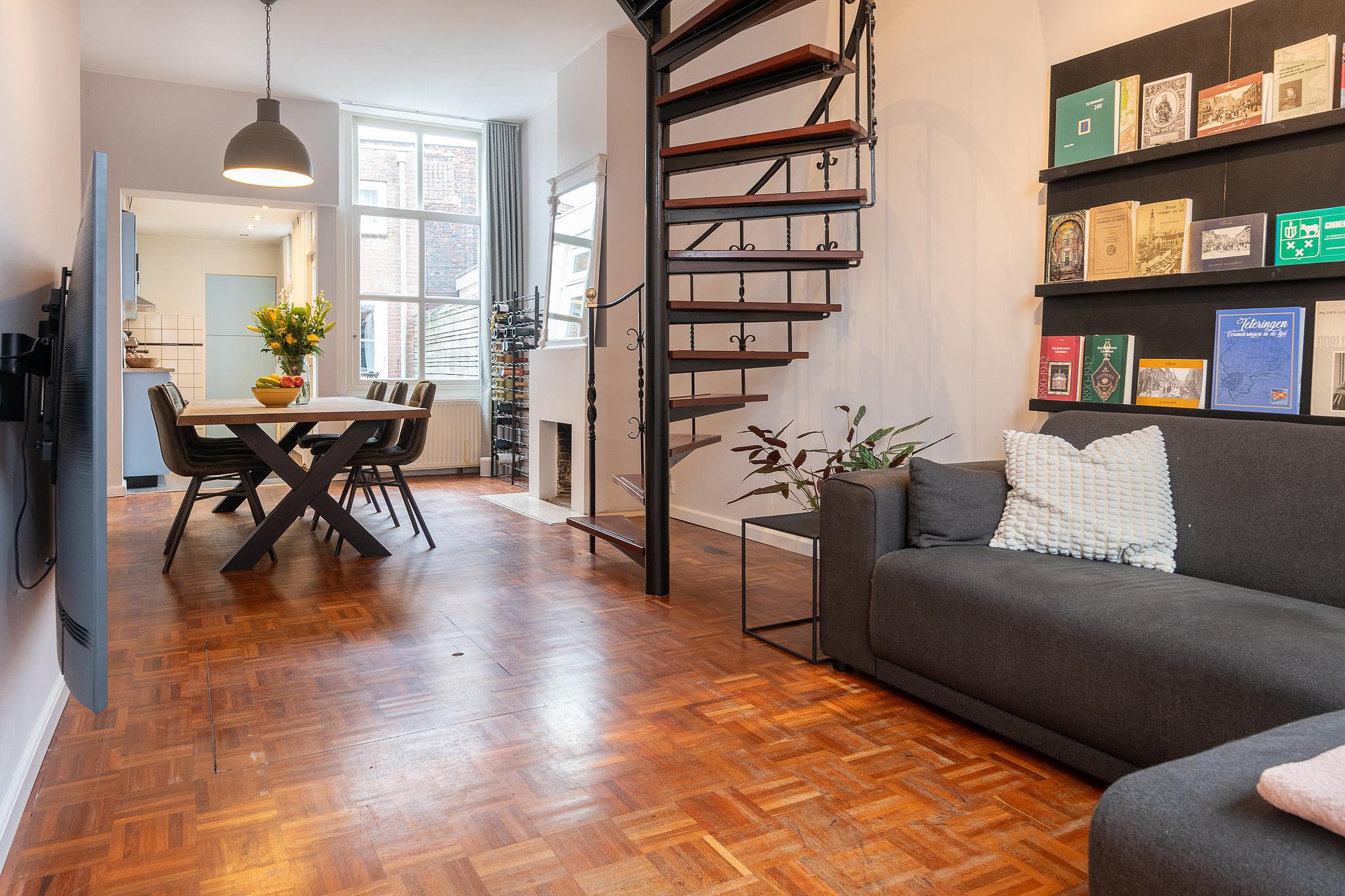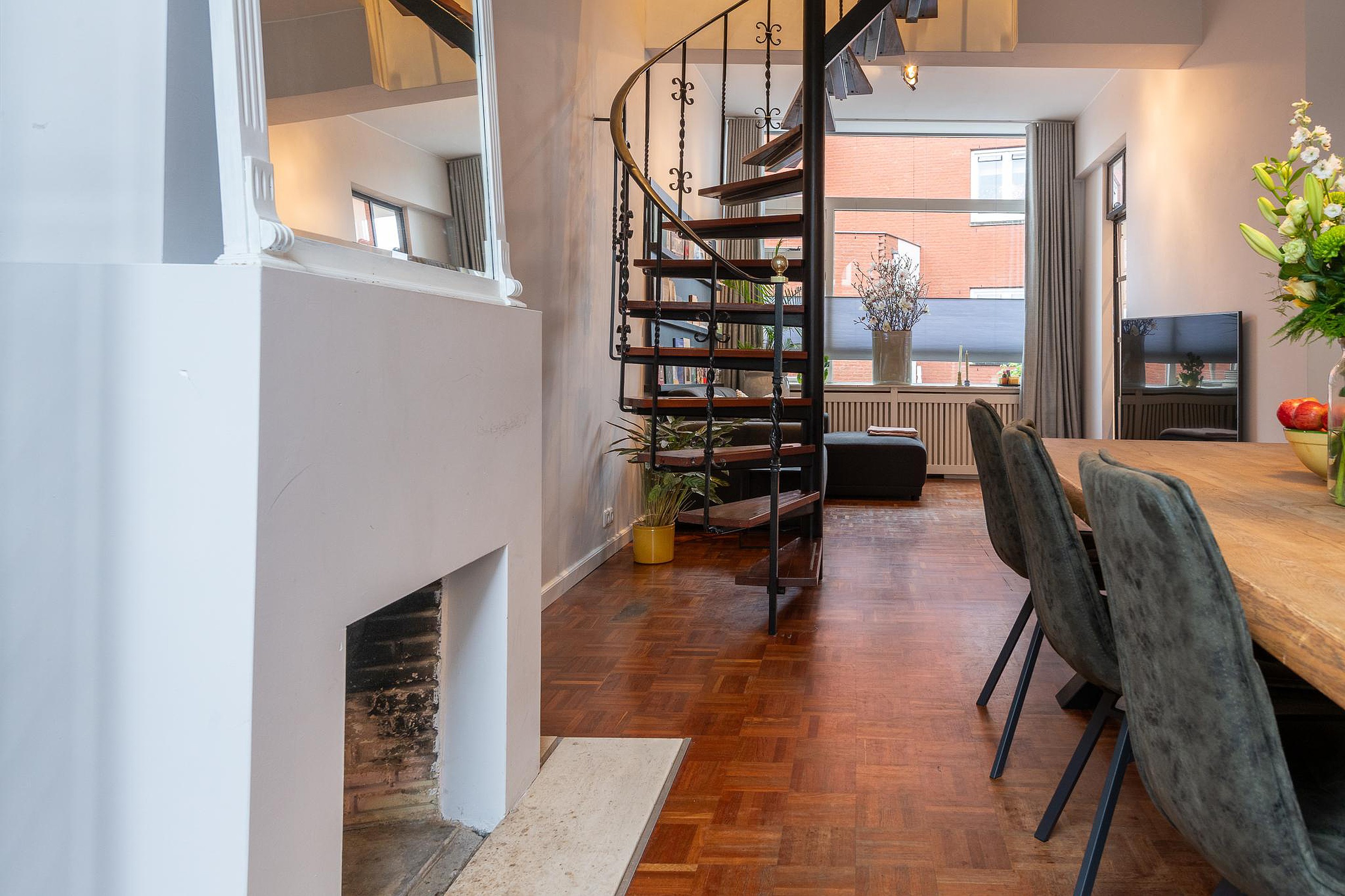 Daarnaast beschikt de woning over een riante en lichte living met sfeervolle haard, semi open keuken (ontwerp van Piet Zwart), 2 slaapkamers, 2 toiletten, badkamer met inloopdouche. De zonnige binnentuin biedt volop privacy.