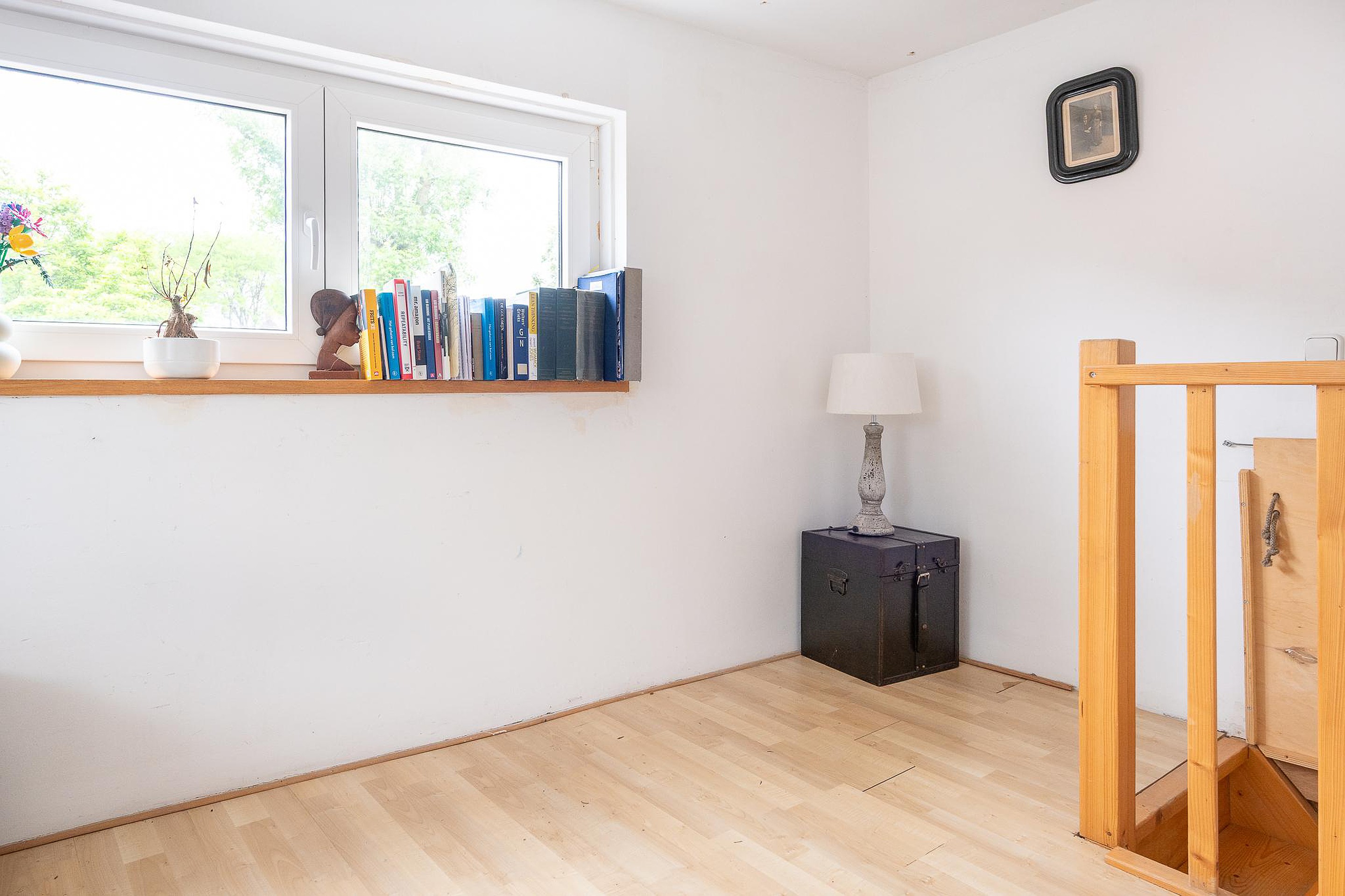 Eerste verdieping Overloop met laminaatvloer met losse kast voorzien van bergruimte. Toegang tot de 2 slaapkamers en badkamer;