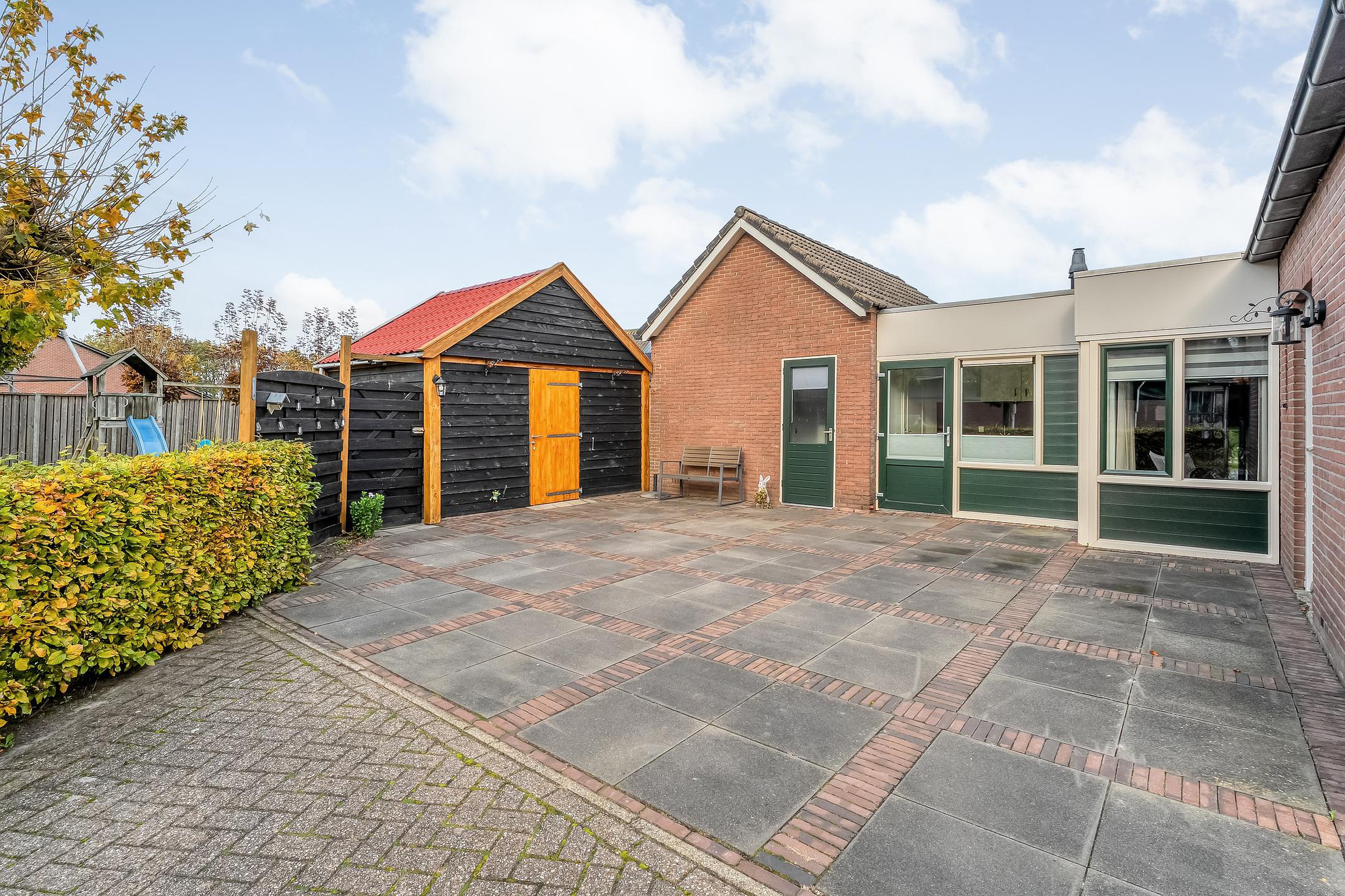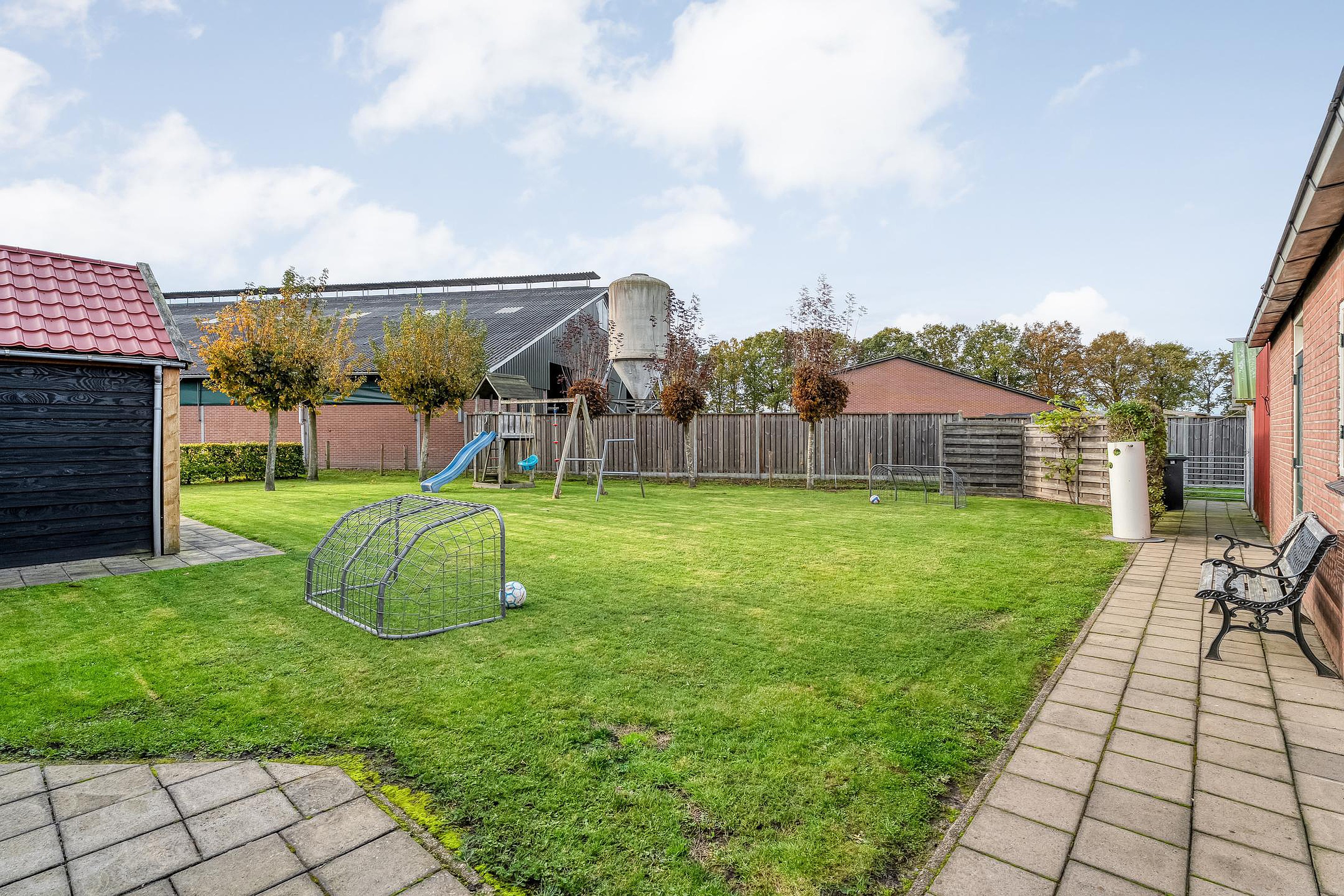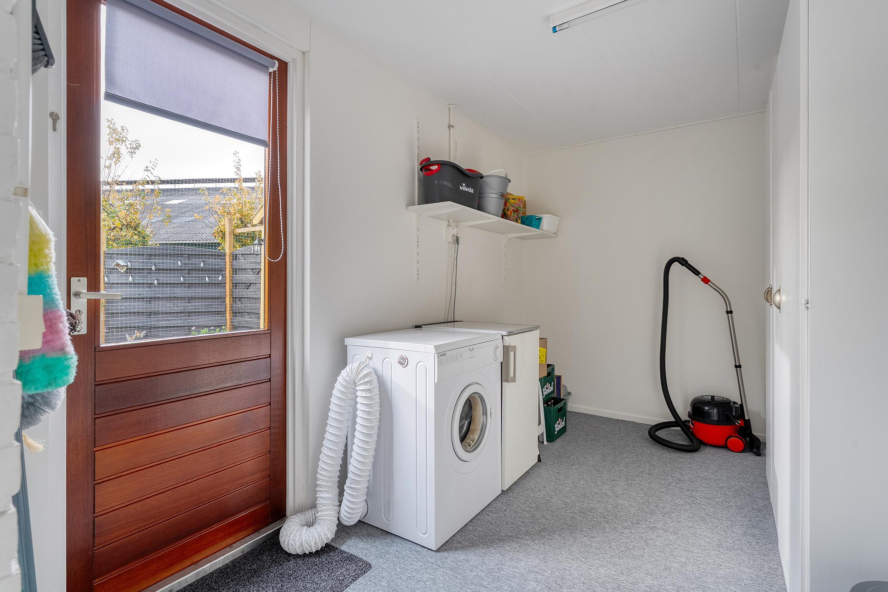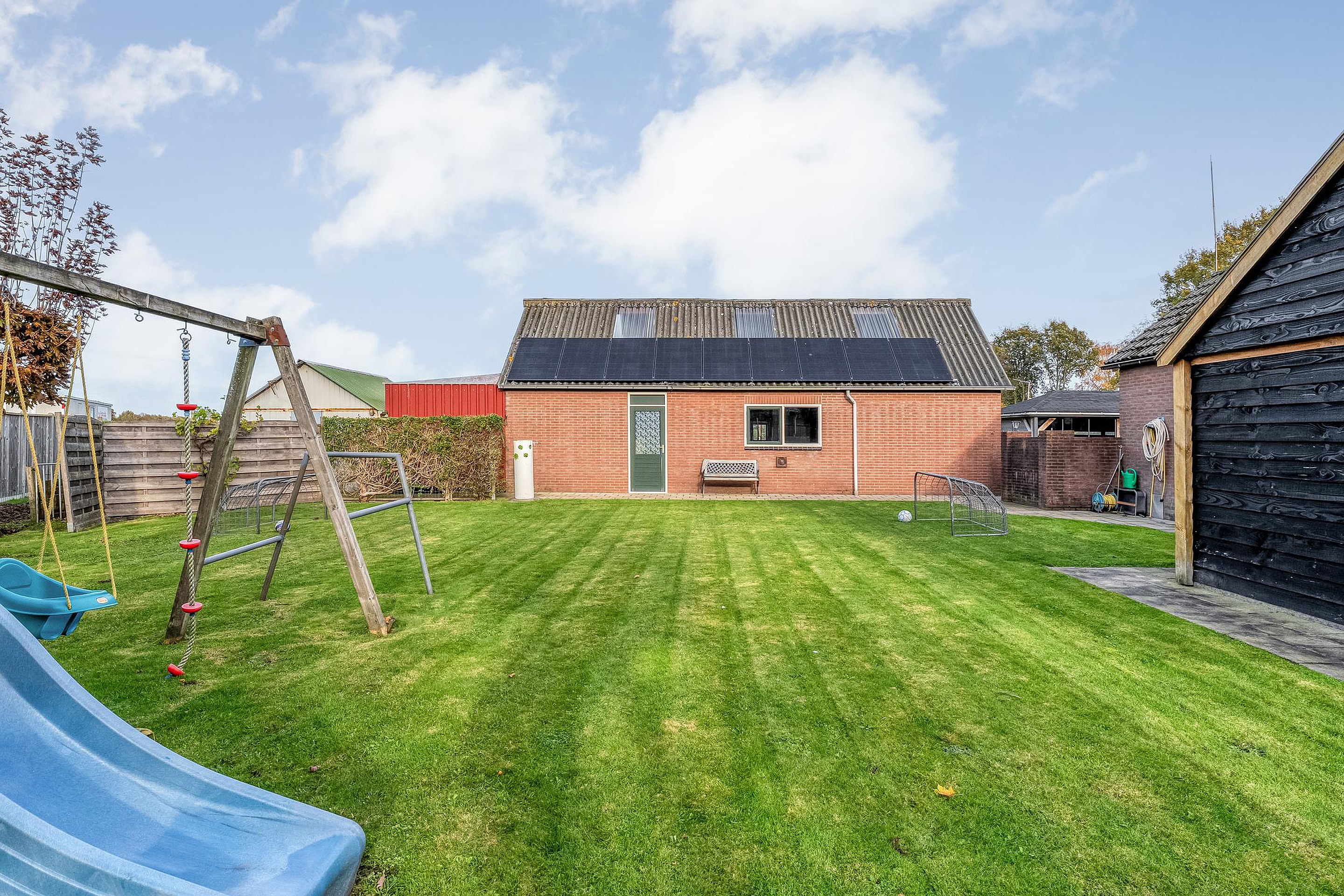 Aan de achterzijde bevinden zich de woonkeuken, bijkeuken en aangebouwde berging.