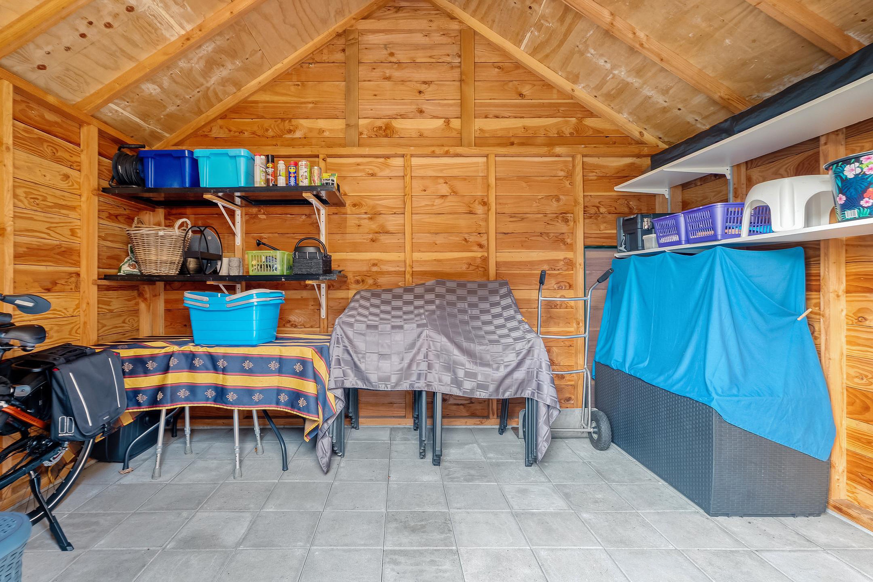 Op het perceel bevinden zich meerdere mogelijkheden om de auto te parkeren alsmede een royale garage/berging met geitenhok en een overkapping.