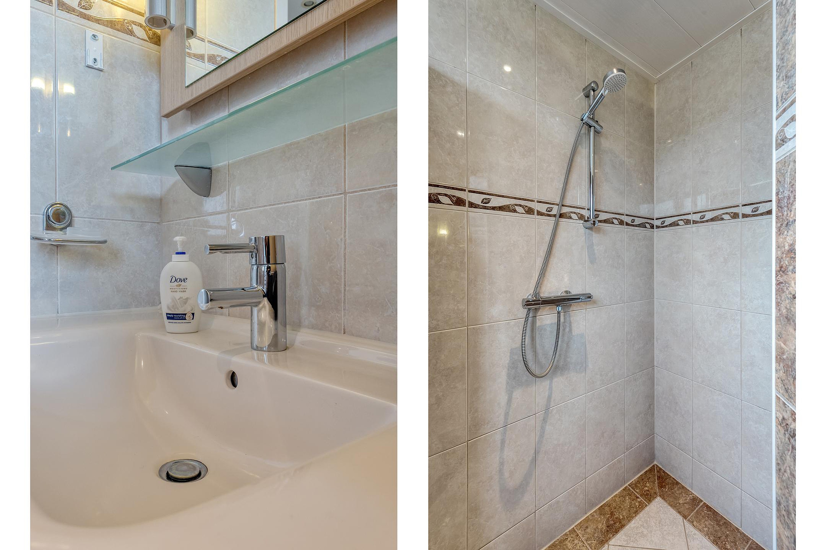 Op de verdieping bevinden zich een overloop met drie slaapkamers, bergruimte, stookruimte en badkamer die vergroot is dmv een dakkapel. De badkamer kent een wastafel, douche en toilet.