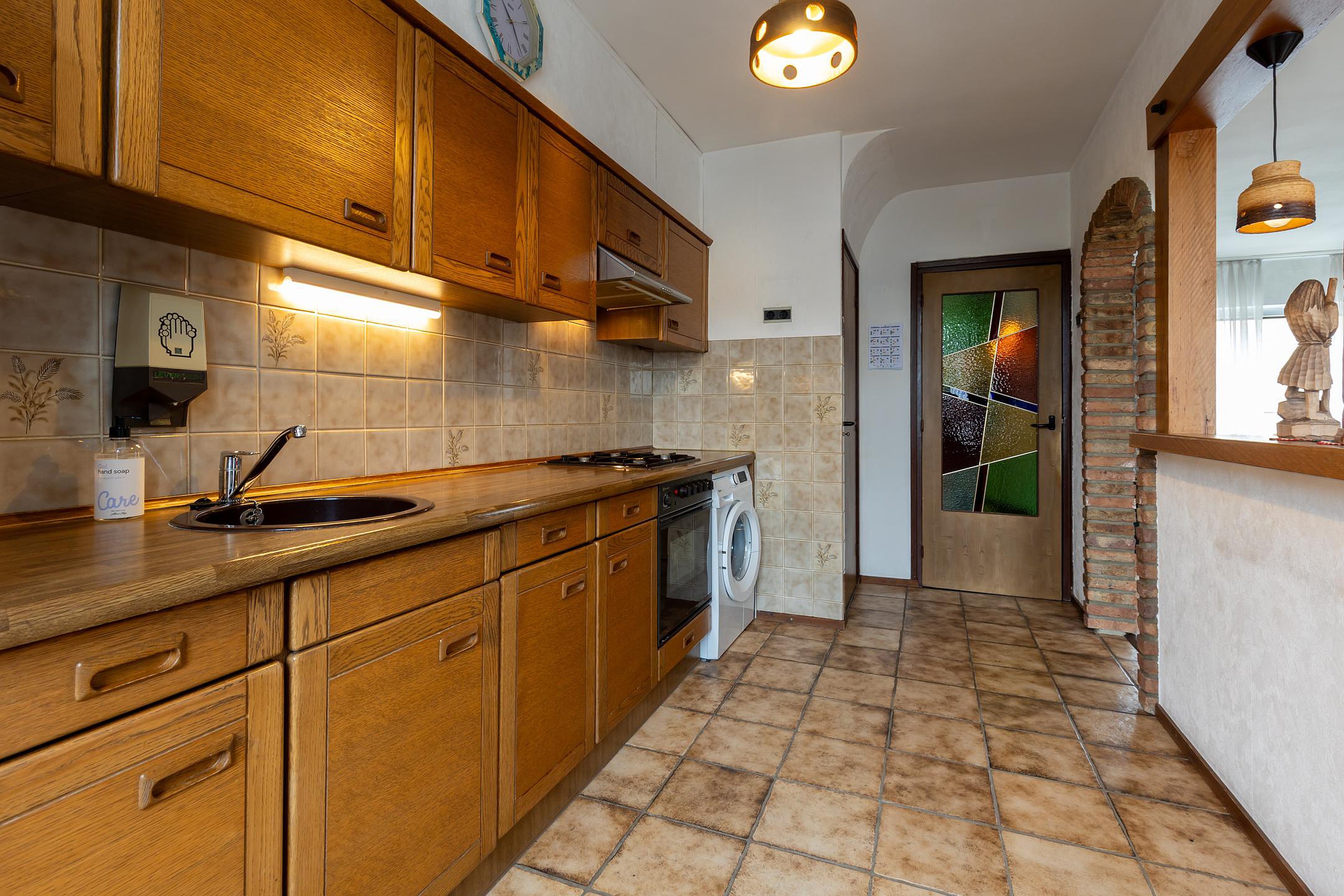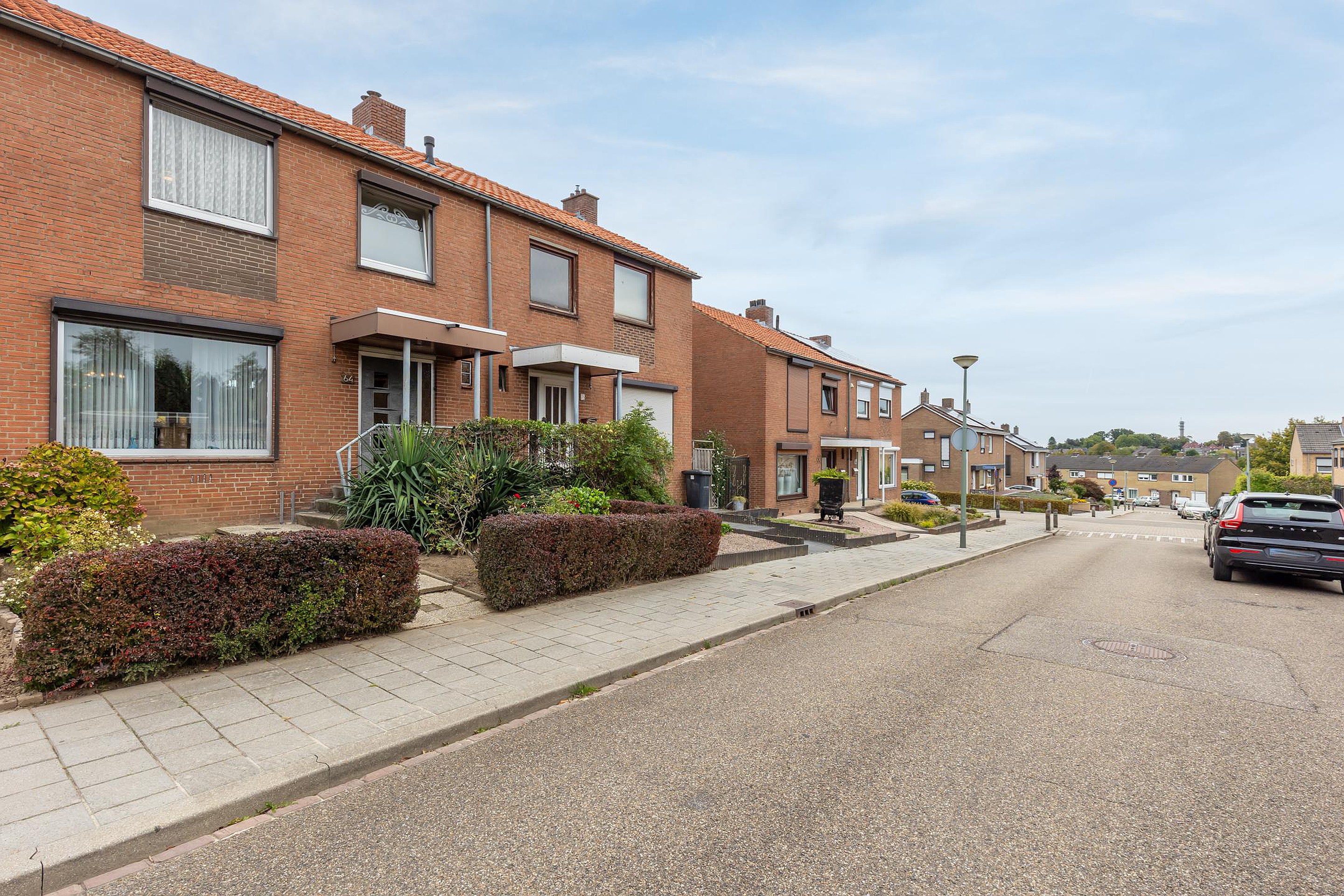 In Brunssum-Noord, rustig gelegen tussenwoning met garage en tuin. Nabij basisschool, lokaal winkelcentrum, oprit Buitenring/N276 en A76. Indeling: entree, hal, meterkast, toiletruimte, doorzon woonkamer met open haard en parketvloer, half-open keuken met diverse apparatuur, kelderkast.