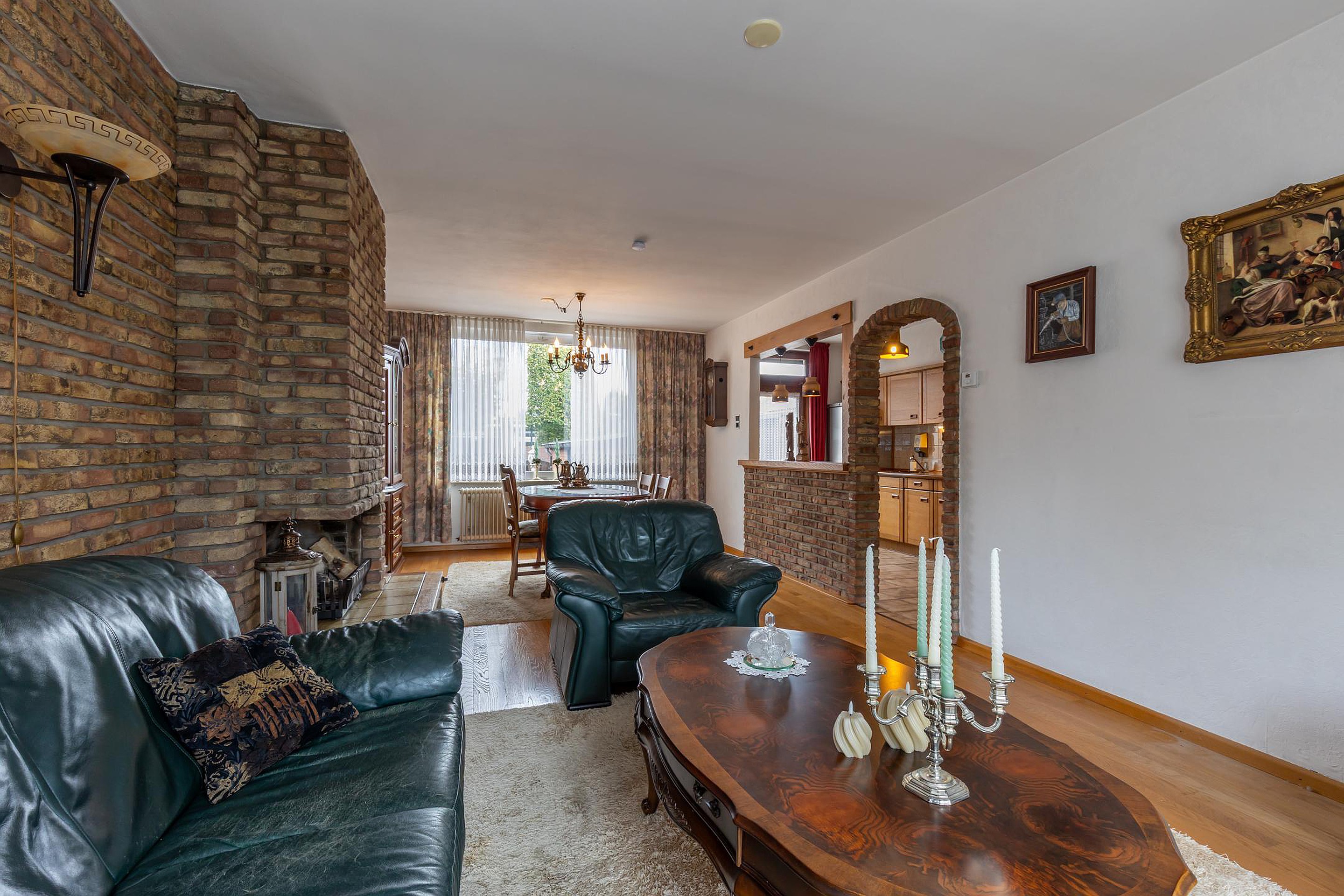 Begane grond entree, hal, meterkast, toiletruimte, doorzon woonkamer (29m2) met parketvloer en open haard, half-open keuken (9m2) met oven, afzuigkap, koel/vriescombinatie en 4-pits gaskookplaat, geiser