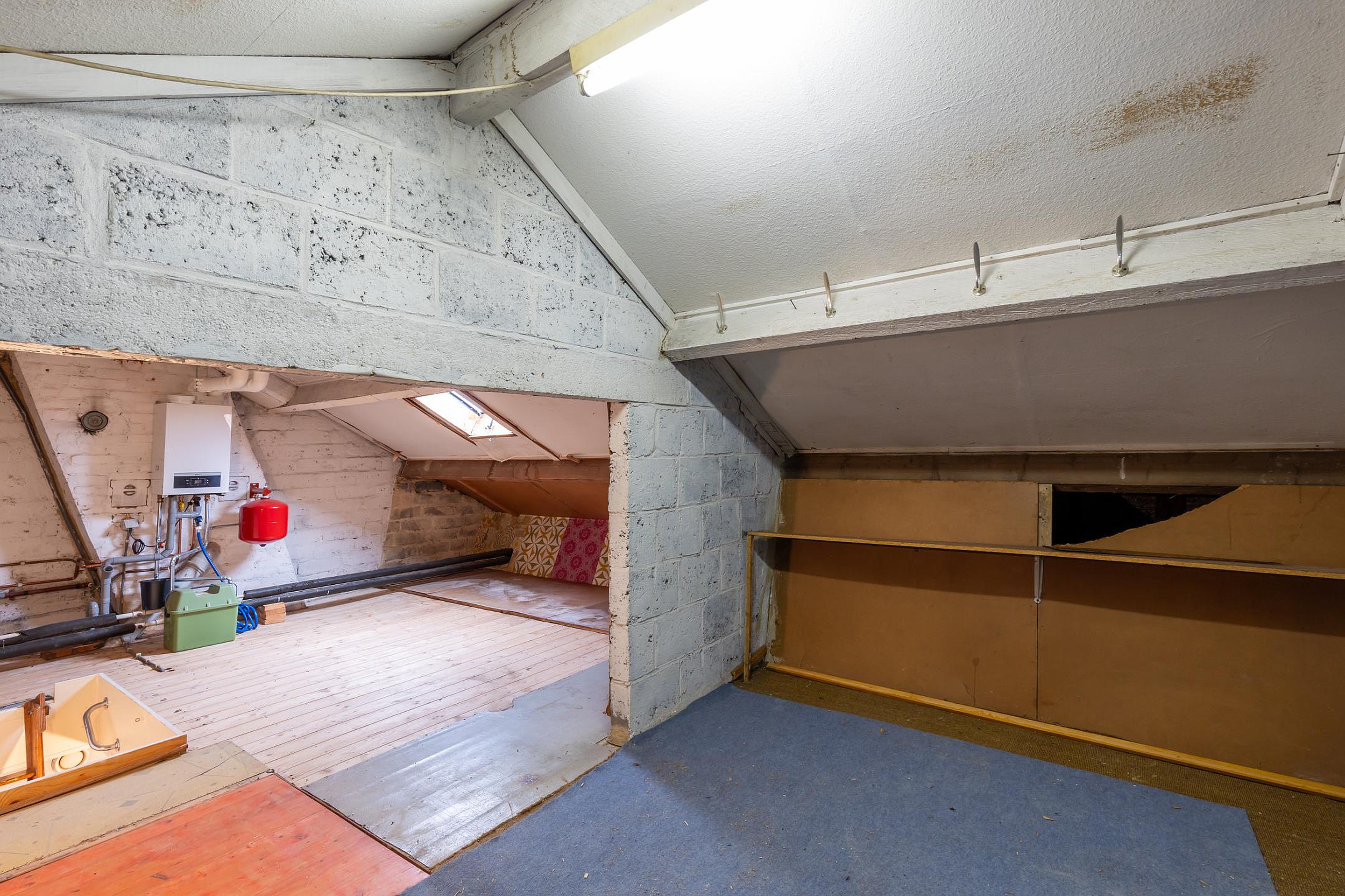 Tweede verdieping middels vaste houten (steek)trap bereikbare bergzolder met cv ketel (type HR-combi, eigendom, 2023)