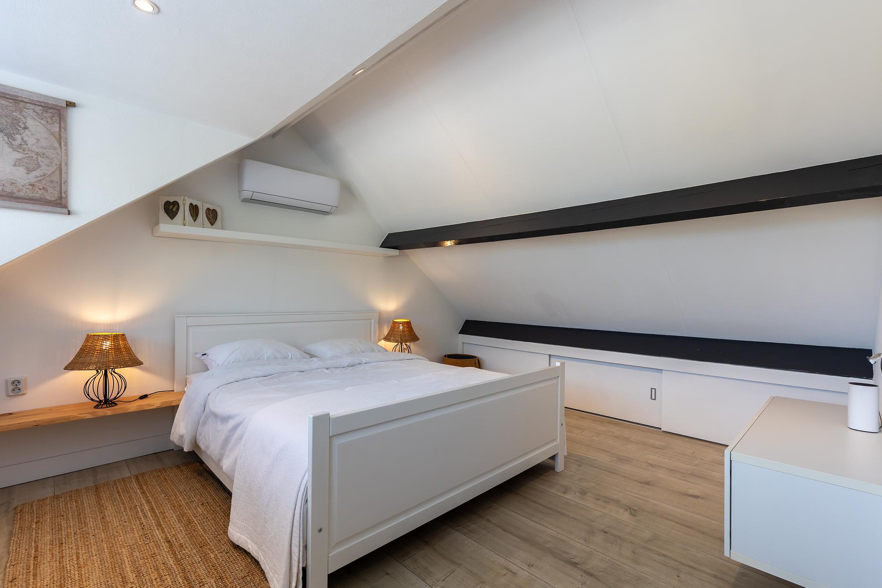 Tweede verdieping middels vaste trap via lichte overloop naar royale zolder met zolderkamer (23m2) met airco en dakkapel, c.v.berging (type HR-combi, eigendom, 2016) en aparte bergruimtes