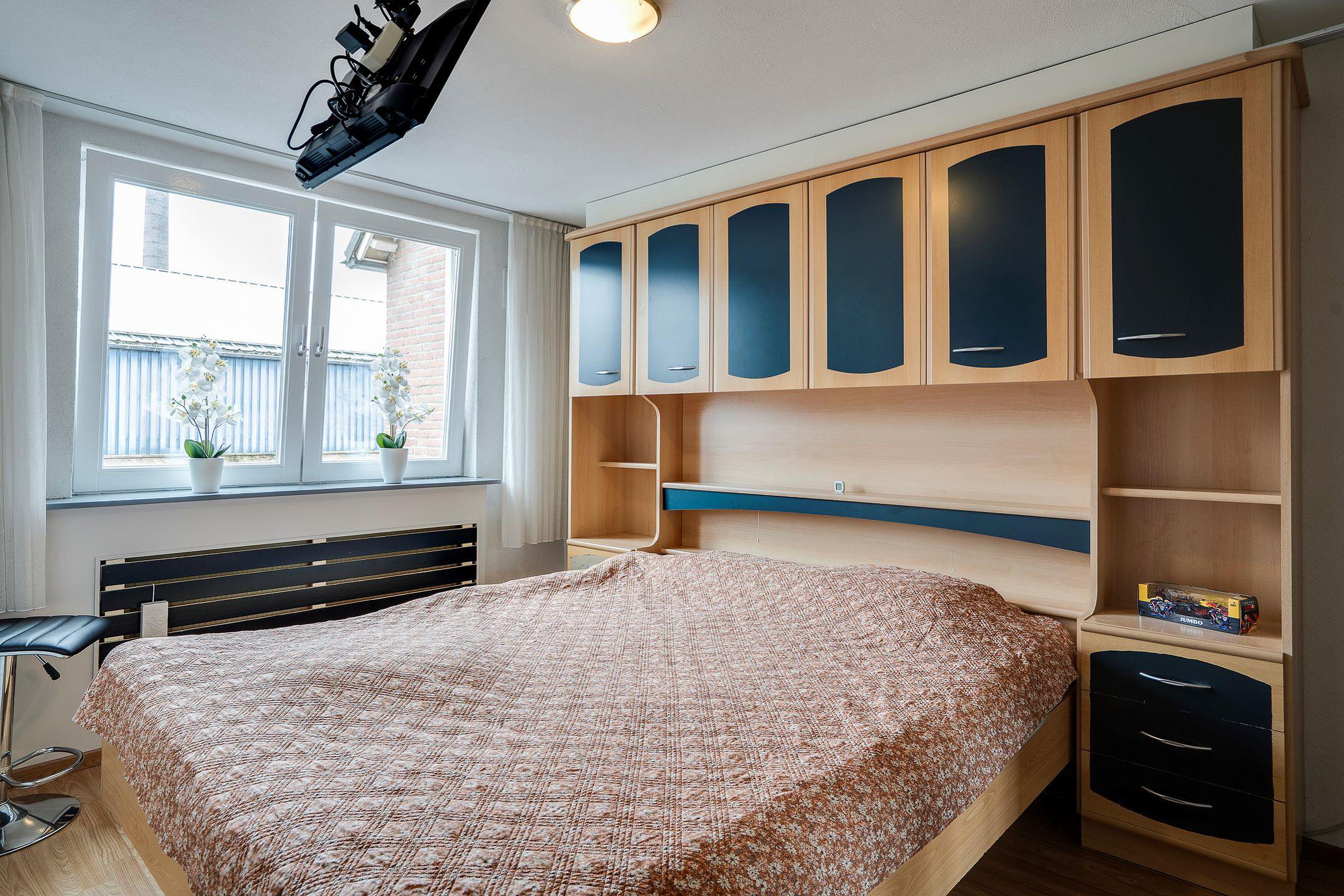 Op de eerste verdieping bevinden zich drie volwaardige slaapkamers, waaronder één die momenteel is ingericht als walk-in closet of hobbyruimte. De ruime masterbedroom aan de achterzijde van circa 13 m2 biedt volop plek en comfort, terwijl de twee overige slaapkamers aan voor- en achterzijde eveneens netjes zijn afgewerkt en voldoende ruimte bieden voor gezin, werk of hobby.