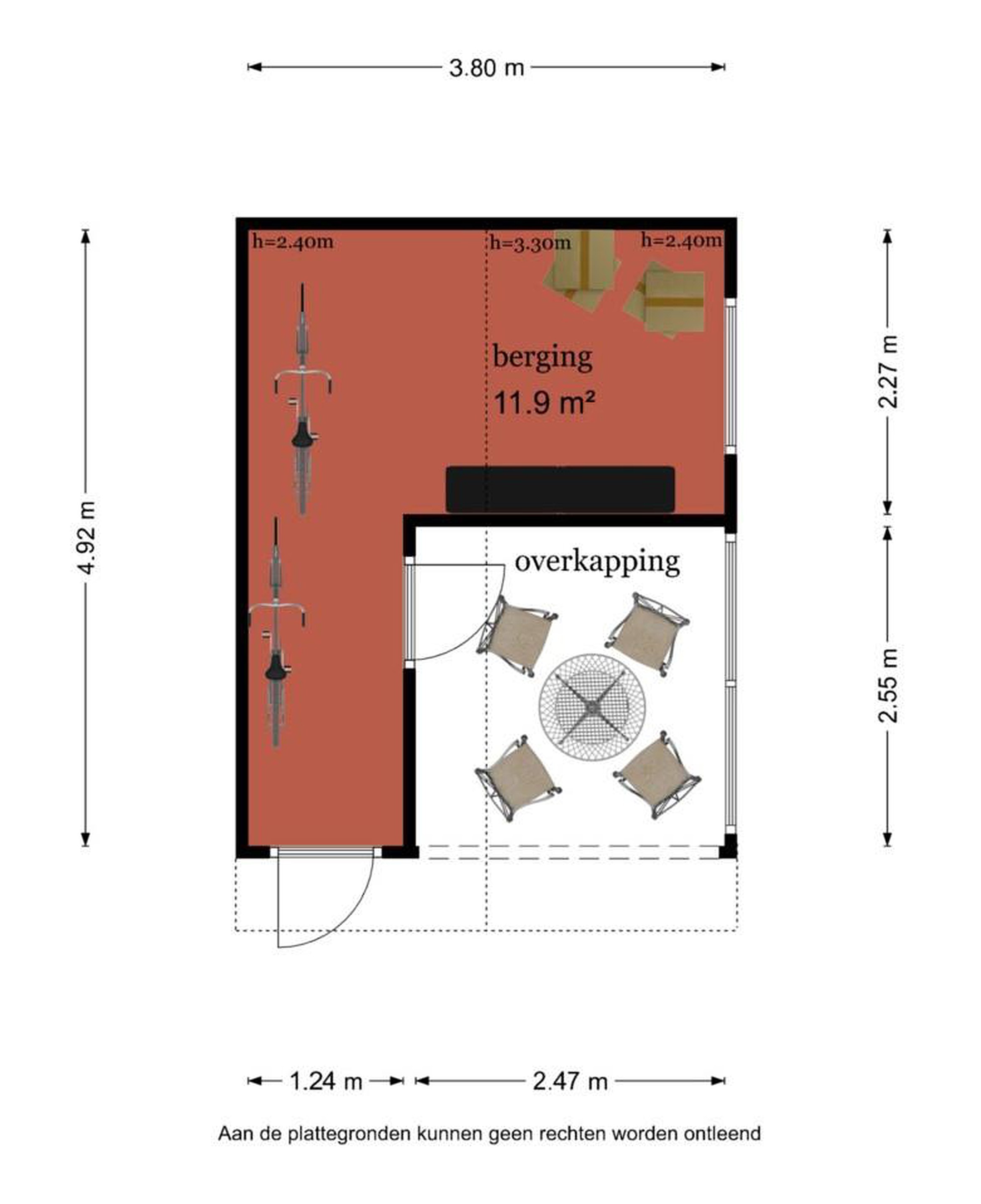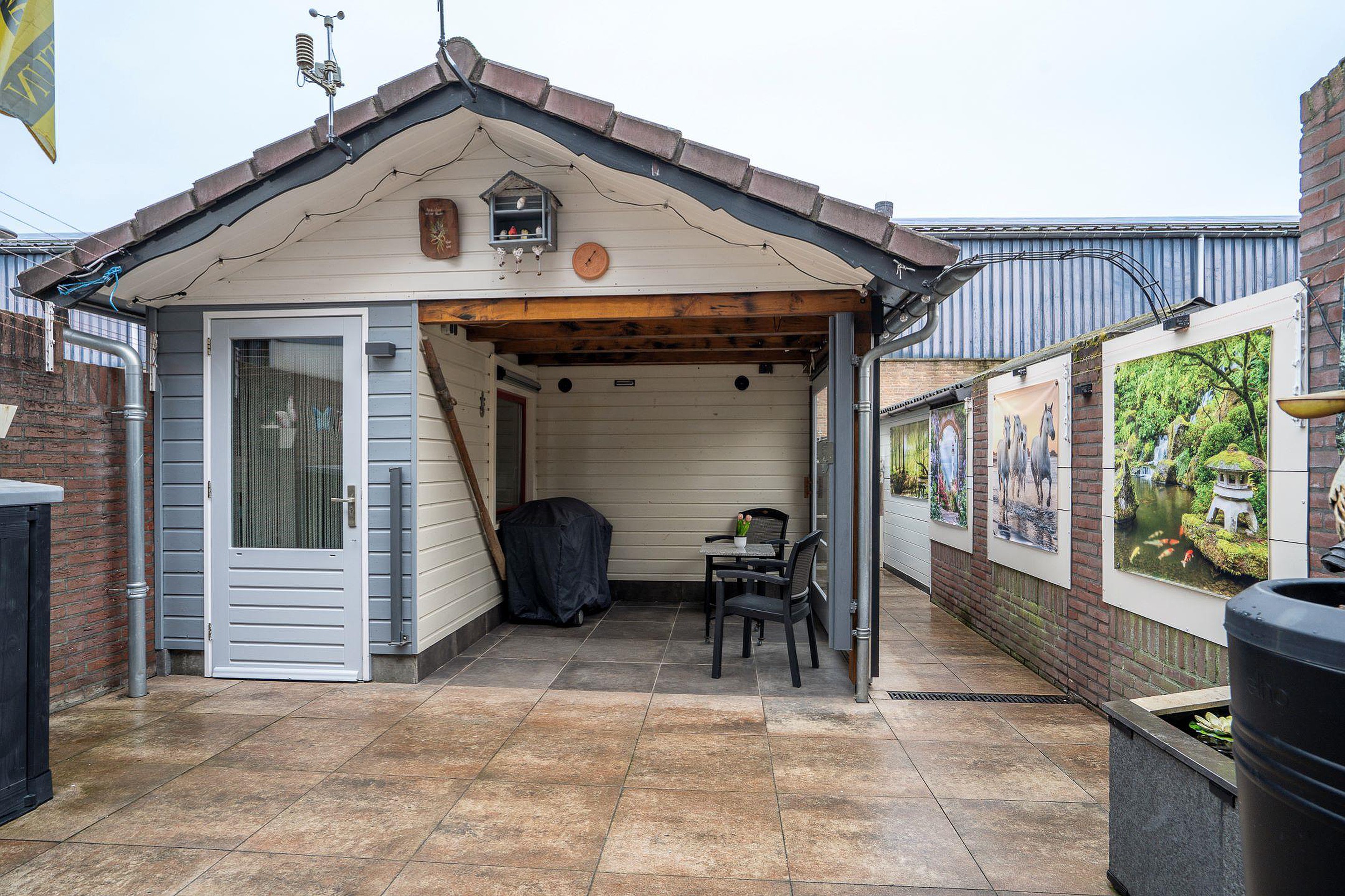 - Grote, geïsoleerde buitenberging met overkapping.