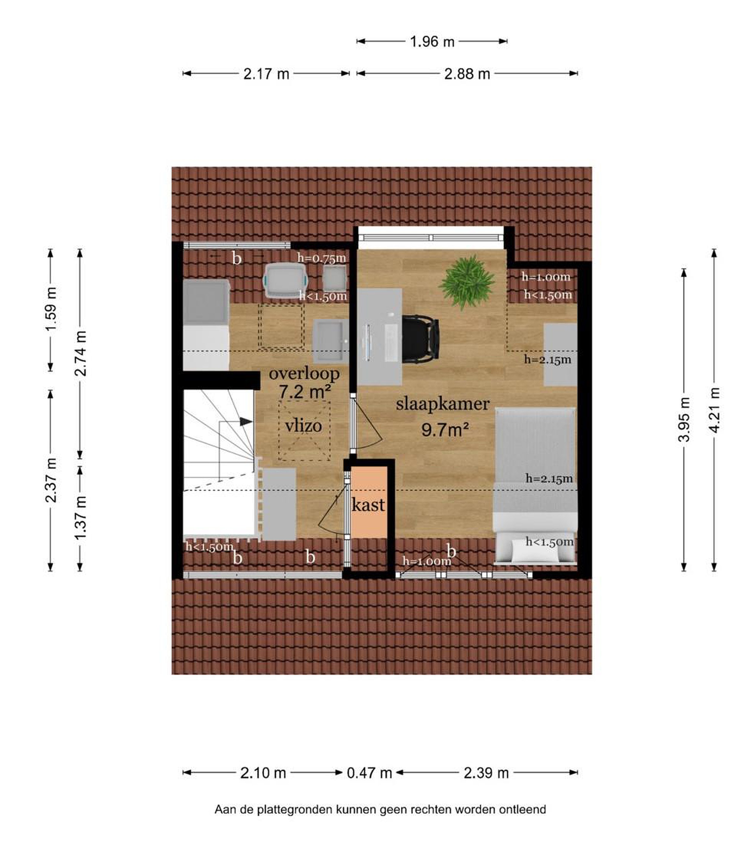 Via een vaste trap bereikt u de tweede verdieping, waar een ruime vierde slaapkamer is gesitueerd. Dankzij de dakkapel valt er volop natuurlijk licht binnen, waardoor de kamer een frisse en prettige uitstraling heeft. De kamer is afgewerkt met een laminaatvloer.