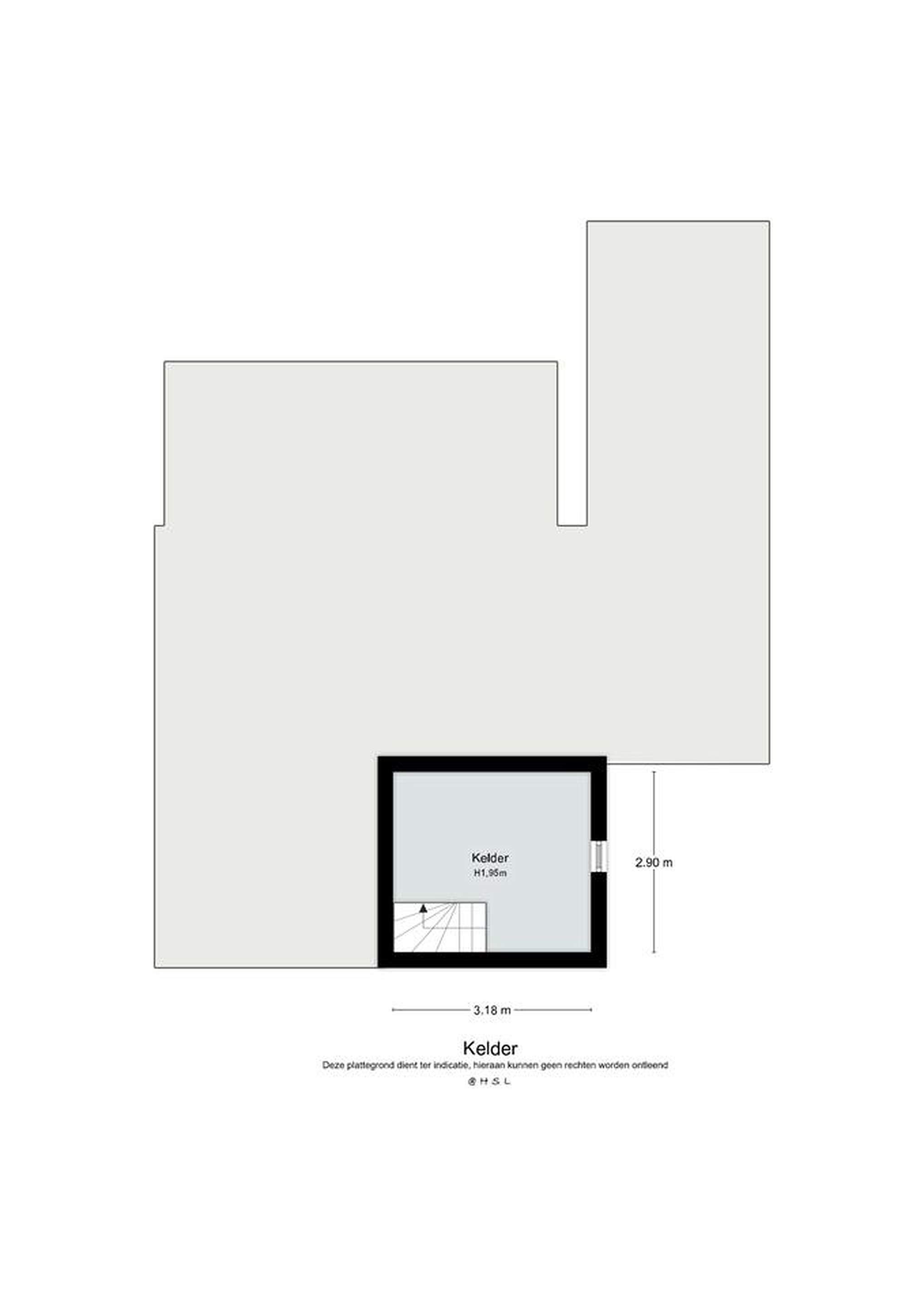 - Provisiekelder (circa 9 m2, hoogte circa 1,95 m).