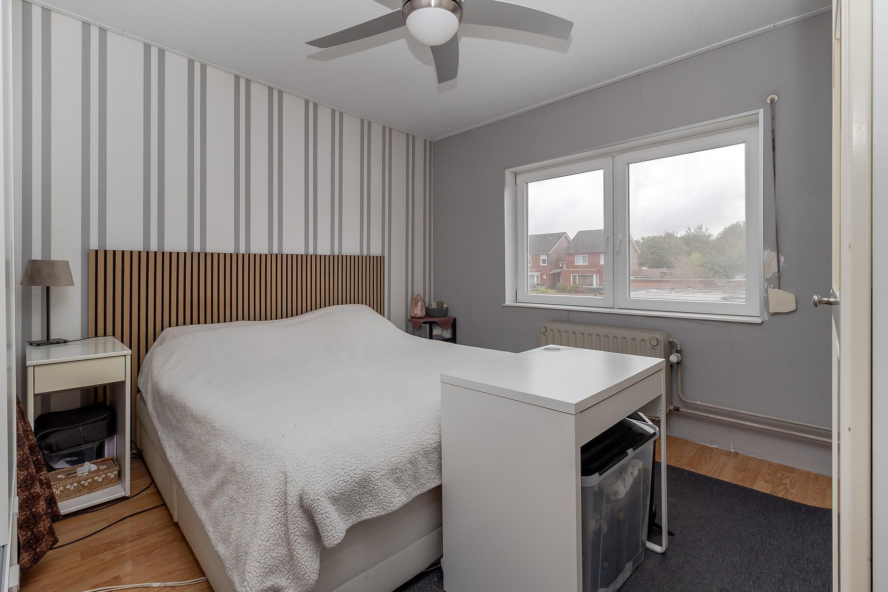 - Slaapkamer 4 (circa 4,5 m2) is voorzien van een laminaatvloer en een muurkast. Deze ruimte zou ook geschikt zijn voor het realiseren van een badkamer op de eerste verdieping.