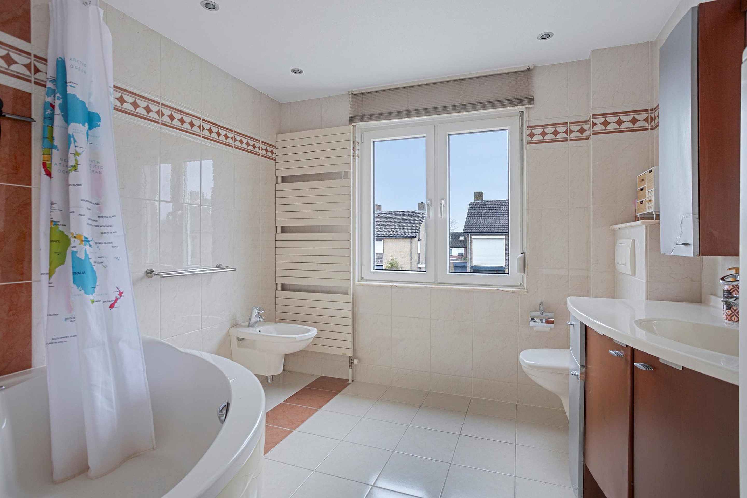 Overloop met toegang tot de drie slaapkamers, badkamer en trapopgang naar de tweede verdieping. De geheel betegelde badkamer (ca.7m2) is ruim van opzet en is voorzien van een hoek ligbad, wastafel in meubel met bovenkast en spiegel met verlichting, wandcloset en bidet. Slaapkamer I (ca.15m2) met balkon aan de voorzijde gelegen beschikt over een ingebouwde kastenwand en is voorzien van een parketvloer. Slaapkamer II (ca.15m2) en slaapkamer III (ca.10m2) bevinden zich beide aan de achterzijde. Beide slaapkamers beschikken over een laminaatvloer. De overloop over een parketvloer.