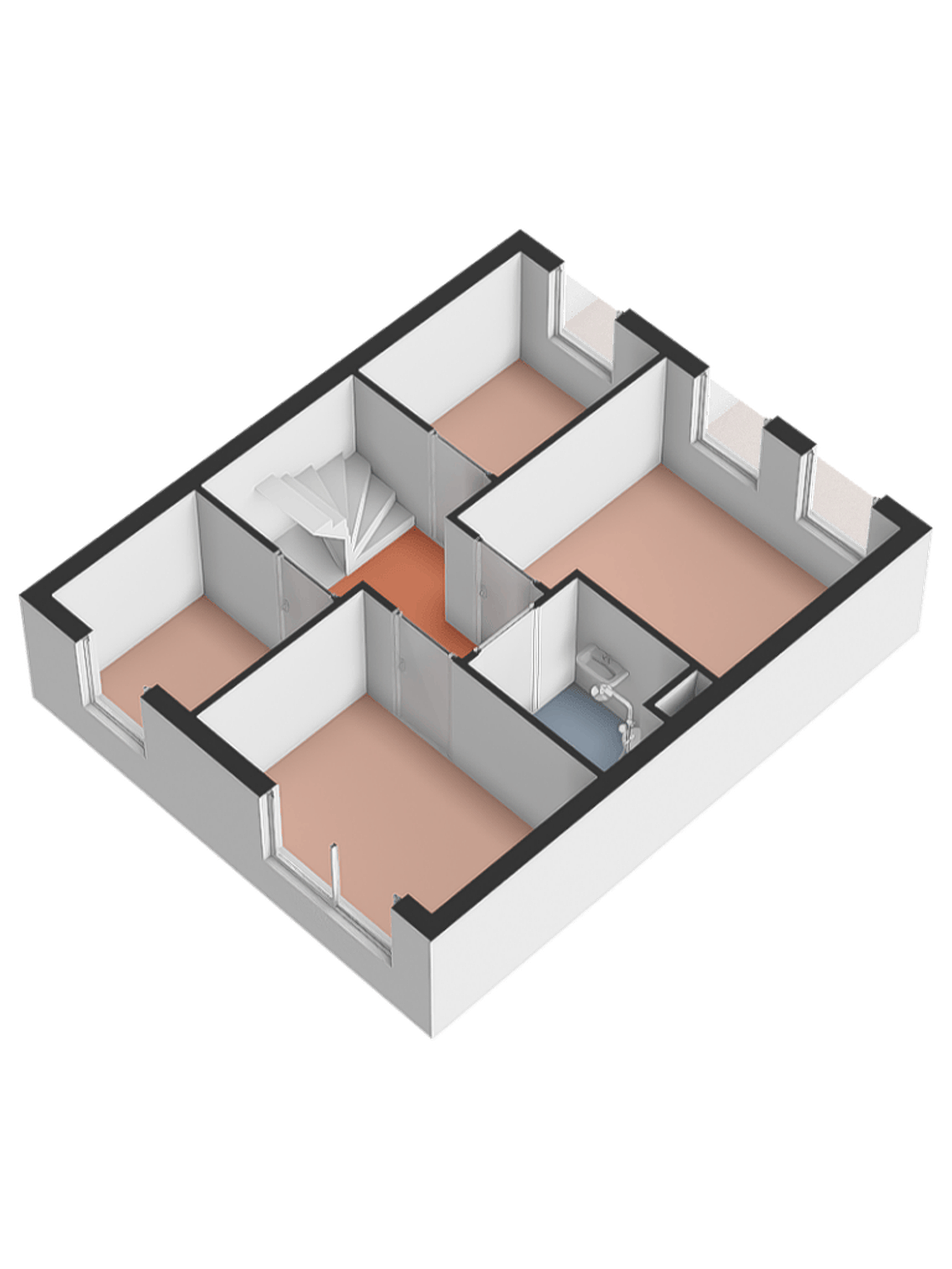 Eerste verdieping Via de trap bereik je de overloop op de eerste verdieping. Vanaf hier zijn alle vertrekken toegankelijk. Op deze verdieping bevinden zich vier slaapkamers, waarvan twee aan de voorzijde en twee aan de achterzijde van de woning. De kamers variëren in grootte en zijn daardoor geschikt als hoofdslaapkamer, kinderkamer, werkkamer of hobbyruimte.