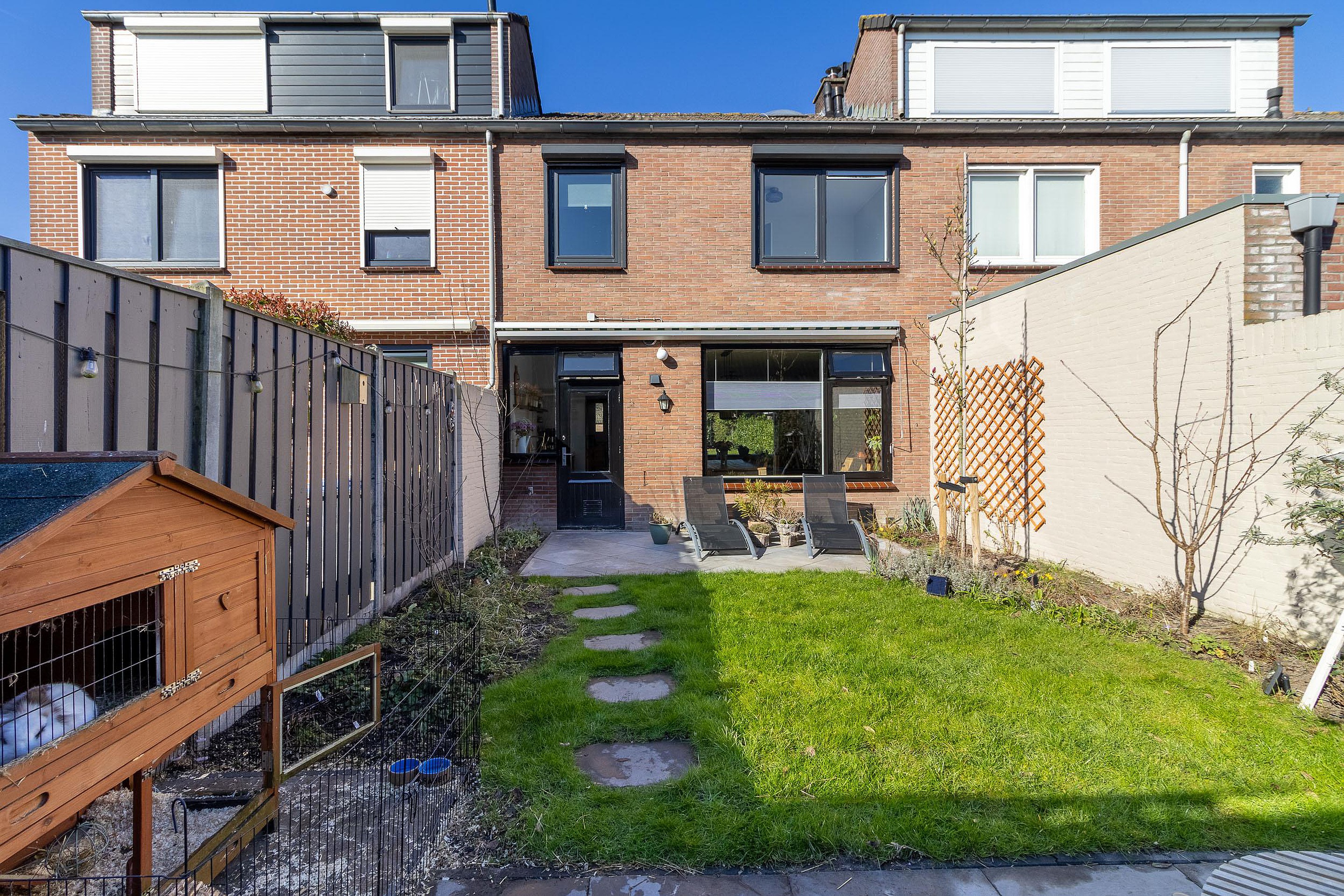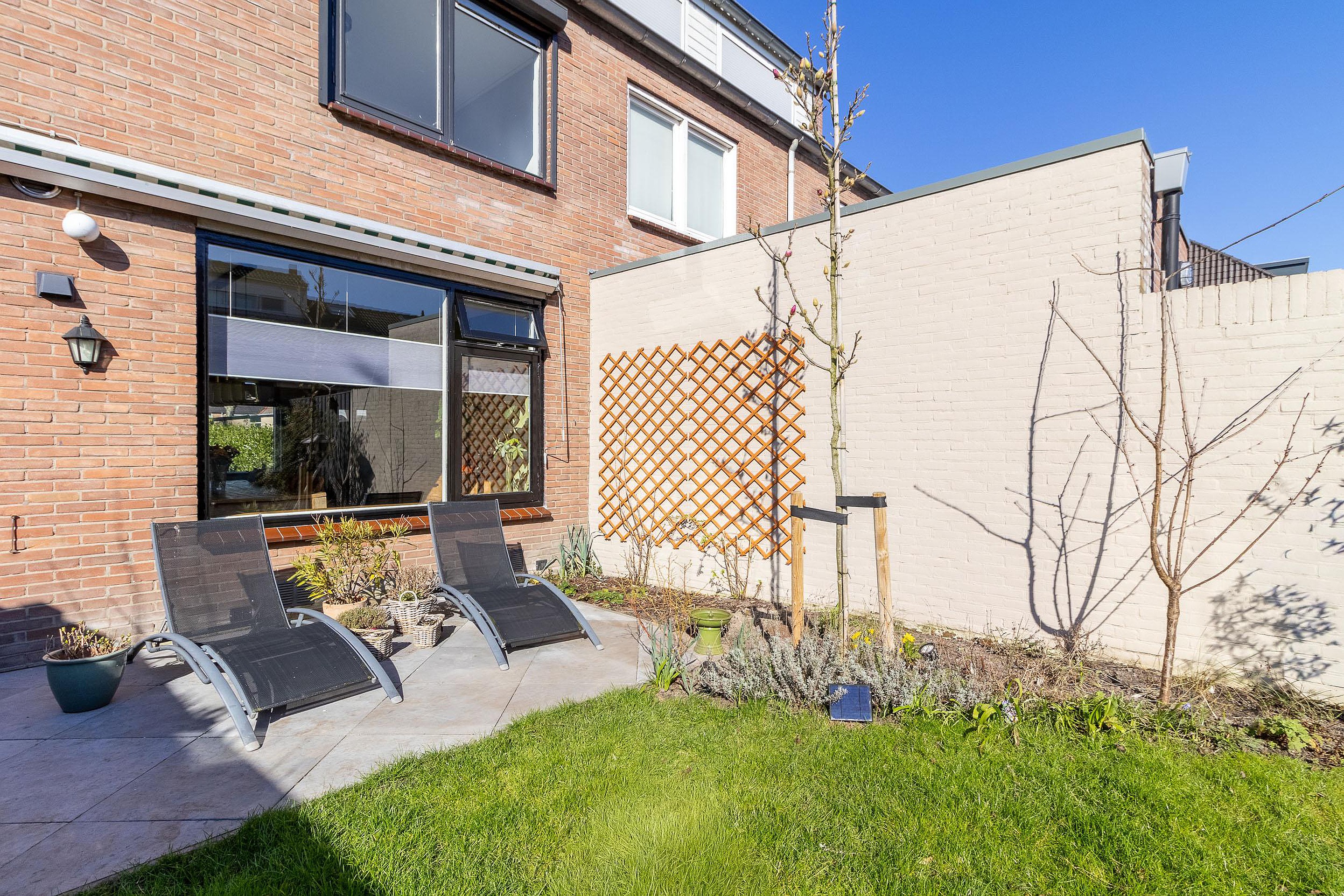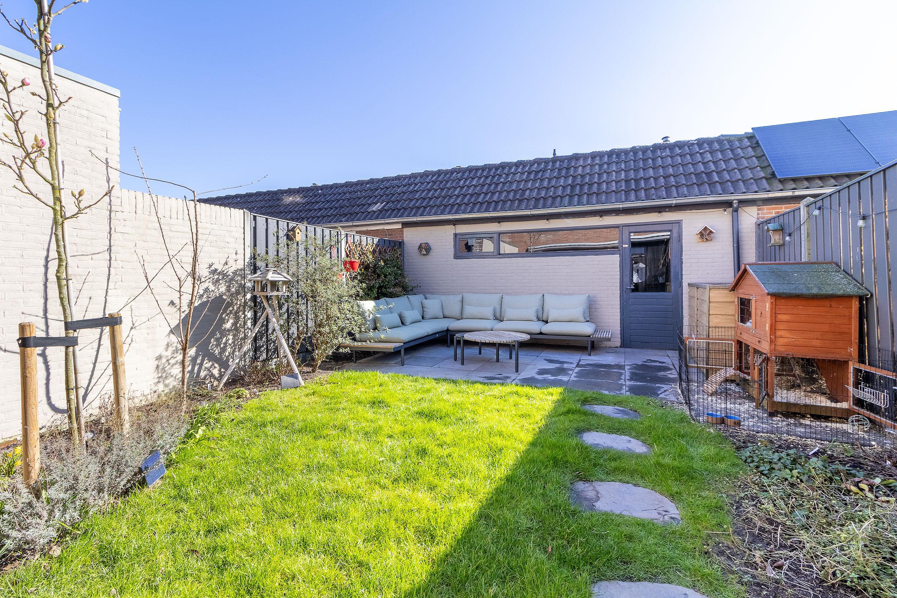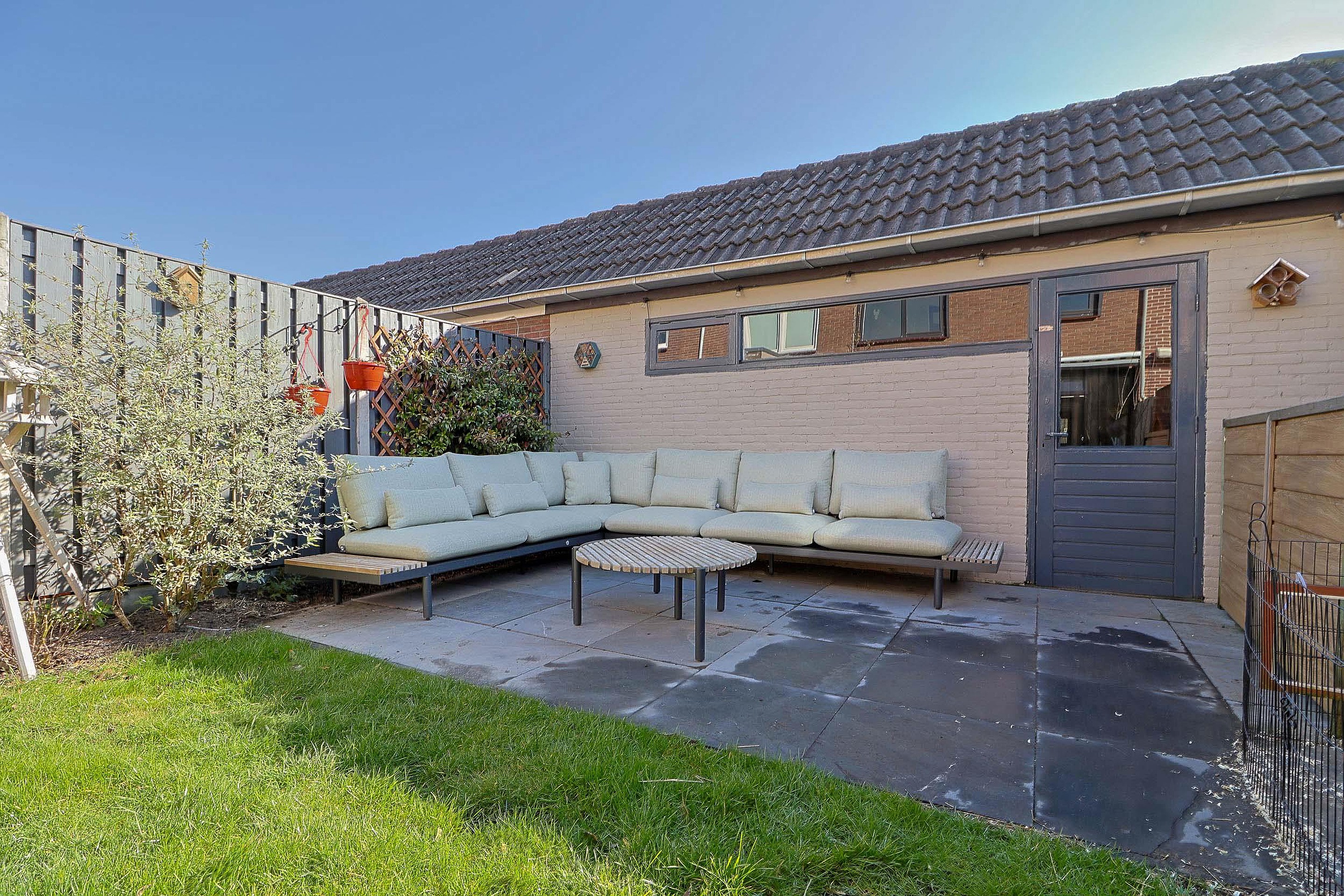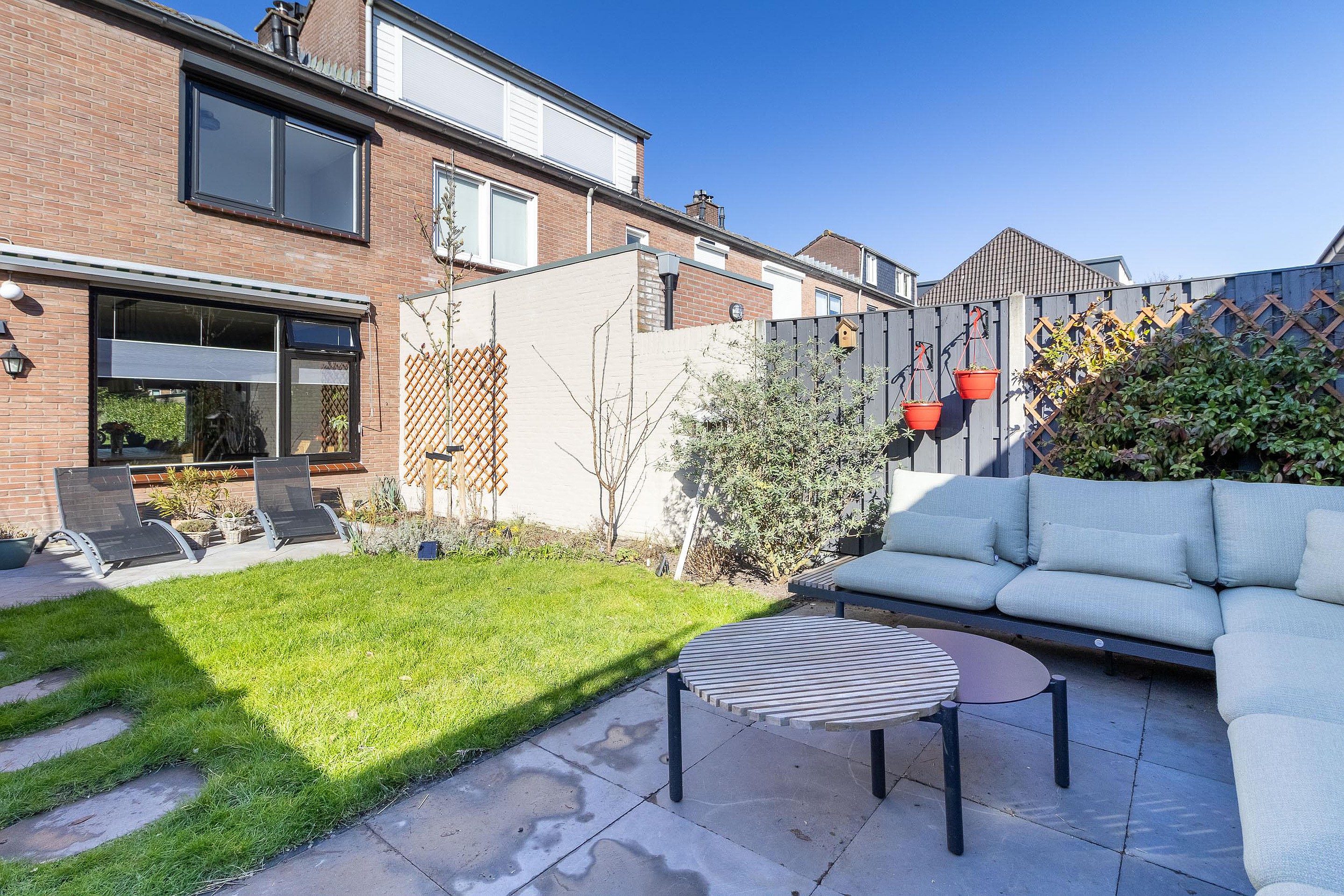 Vanuit de keuken stap je zo de achtertuin in. Deze is verrassend diep en leuk aangelegd, waardoor er volop plek is om van het buitenleven te genieten. Of je nu rustig wilt zitten met een kop koffie, vrienden uitnodigt voor een barbecue of gewoon wilt genieten van een zonnige middag, hier heb je alle ruimte. Achterin de tuin bevindt zich een praktische berging.