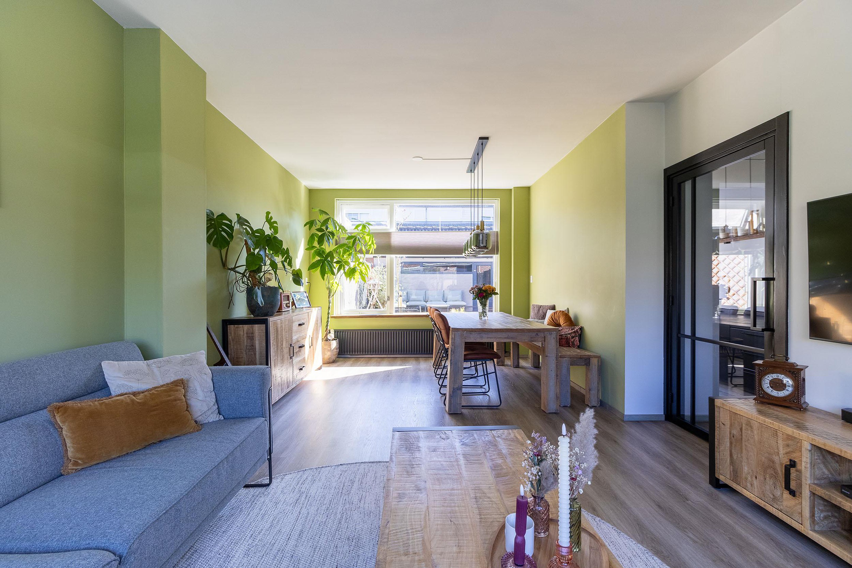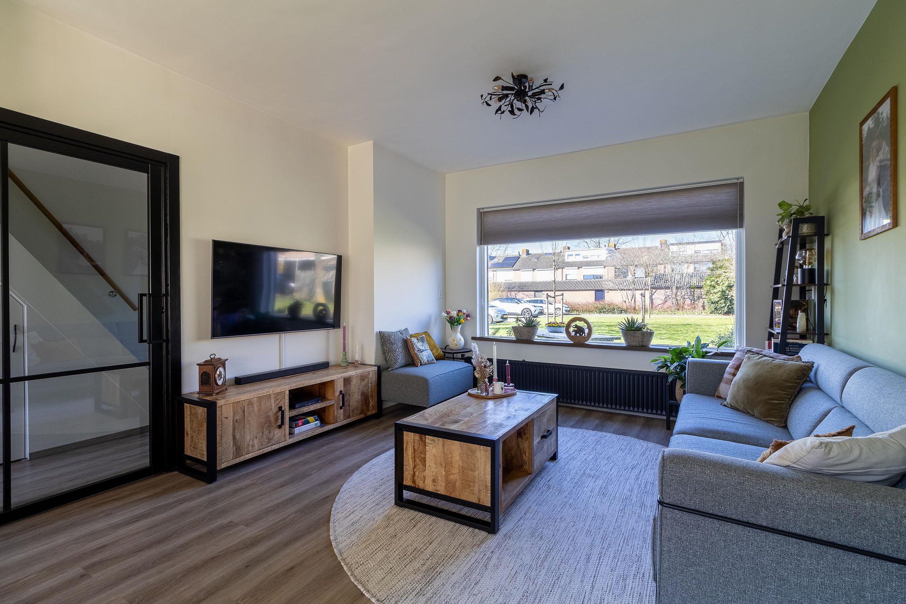 Zodra je binnenstapt merk je dat deze woning met zorg is onderhouden. De woonkamer is licht en prettig van opzet dankzij de raampartijen aan beide zijden, waardoor het daglicht mooi door de ruimte valt. Aan de achterzijde ligt de keuken, die modern en netjes is uitgevoerd en van alle gemakken is voorzien. Hier kook je met plezier terwijl je uitzicht hebt op de tuin.
