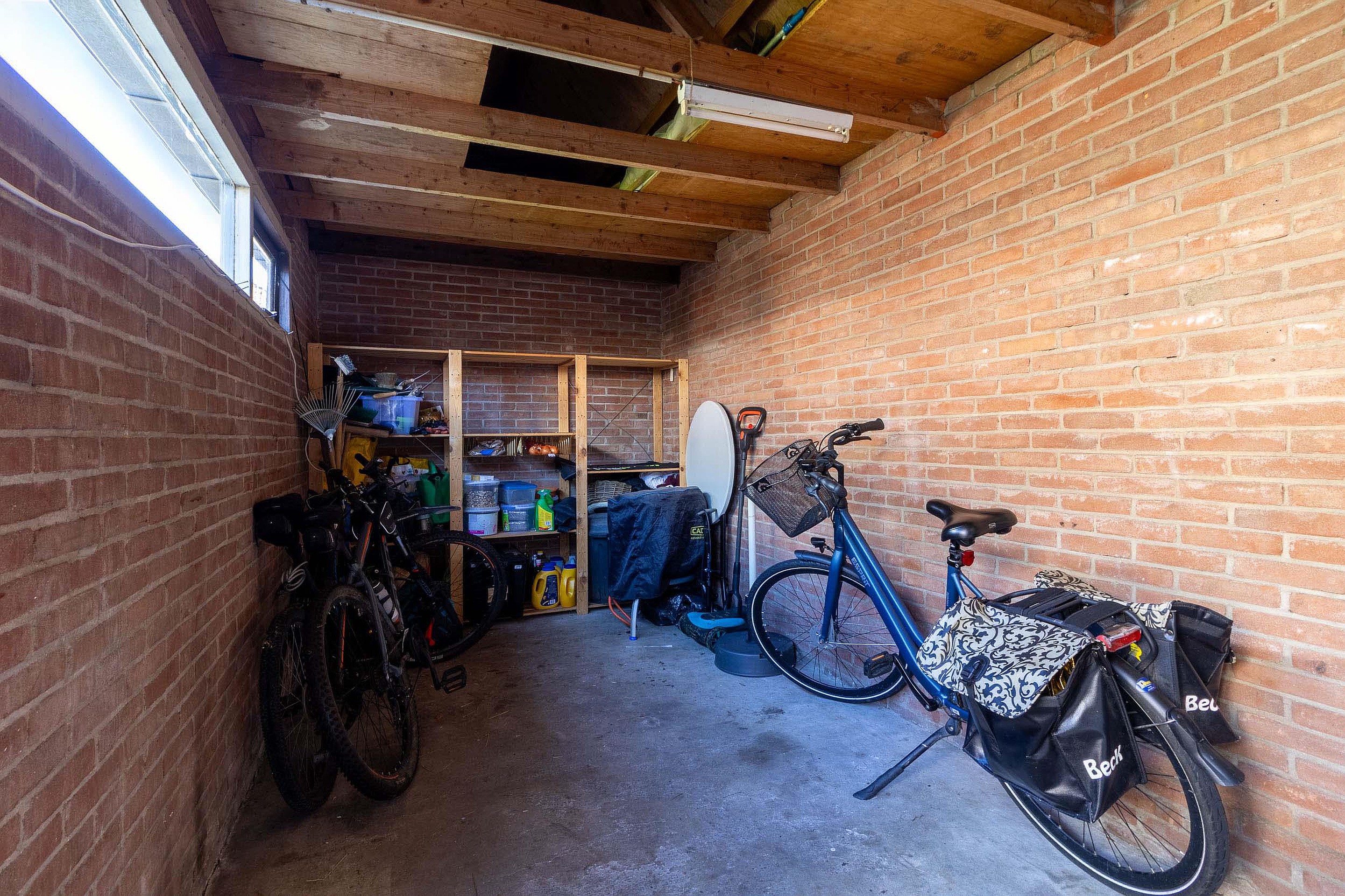 Achter in de tuin bevindt zich een vrijstaande berging, ideaal voor het stallen van fietsen en het opbergen van tuingereedschap. Direct bij de berging is een ruim terras gecreëerd, een fijne plek voor een loungeset of eettafel om lange zomeravonden buiten door te brengen.