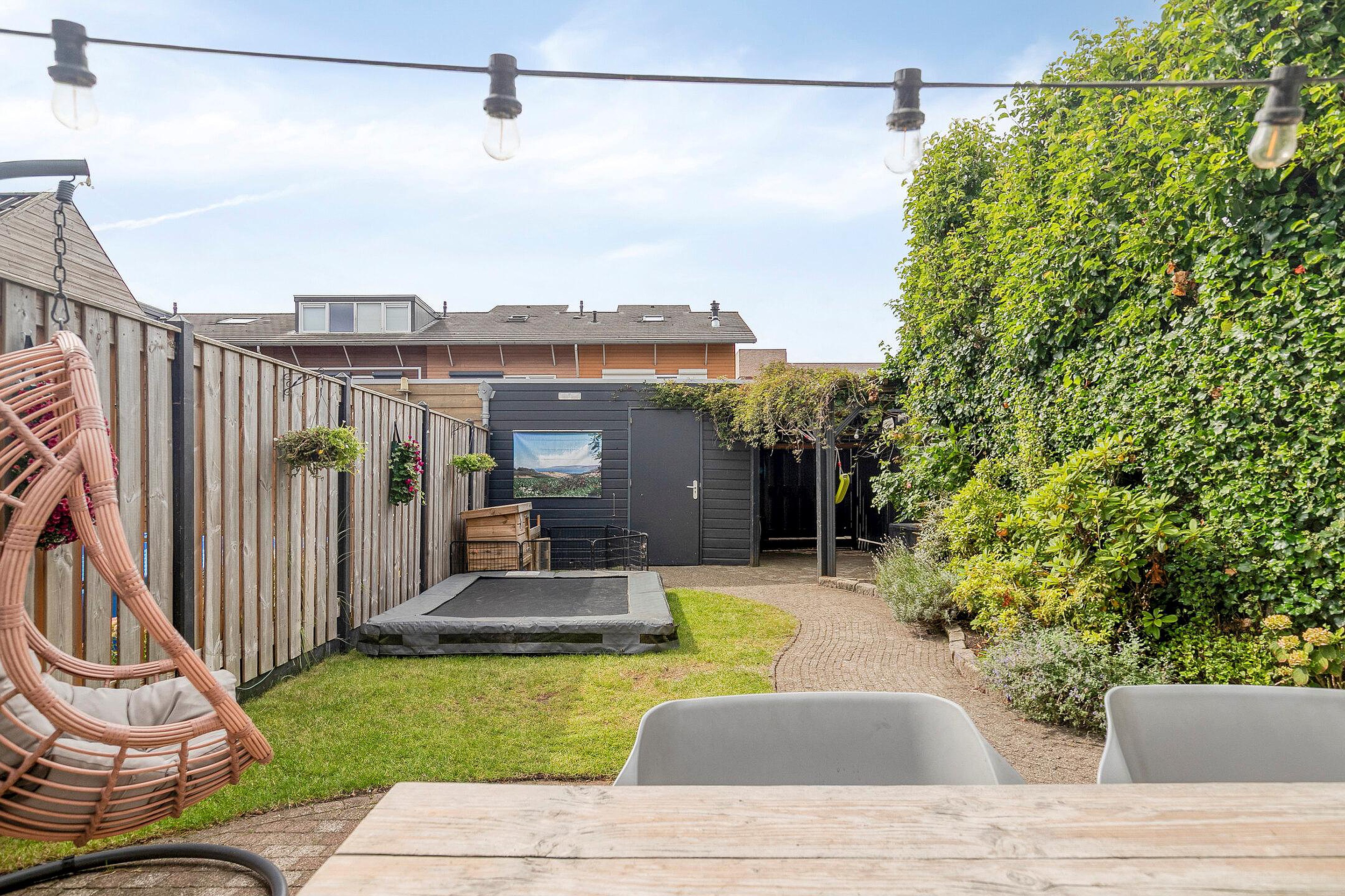 De zonnige achtertuin is ideaal voor gezinnen en is gunstig gelegen op het zuiden, waardoor u de hele dag van de zon kunt genieten. De tuin is overzichtelijk en veilig ingericht, perfect voor spelende kinderen. Via de praktische achterom is de tuin gemakkelijk bereikbaar. Daarnaast beschikt de tuin over een overkapping, ideaal voor het stallen van fietsen of het creëren van extra bergruimte..