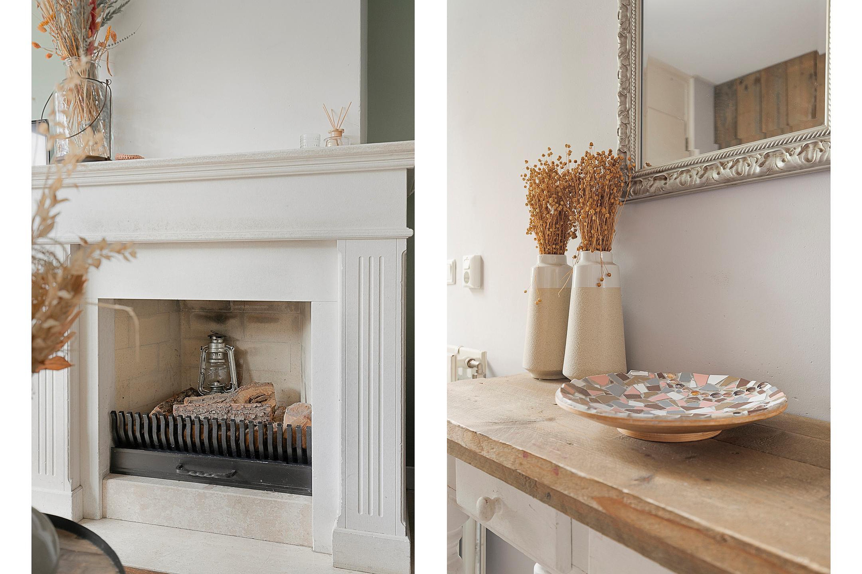 De ontsluiting van de tuin kan aan de zijkant via een poort in de erfafscheiding. In de woonkamer ligt een massief houten vloer en in de hal en keuken een plavuizen vloer.