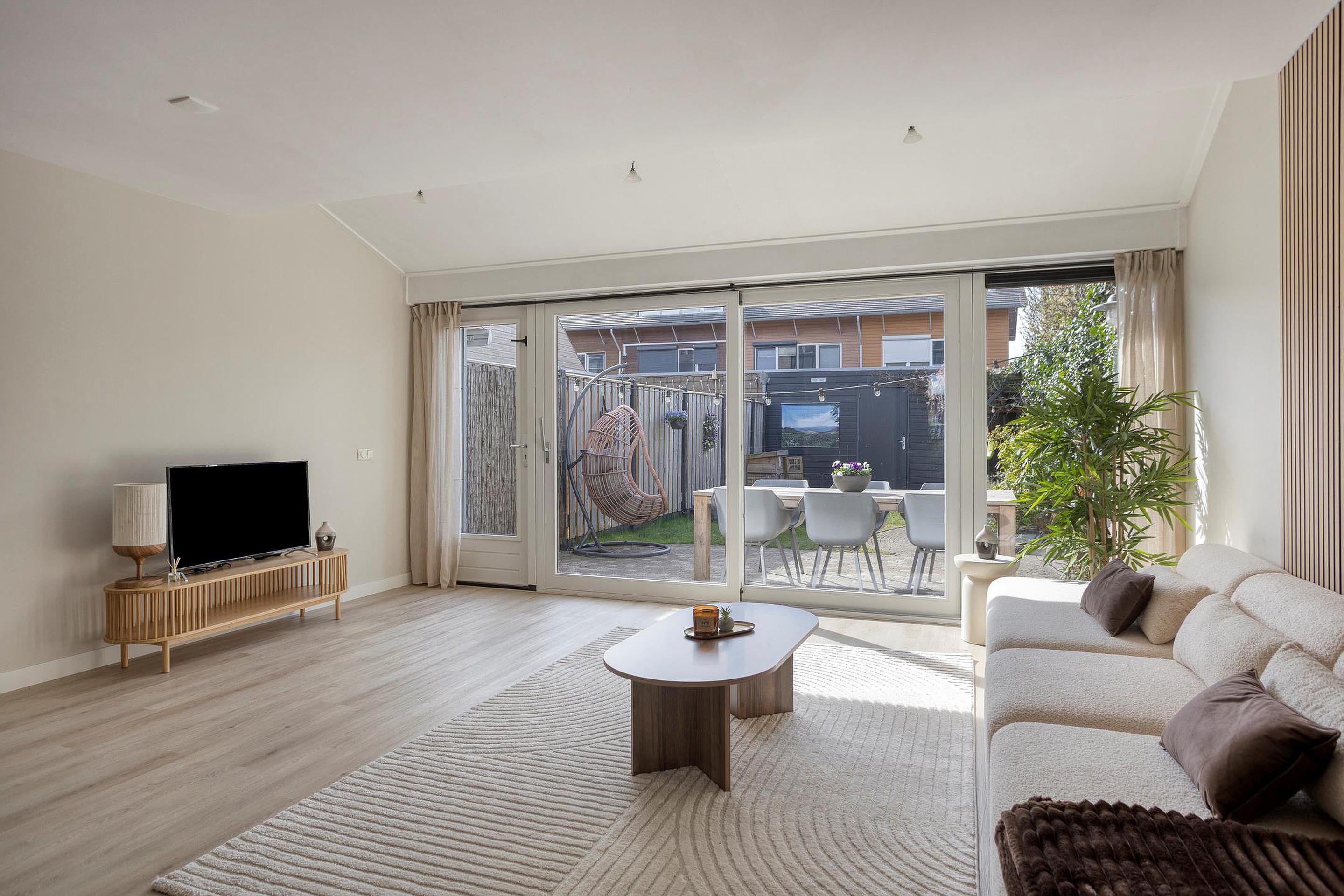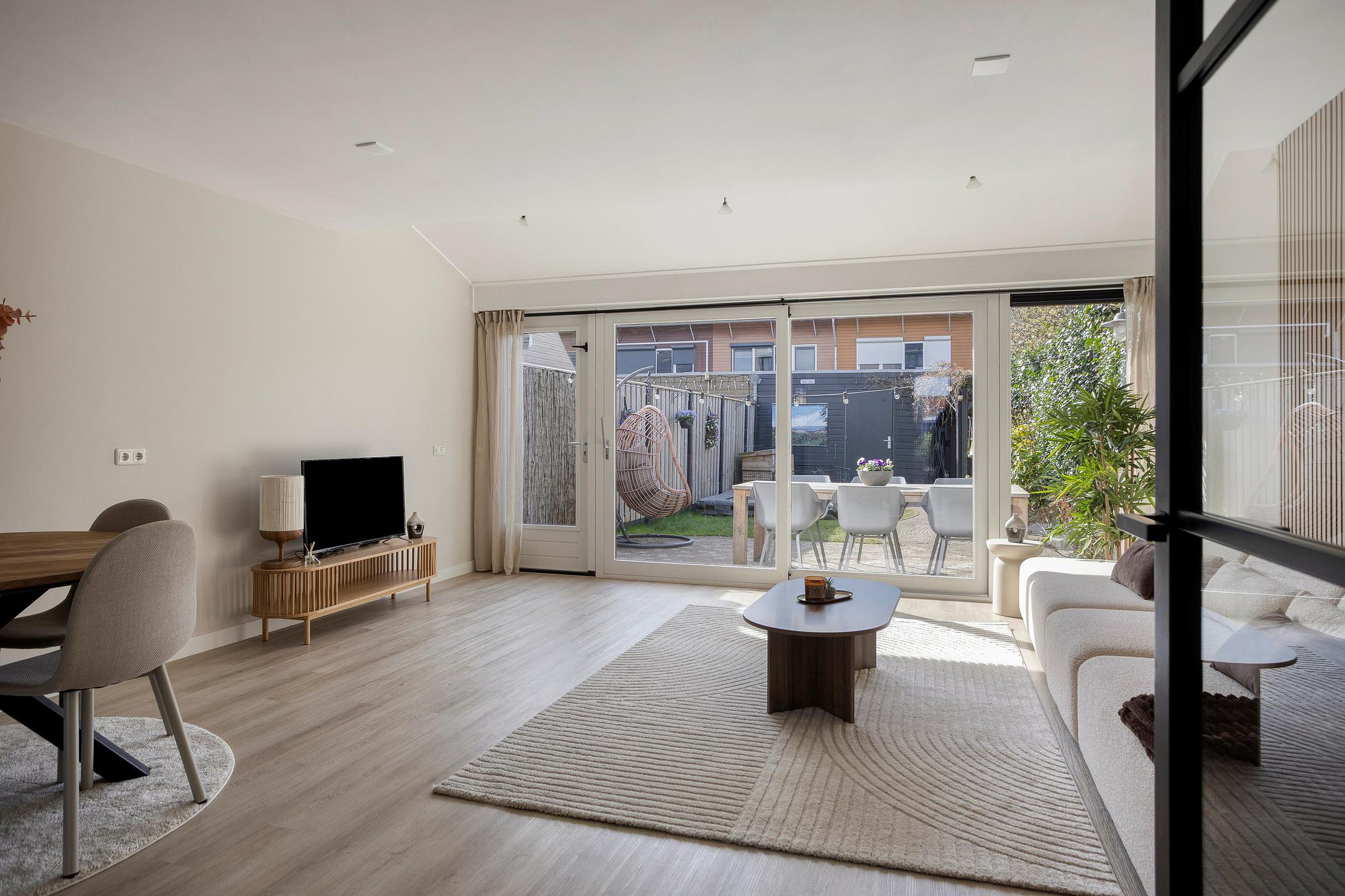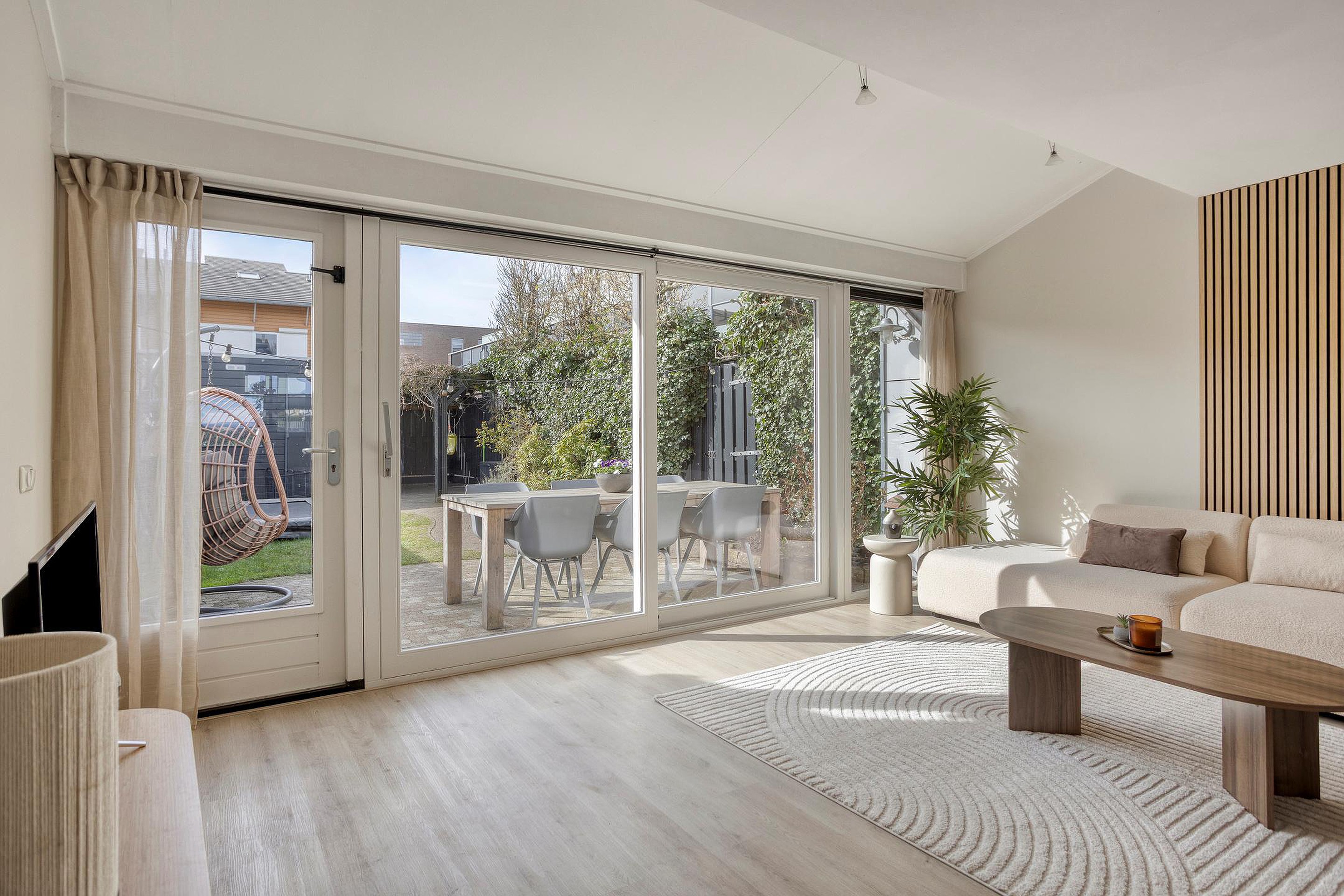- Schuifpui naar de tuin, waardoor de overgang tussen binnen en buiten prachtig is.