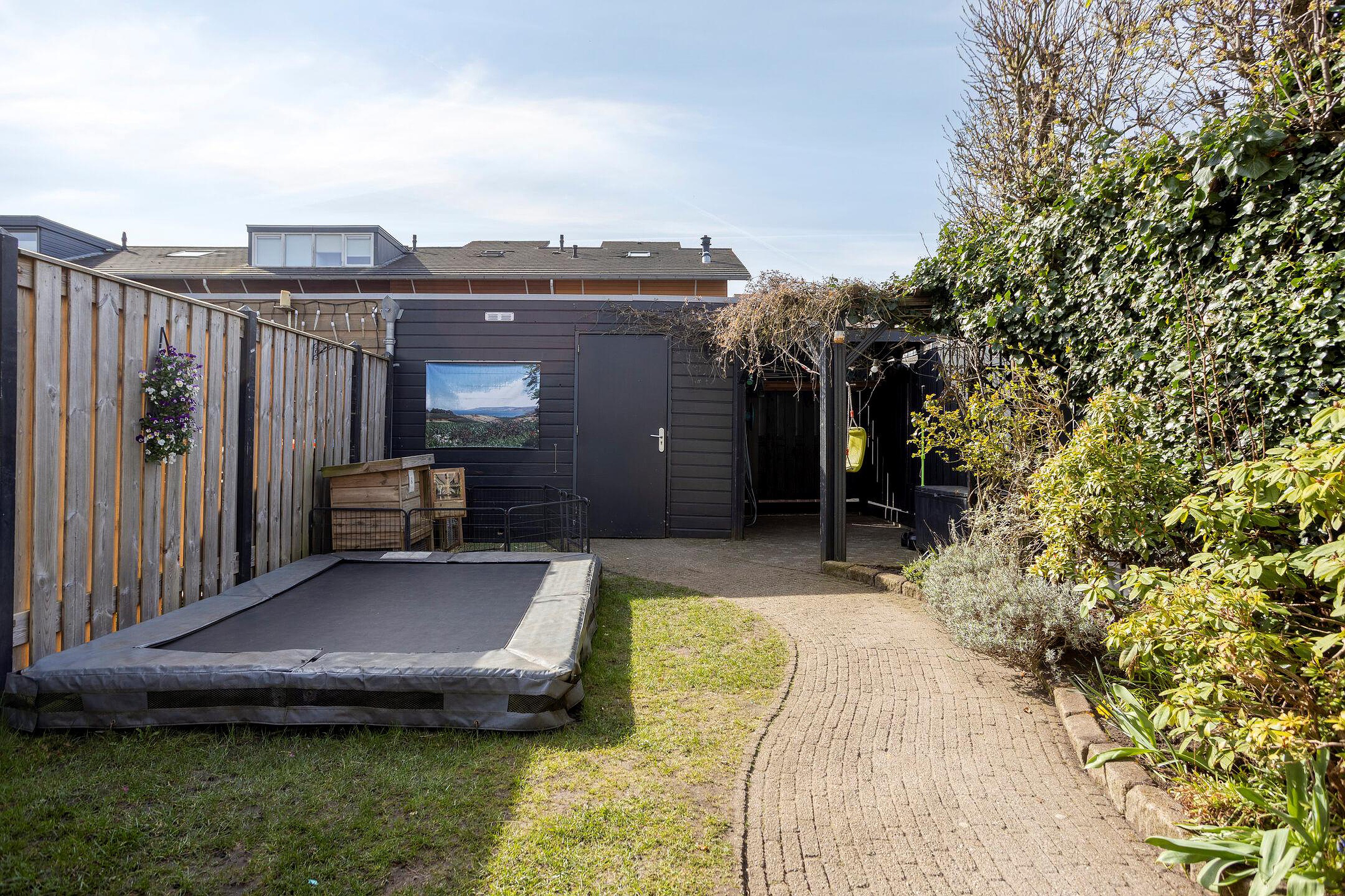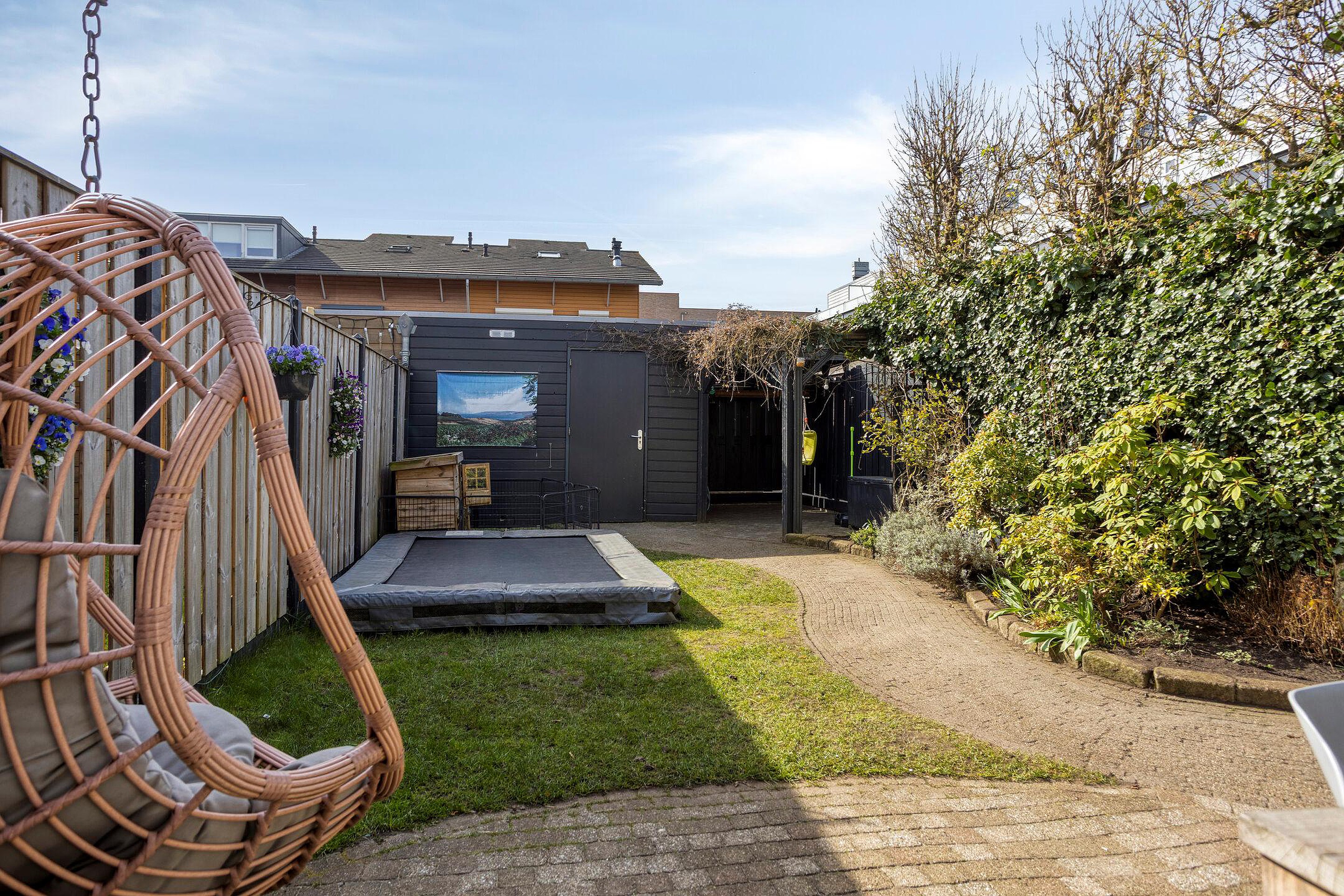 De zonnige achtertuin is ideaal voor gezinnen en is gunstig gelegen op het zuiden, waardoor u de hele dag van de zon kunt genieten. De tuin is overzichtelijk en veilig ingericht, perfect voor spelende kinderen. Via de praktische achterom is de tuin gemakkelijk bereikbaar. Daarnaast beschikt de tuin over een overkapping, ideaal voor het stallen van fietsen of het creëren van extra bergruimte..