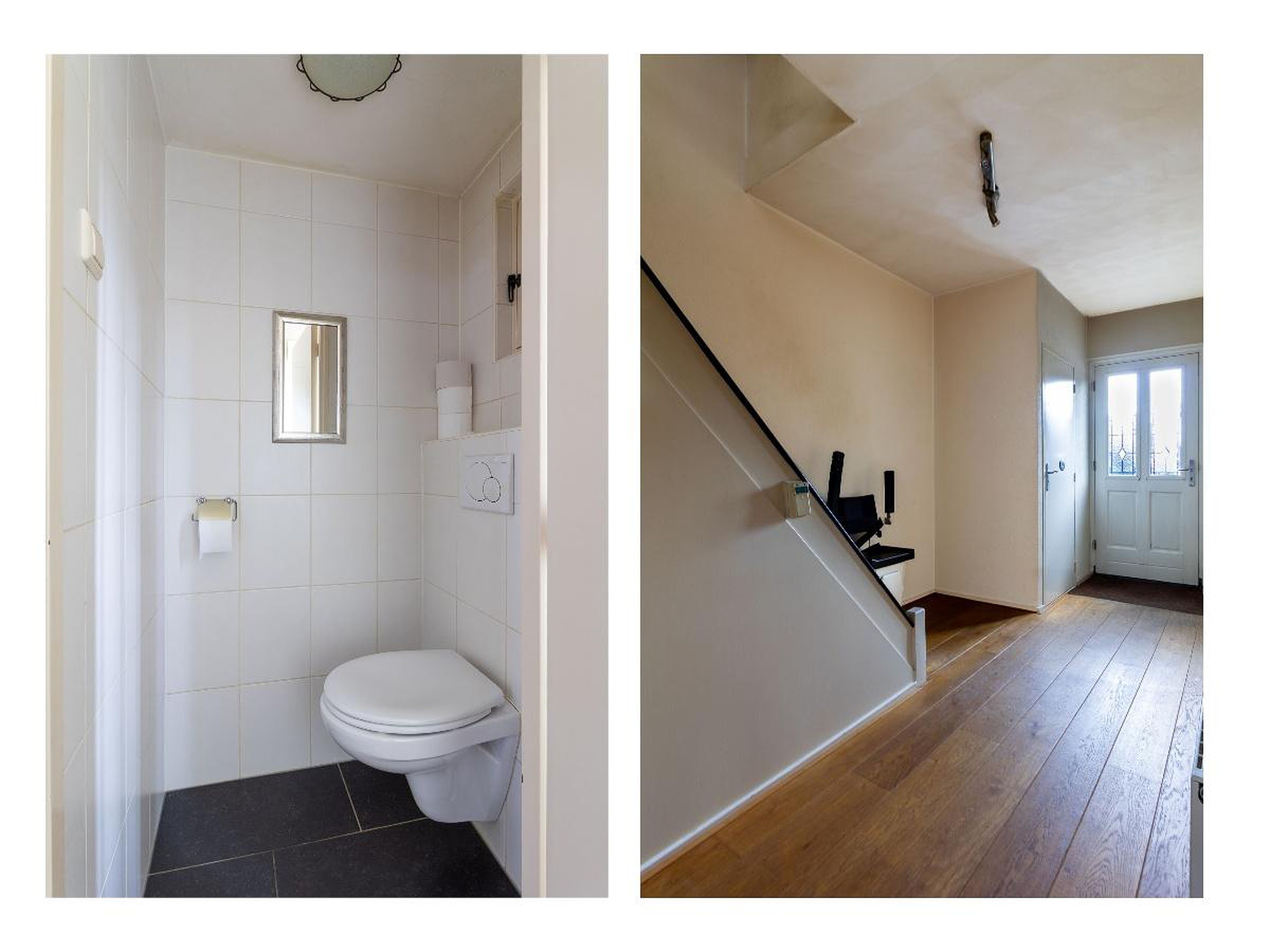 Begane grond Bij binnenkomst kom je in de hal met meterkast, toilet en trapopgang naar de eerste verdieping. Vanuit de hal stap je de woonkamer binnen, die zich aan de voorzijde van de woning bevindt en volop ruimte biedt voor een comfortabele zit- en eethoek. Dankzij de grote raampartijen geniet je hier van een prettige lichtinval.