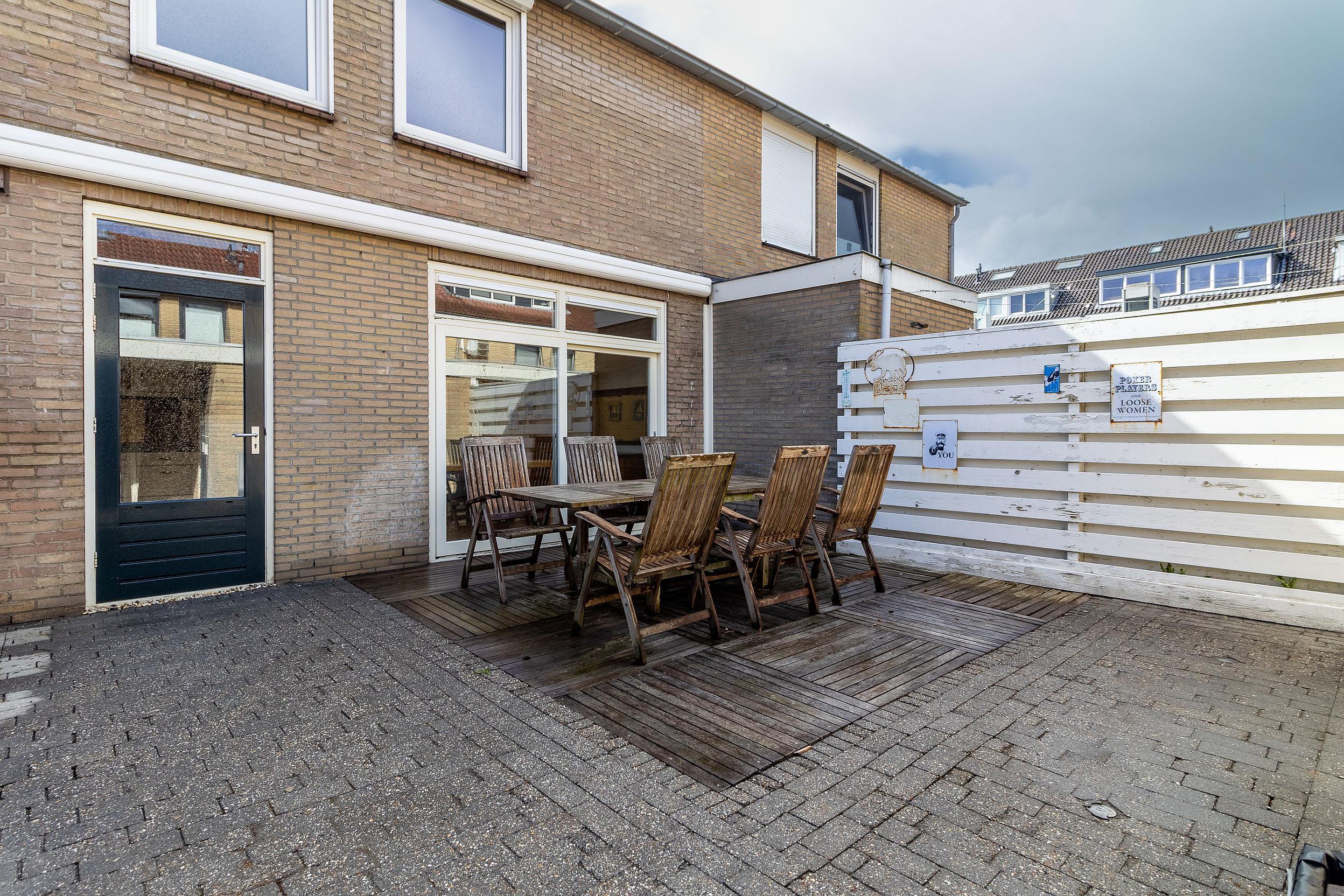 Tuin De achtertuin is onderhoudsvriendelijk aangelegd en biedt volop ruimte om meerdere zitplekken te creëren. Dankzij de combinatie van bestrating en een houten terras is er altijd een fijne plek om buiten te zitten. Ondanks de ligging op het noorden kun je hier toch prettig van het buitenleven genieten.