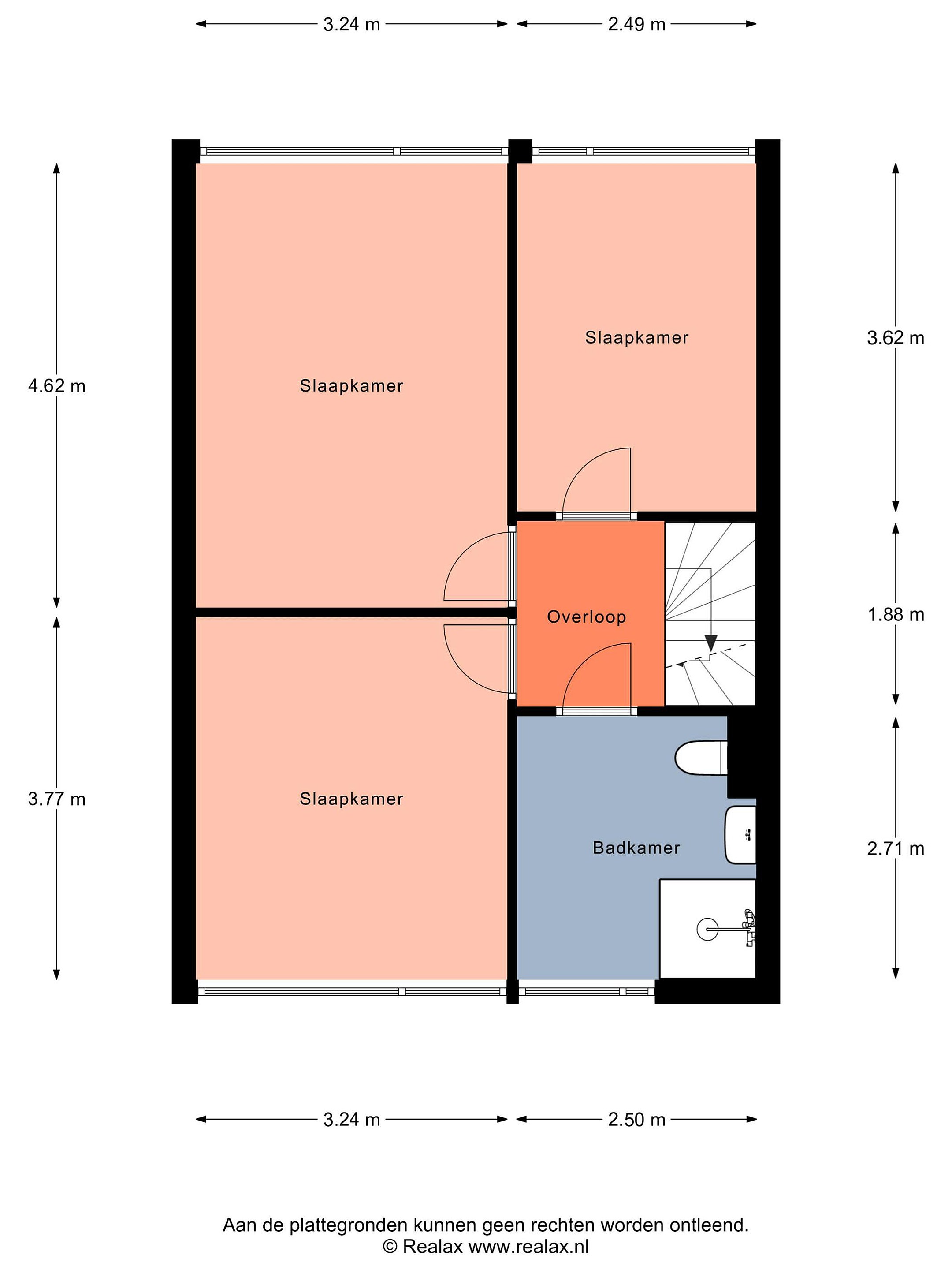 Eerste verdieping Via de vaste trap bereikt u de overloop die toegang biedt tot drie slaapkamers en de badkamer.