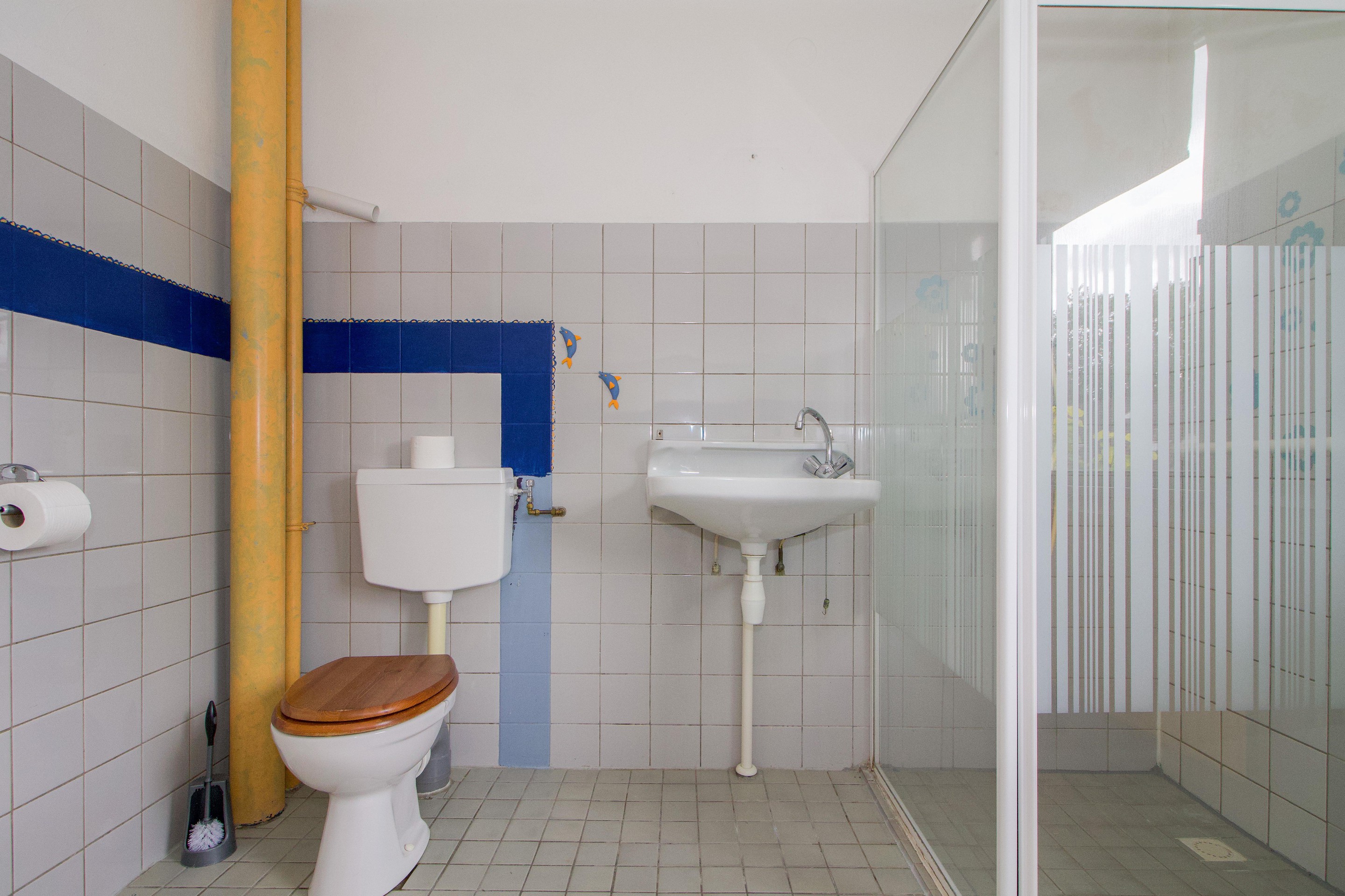 De badkamer is centraal gelegen en uitgerust met een wastafel, toilet en douche. Dankzij de praktische indeling is er voldoende ruimte en comfort aanwezig.