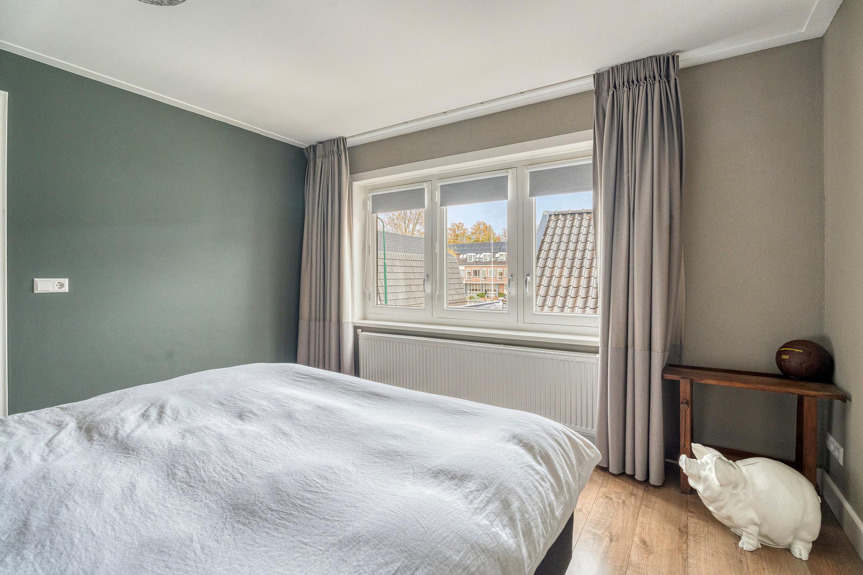 Boven vind je drie slaapkamers die stuk voor stuk prettig van formaat zijn, ideaal voor een gezin of voor wie graag wat extra ruimte wil voor werken of logeren. De tweede etage is verrassend ruim; hier kun je nog alle kanten op. Je geniet er van een heerlijk badmoment met uitzicht op de molen, een uniek detail dat de woning extra karakter geeft.