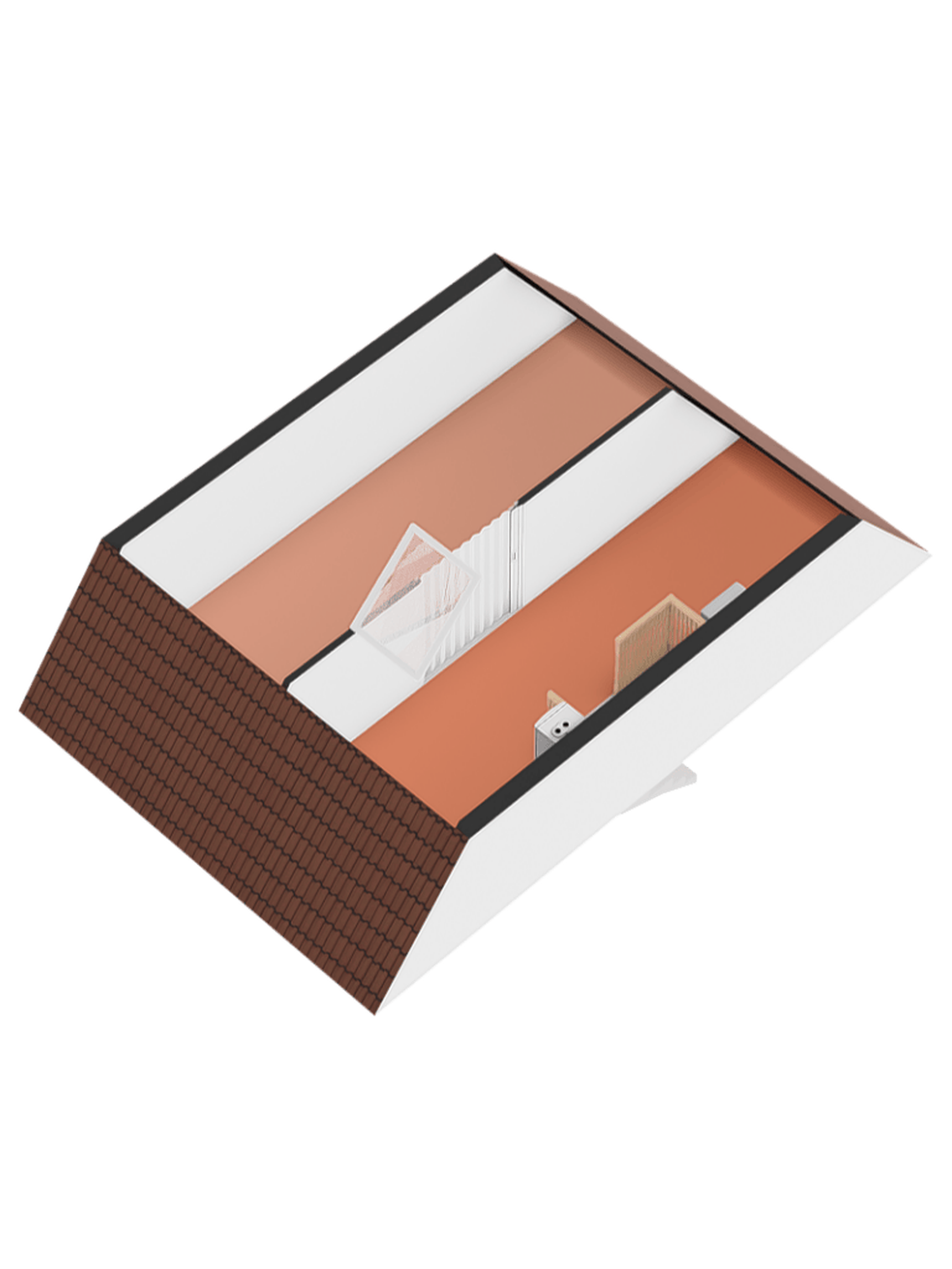 Tweede verdieping Via de vaste trap bereikt u de zolderverdieping met overloop. Op de overloop bevinden zich de opstelplaats voor de cv-installatie en praktische bergruimte.