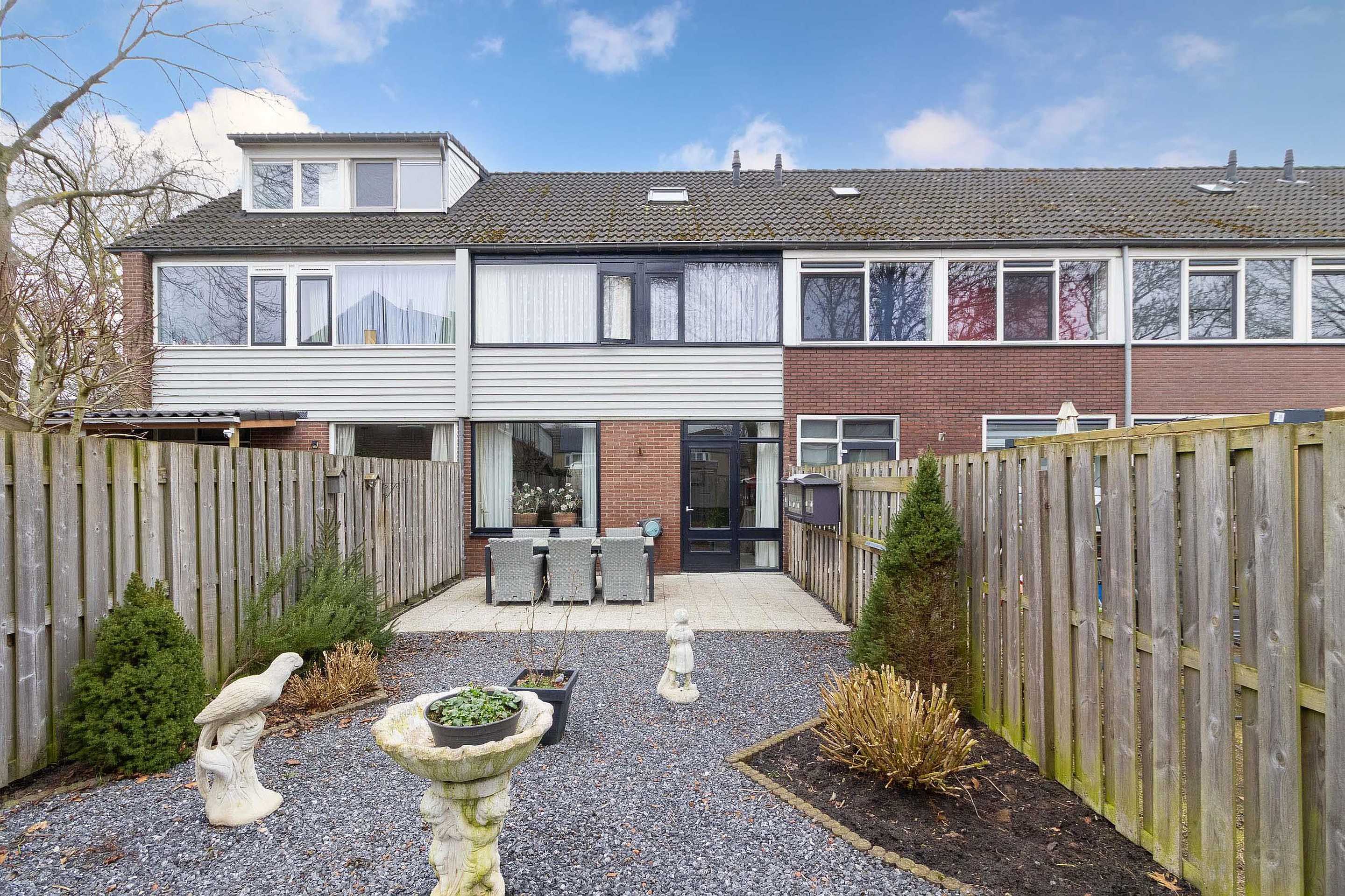 Tuin De woning beschikt over een verzorgde achtertuin, volledig omsloten door houten schuttingen, wat zorgt voor optimale privacy. Direct achter de woning bevindt zich een ruim terras, ideaal voor het plaatsen van een eettafel en het genieten van lange zomeravonden.