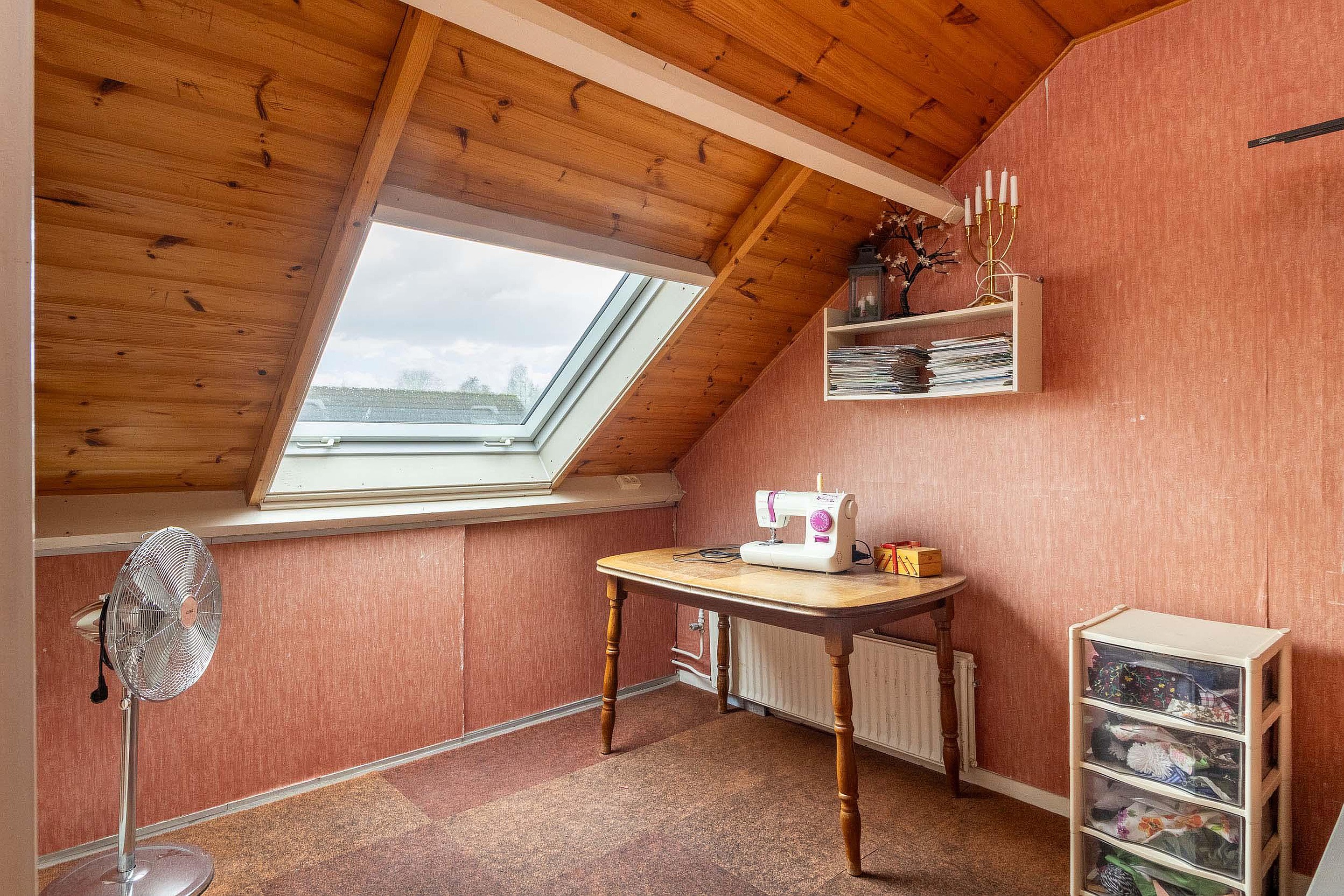 De zolder biedt daarmee een goede combinatie van een extra kamer en volop bergruimte.