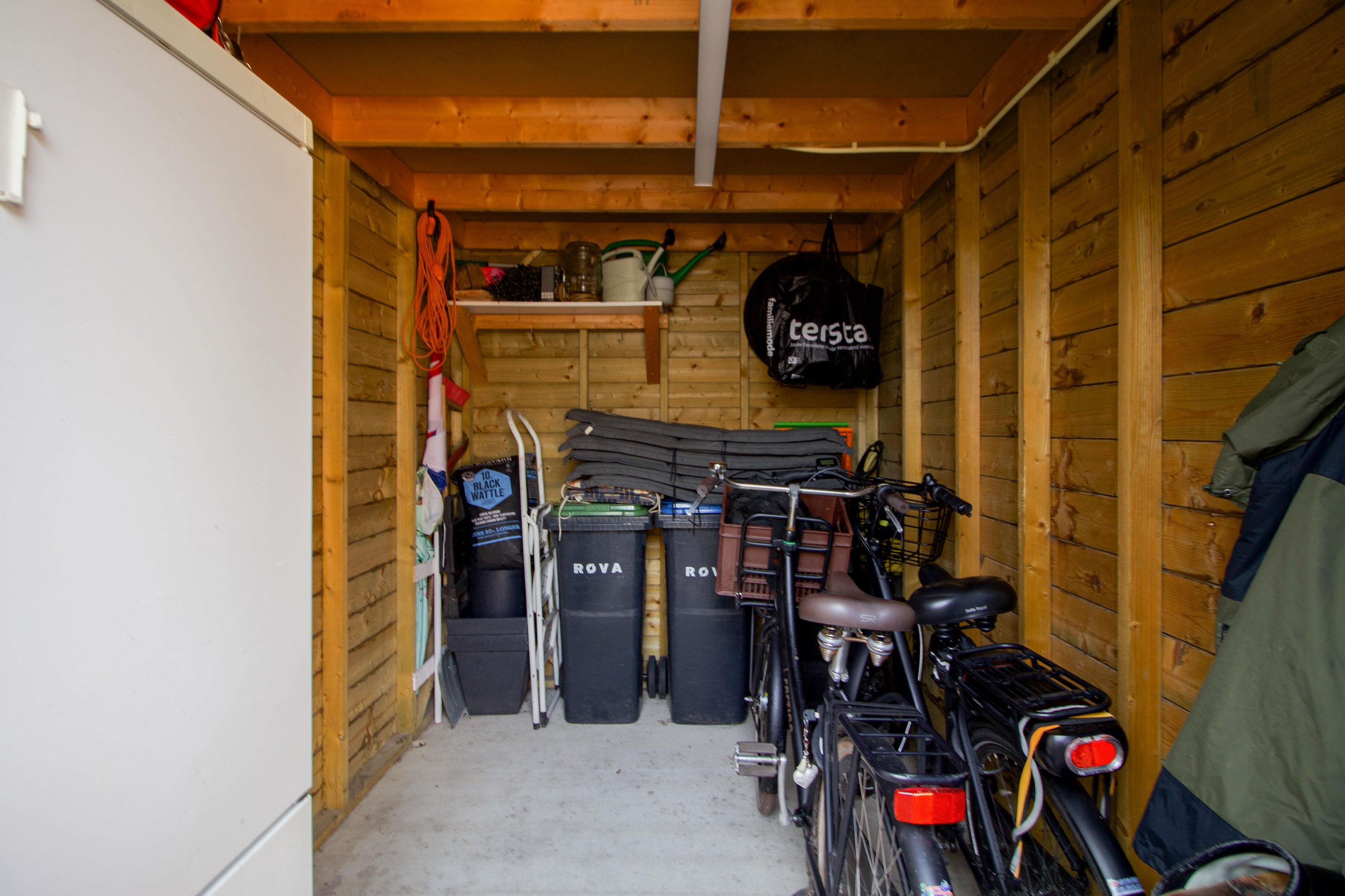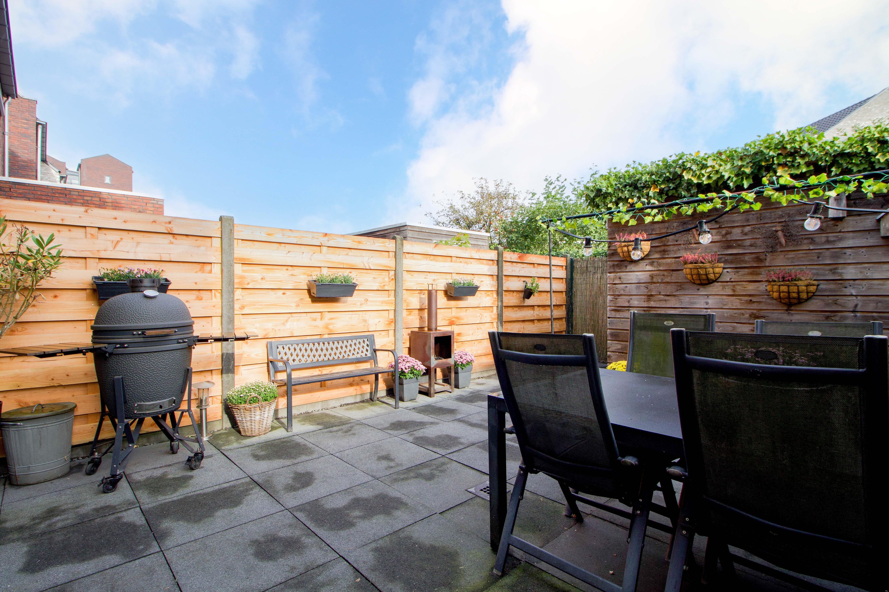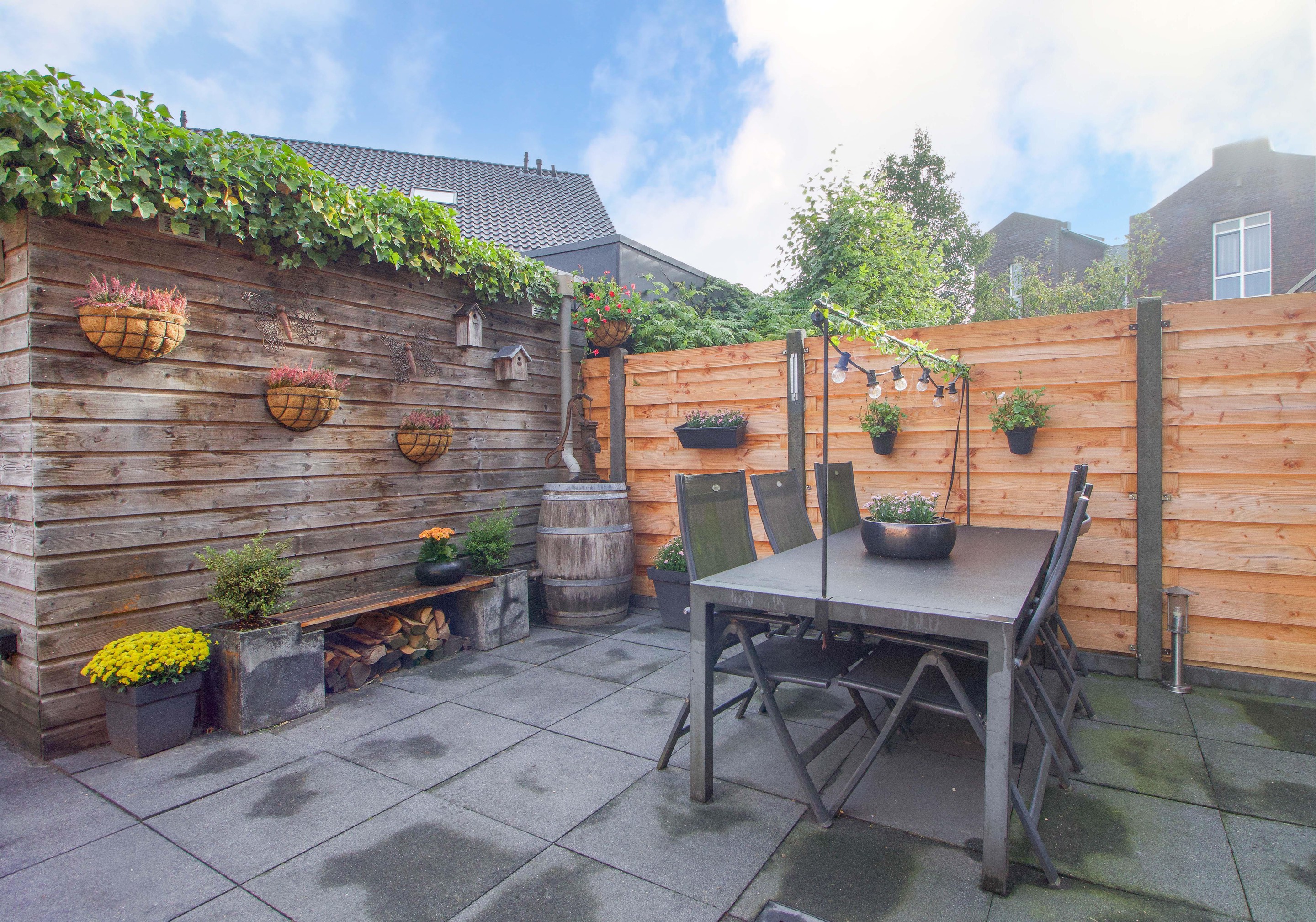 Ook buiten is het genieten. De tuin is overzichtelijk en sfeervol aangelegd, een fijne plek om te ontspannen of samen te zijn met vrienden.