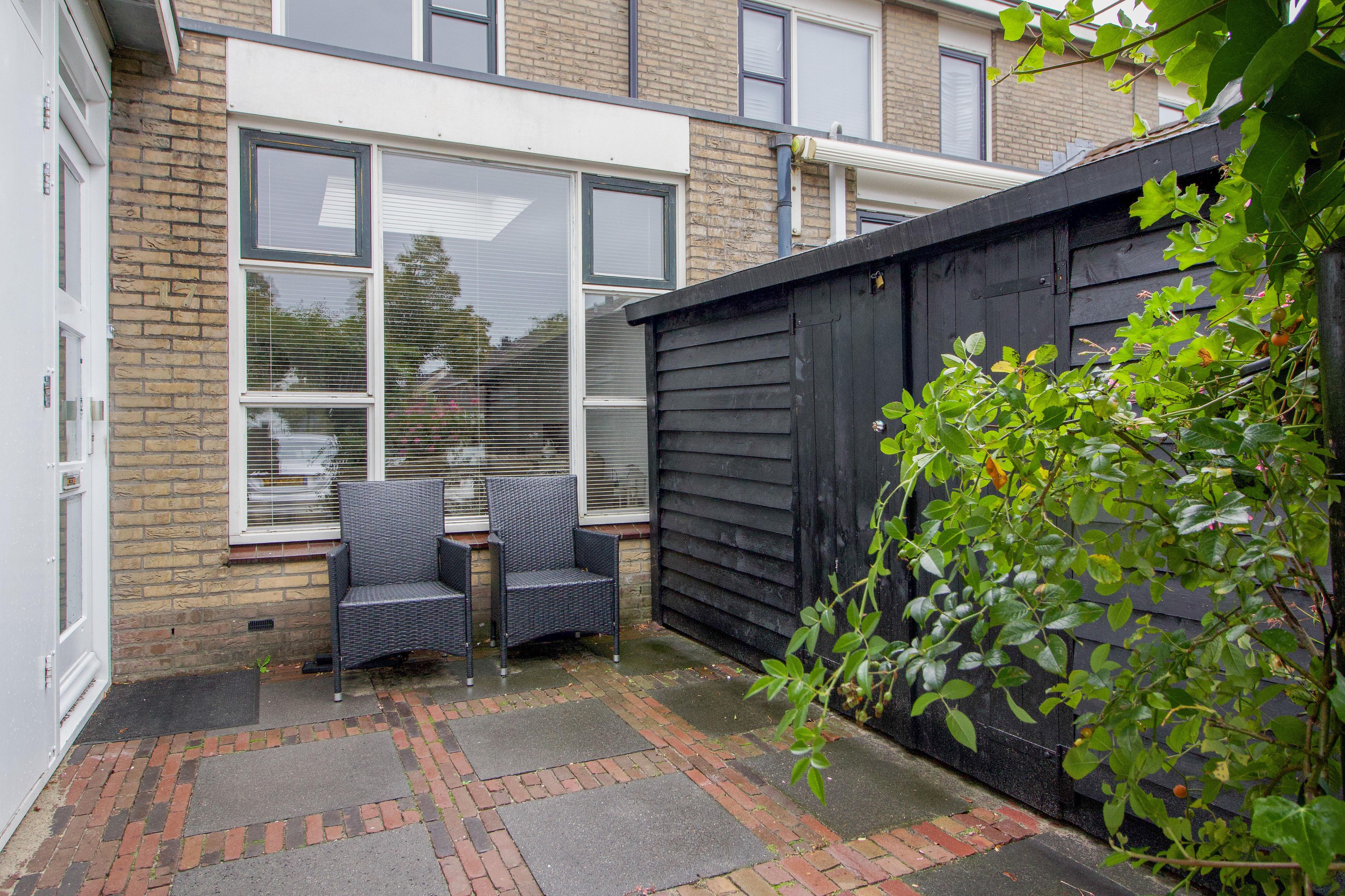Buiten geniet je van een knusse, patio-achtige tuin op het westen. Een sfeervolle plek waar je op zomerse avonden nog heerlijk de laatste zonnestralen meepakt.