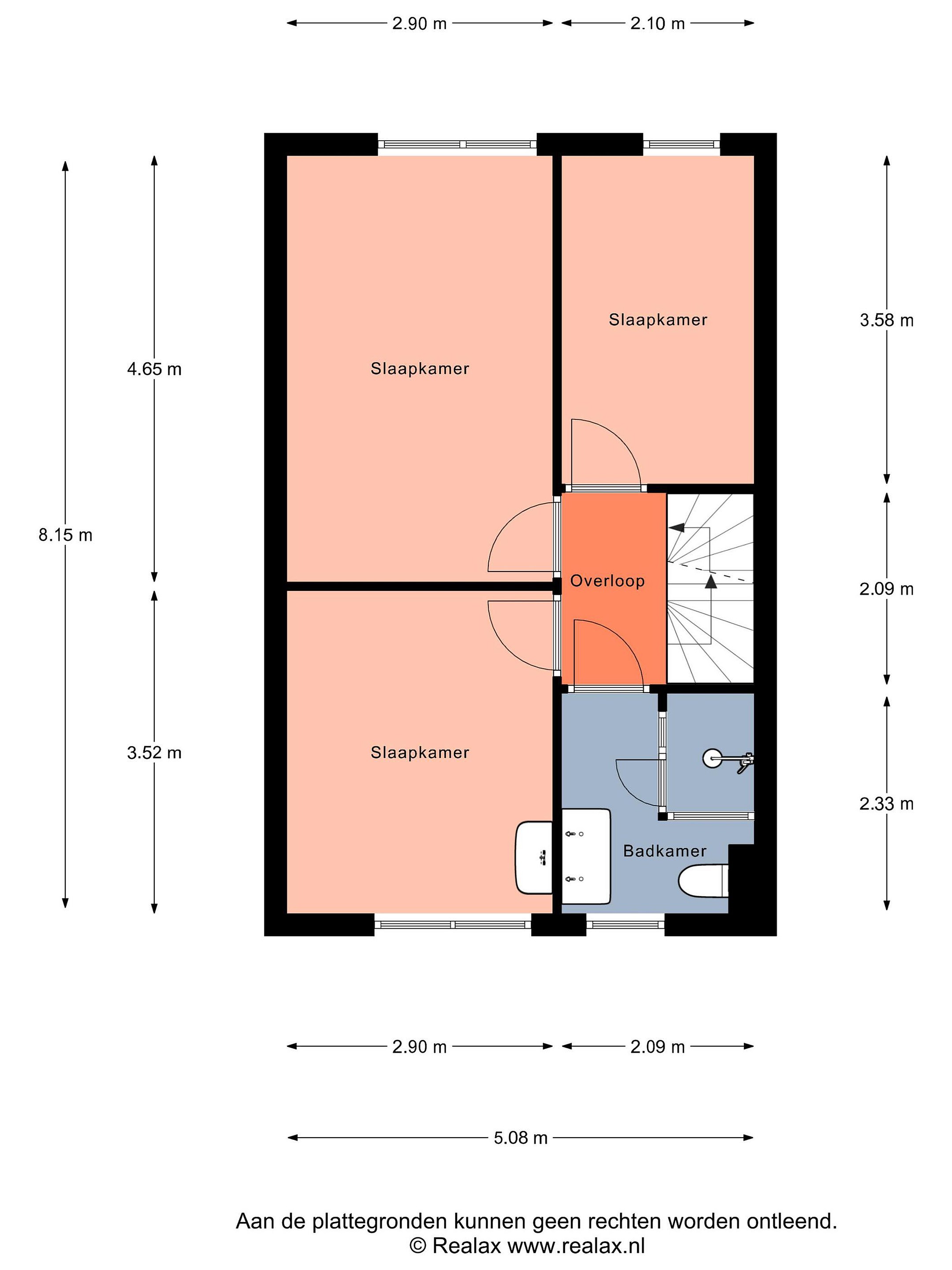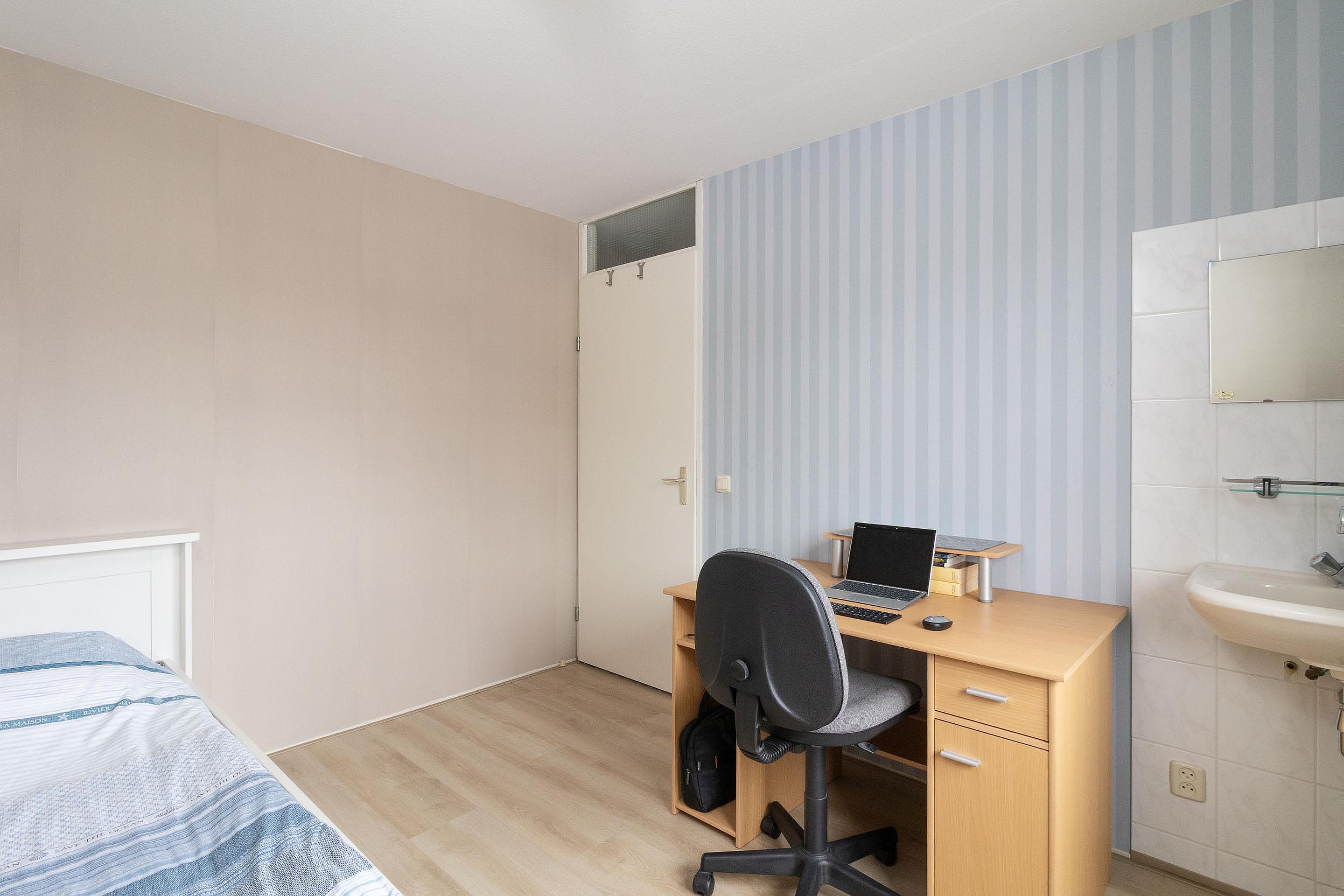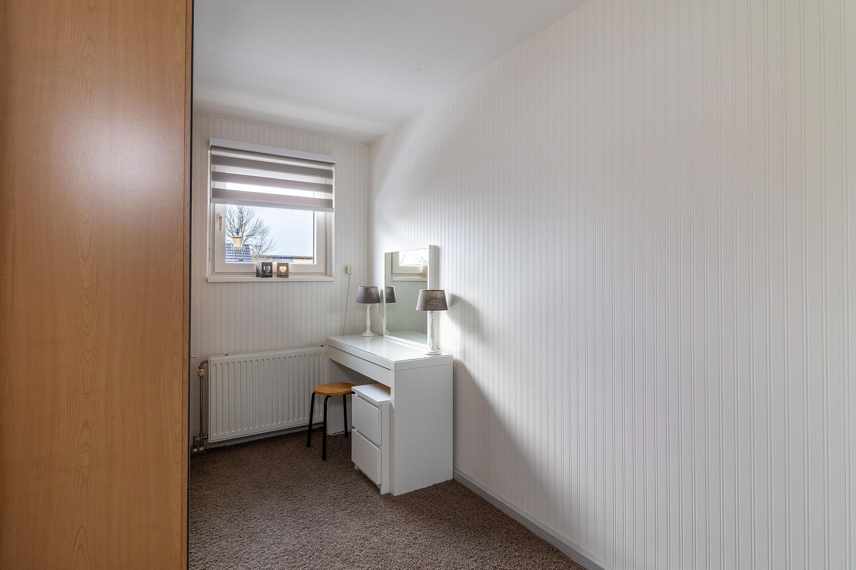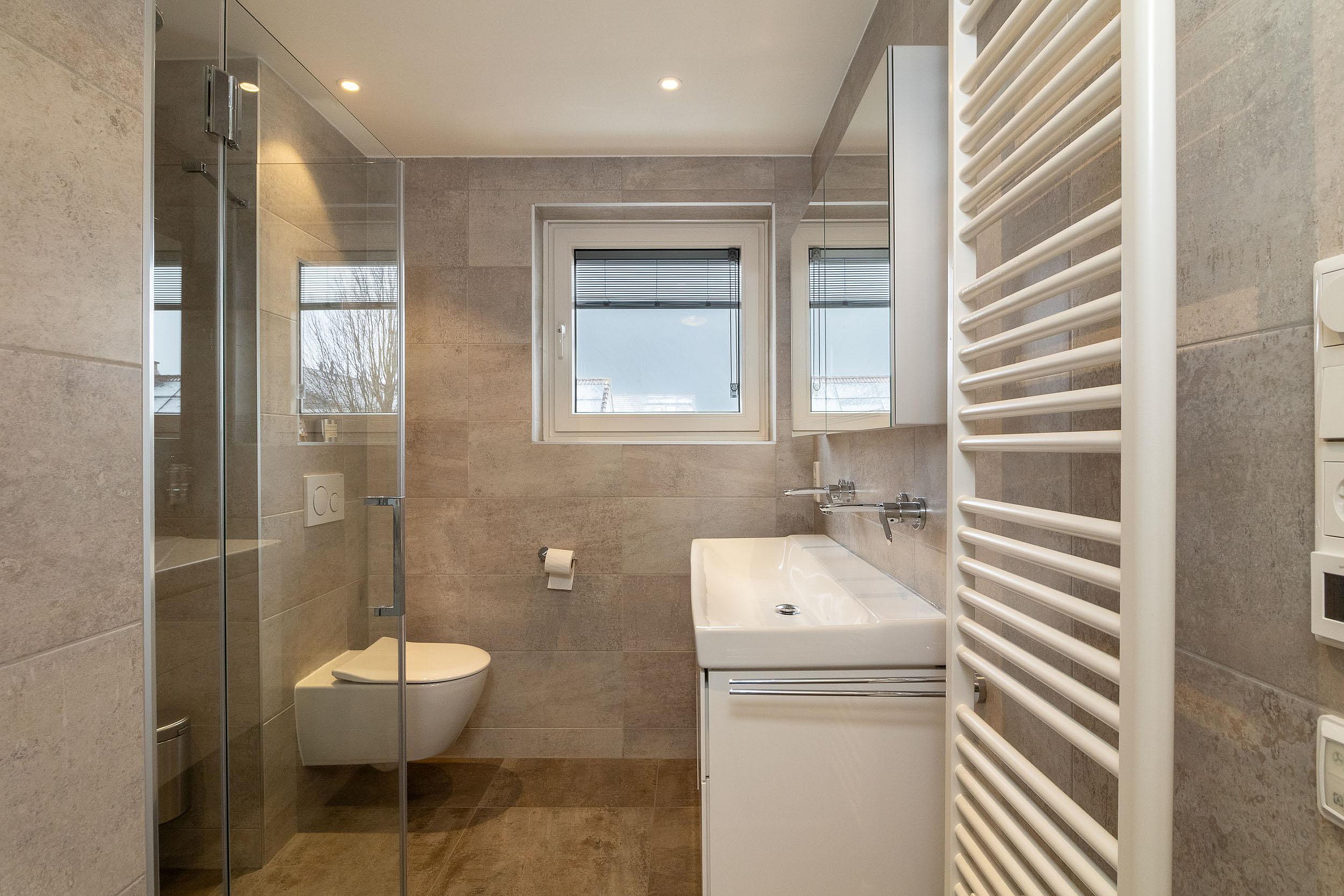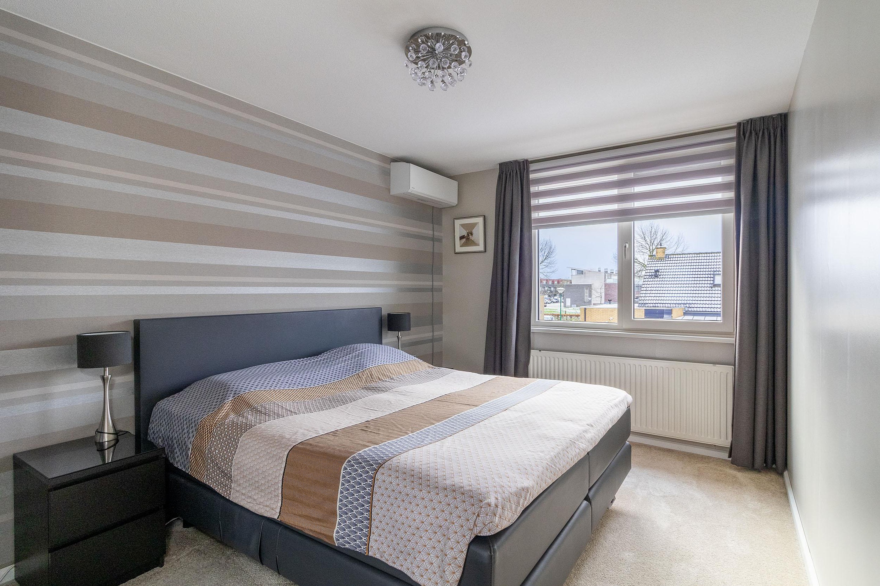 Eerste verdieping De eerste verdieping beschikt hier over drie slaapkamers, allen van een prettig formaat. De grootste slaapkamer is gelegen aan de achterzijde van de woning is voorzien van airco en biedt volop ruimte voor een tweepersoonsbed en kastenwand. De tweede slaapkamer bevindt zich eveneens aan de achterzijde en is uitstekend geschikt als kinder-, werk- of logeerkamer. Aan de voorzijde ligt de derde slaapkamer, die zich leent voor diverse gebruiksmogelijkheden.