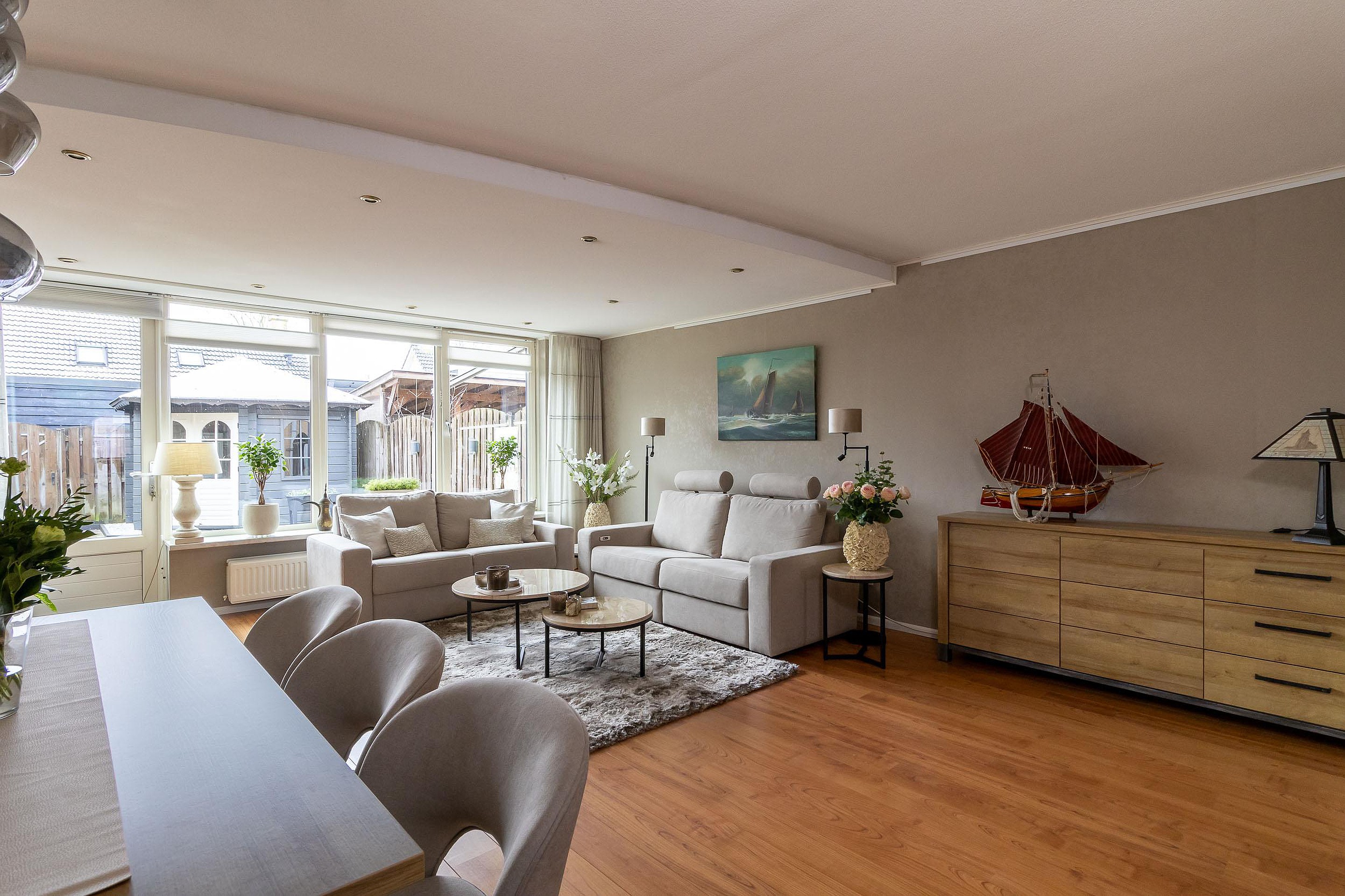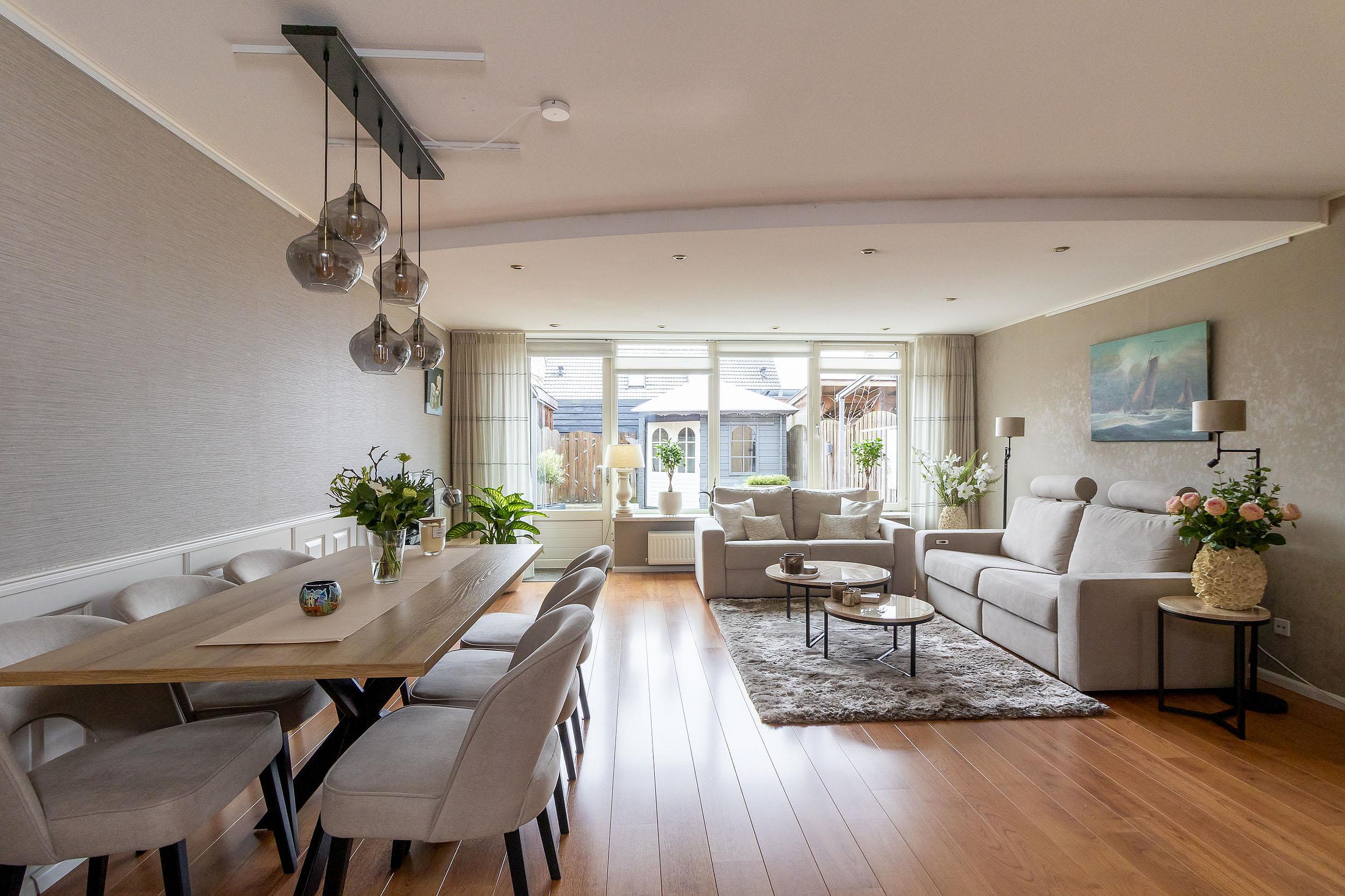 Vanuit de hal betreed je de royale woonkamer, die zich uitstrekt over de volledige diepte van de woning. Dankzij de grote raampartijen aan de achterzijde geniet deze ruimte van veel daglicht en een prettige verbinding met de tuin. De woonkamer biedt volop ruimte voor een comfortabele zit- en eethoek.