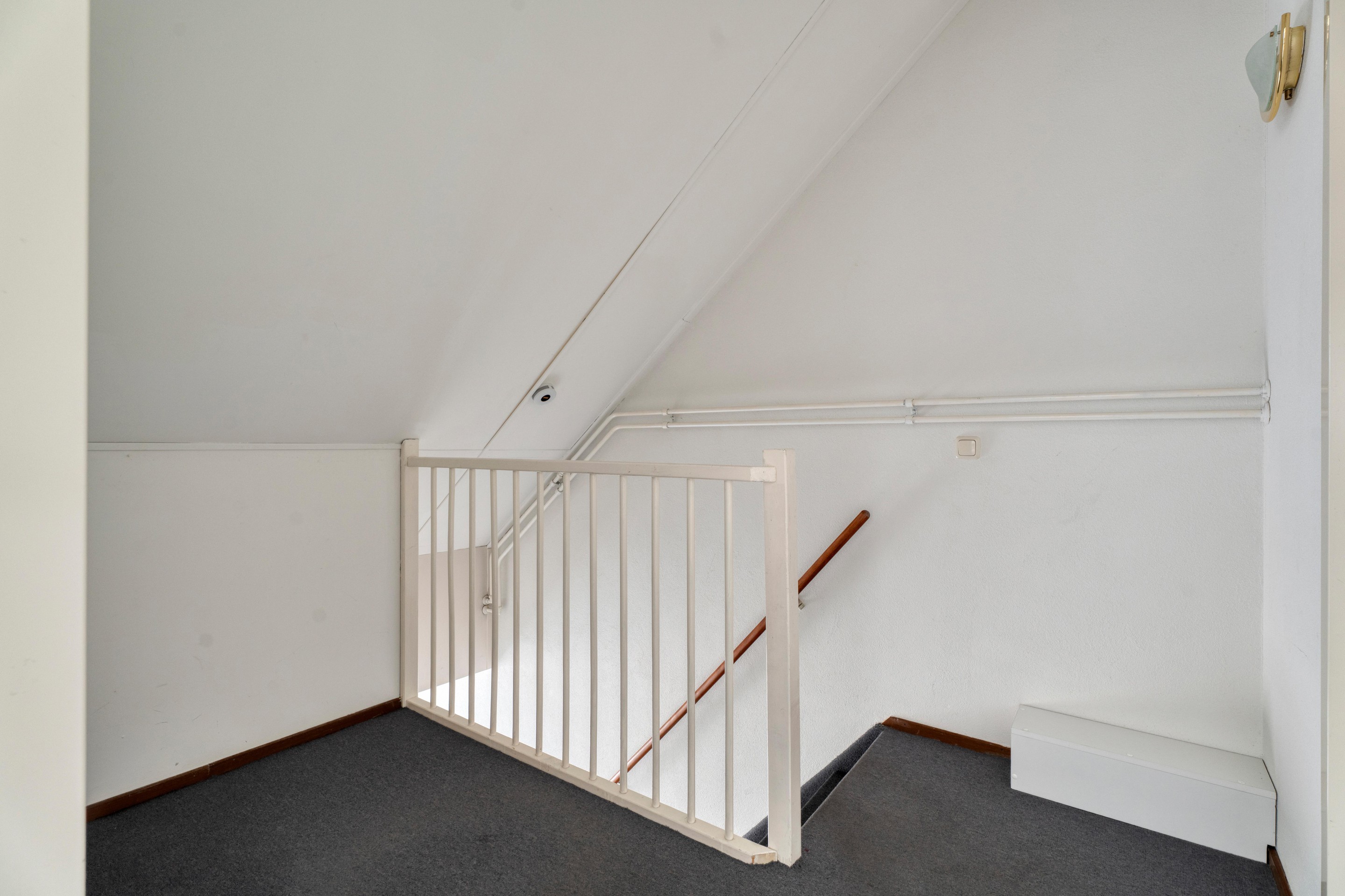 Via de overloop bereikt u een tweede, ruime slaapkamer. Daarnaast zijn er meerdere bergingen aanwezig, ideaal voor het opbergen van spullen of het creëren van een hobbyruimte. Dankzij de praktische indeling en de vaste kasten is er volop bergruimte beschikbaar, terwijl de verdieping tegelijkertijd voldoende leefcomfort biedt.