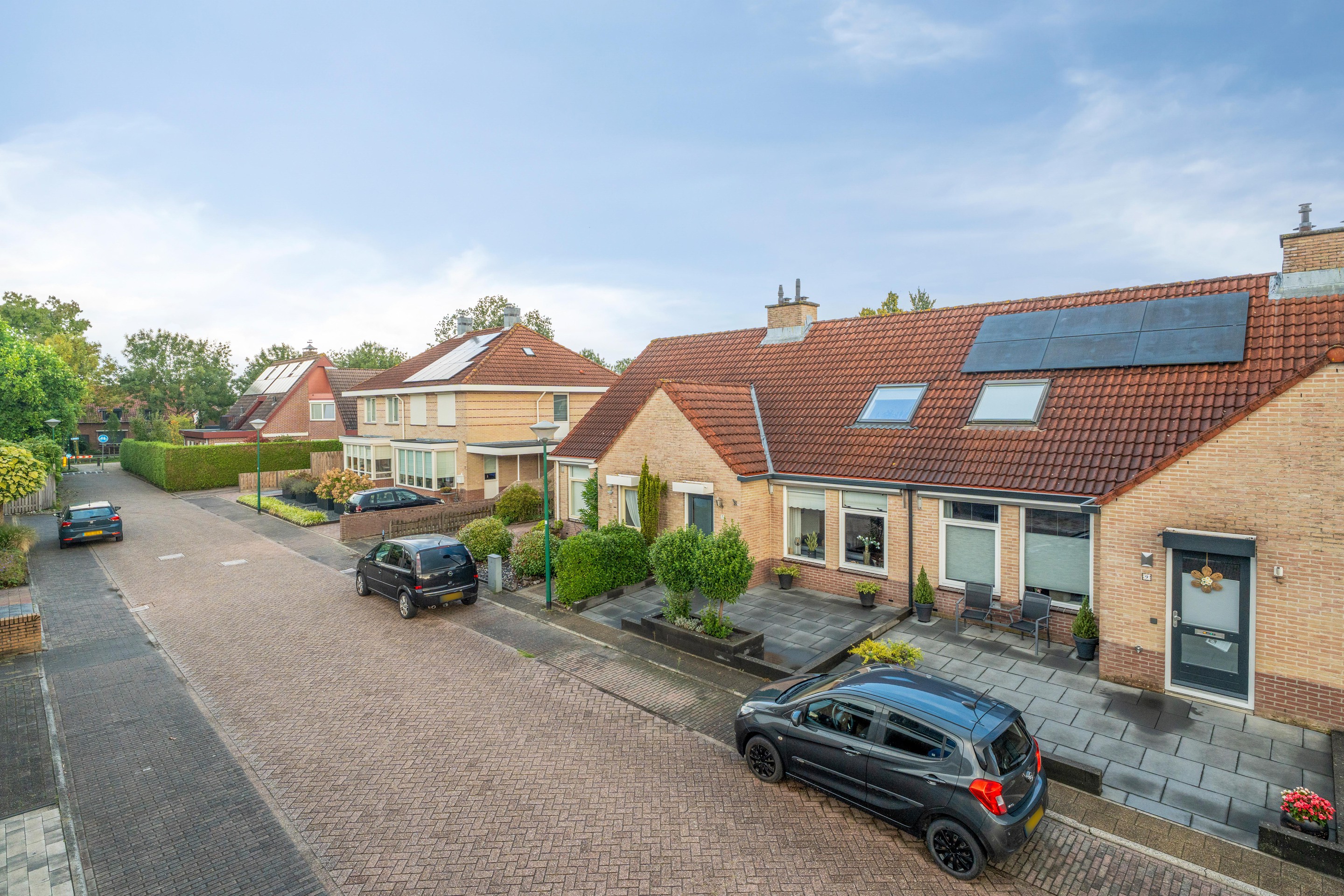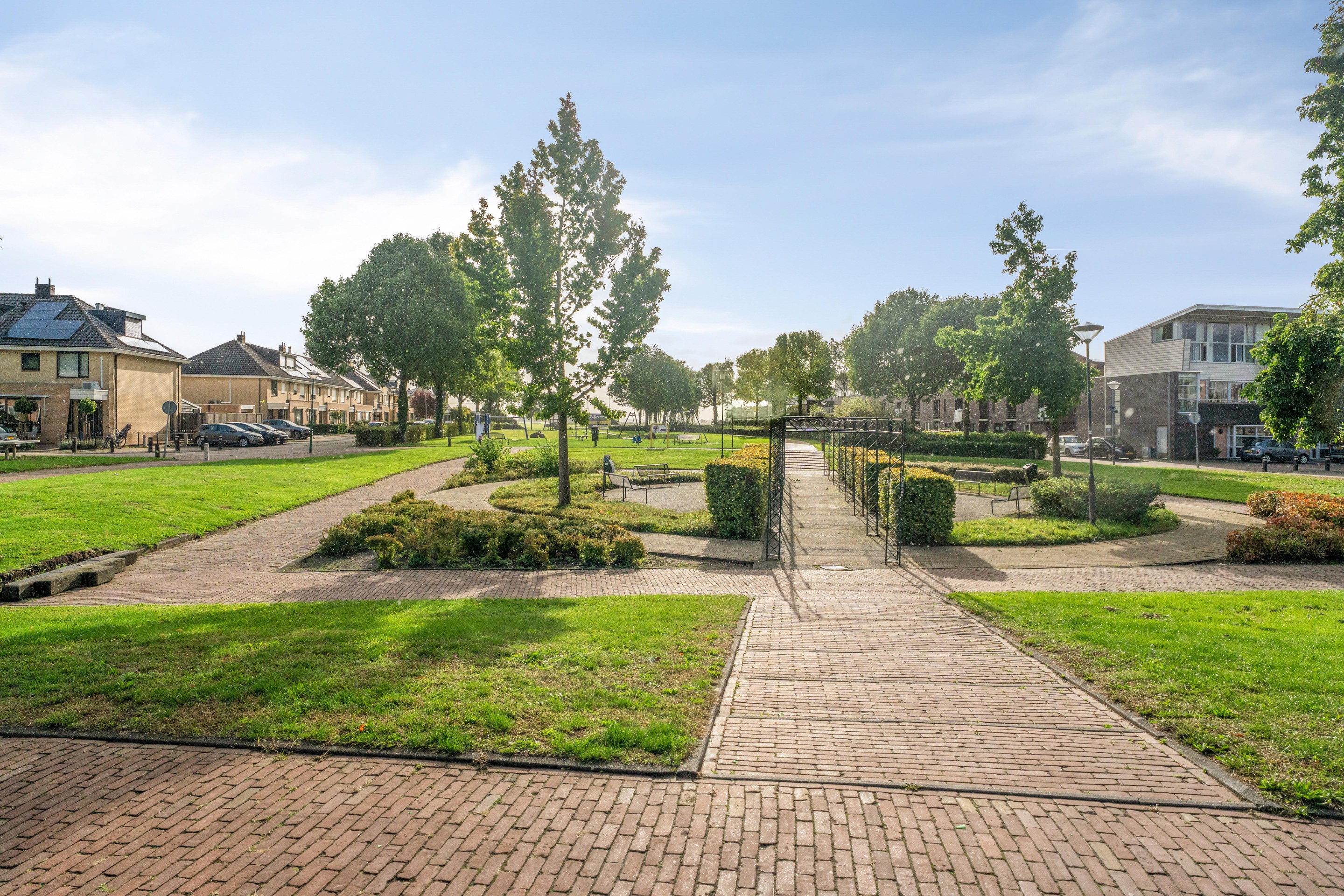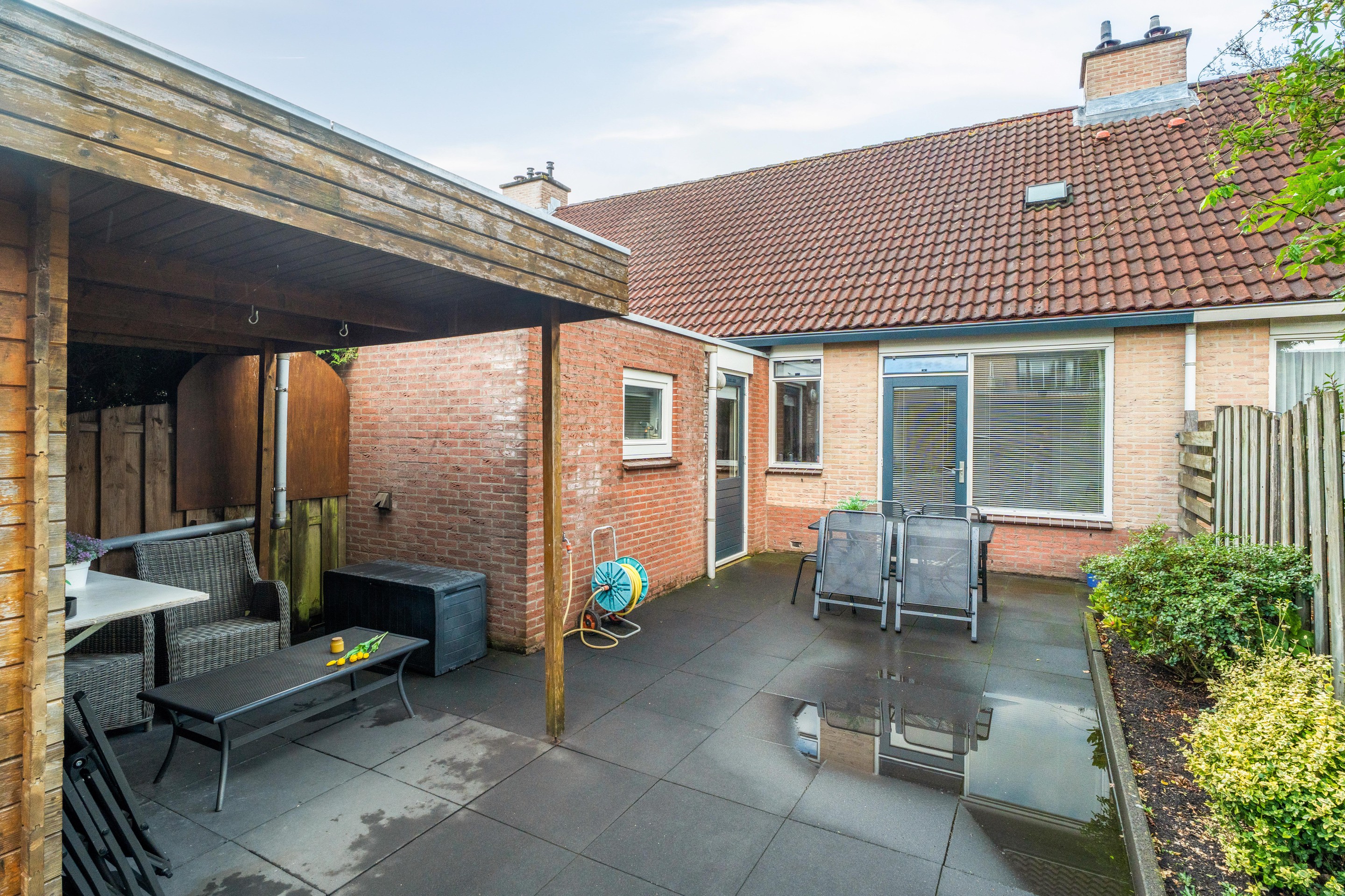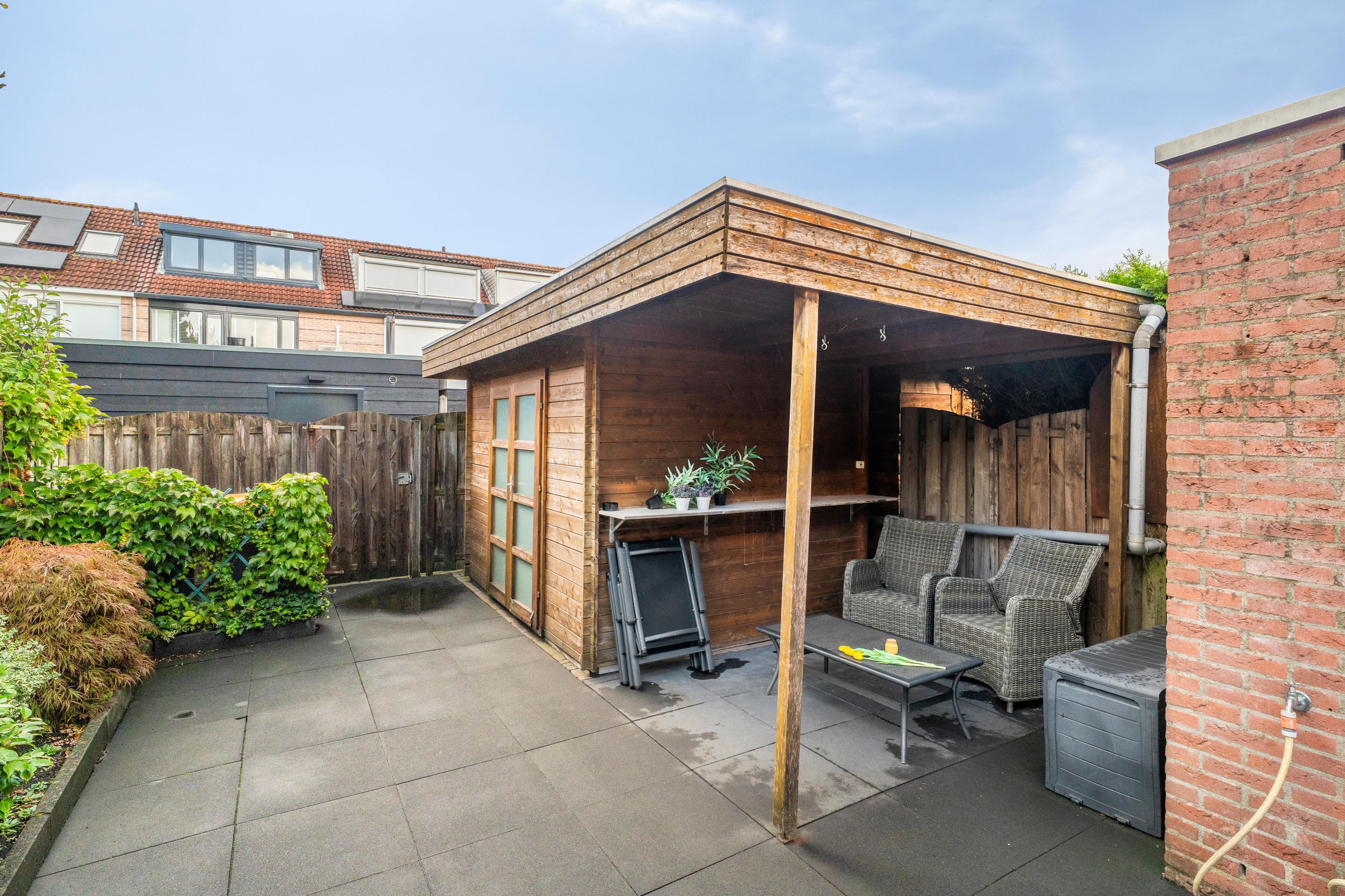 De fraai aangelegde achtertuin is onderhoudsvriendelijk en biedt volop ruimte om buiten te genieten. Er is voldoende plek voor een eettafel en een loungehoek, zodat u zowel in de zon als onder de overkapping heerlijk kunt ontspannen. Dankzij de houten berging met overkapping beschikt u over extra bergruimte en een gezellige plek om tot in de late uurtjes buiten te zitten. De tuin is bereikbaar via een achterom en heeft een mooie combinatie van bestrating en groen, wat zorgt voor een verzorgde uitstraling.