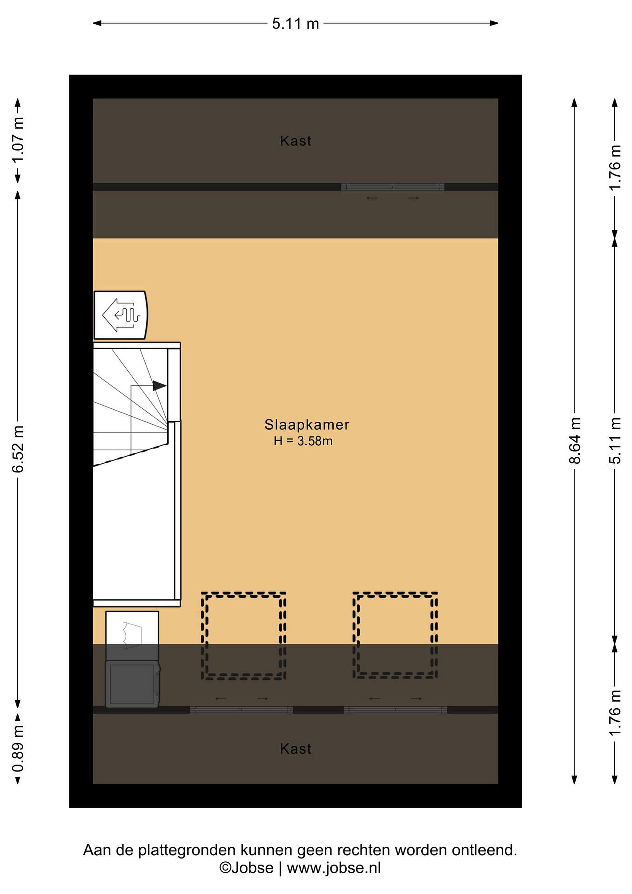 Tweede verdieping Via de vaste trap bereikt u de zolderverdieping. Deze open ruimte kenmerkt zich door de nokhoogte van ca. 3,58 m, wat zorgt voor een ruimtelijk gevoel.