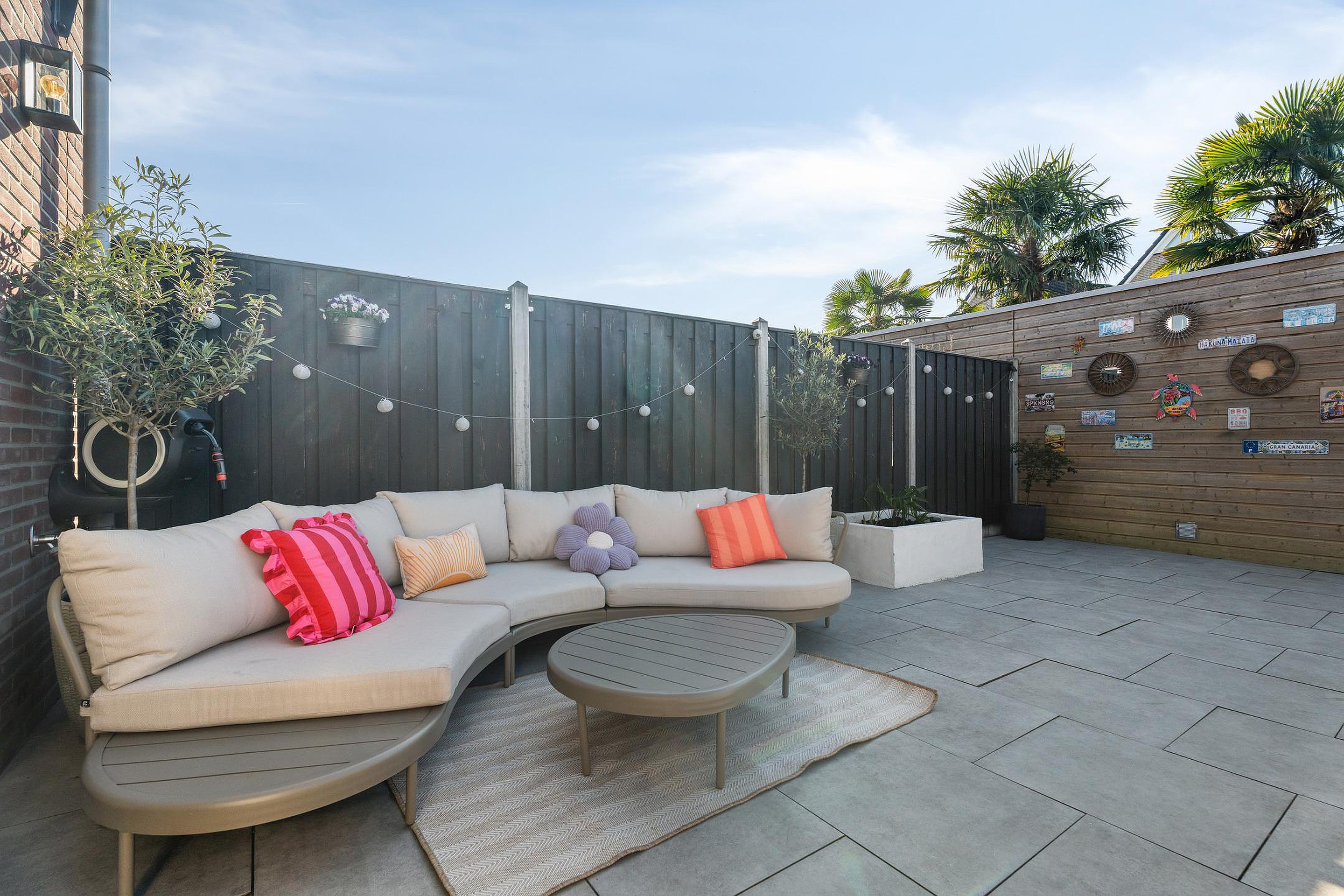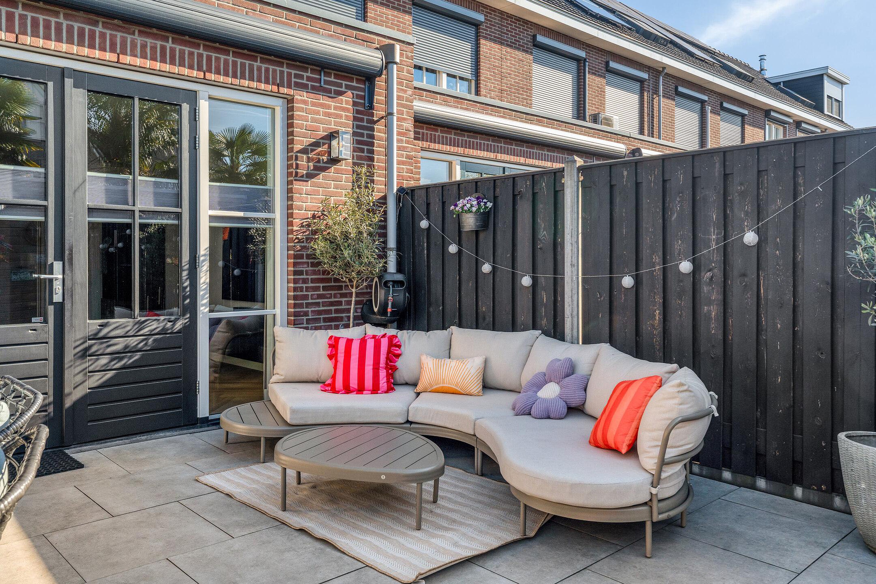Ook buiten klopt het plaatje. De achtertuin ligt op het zuiden en heeft een fijne diepte, waardoor je hier optimaal geniet van de zon en het buitenleven. Een plek waar je net zo makkelijk ontspant als gezellig samenkomt.