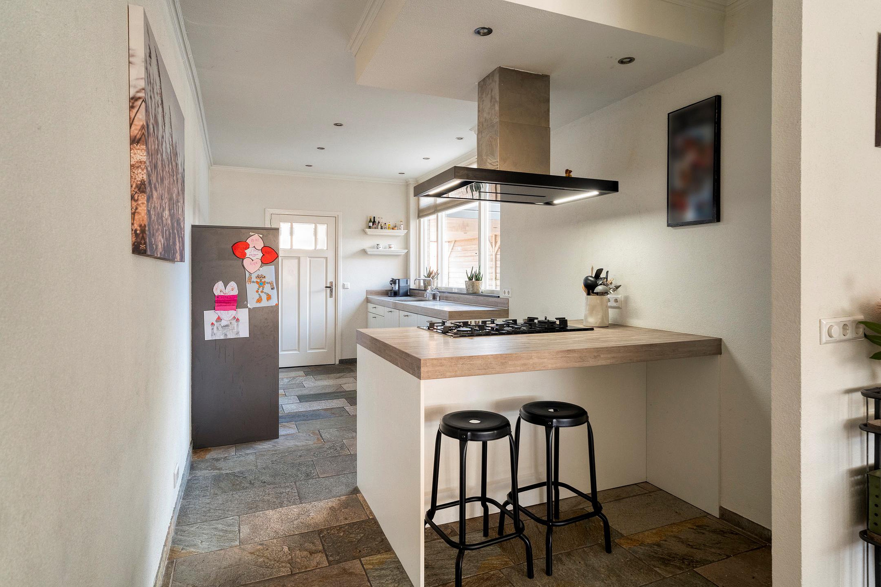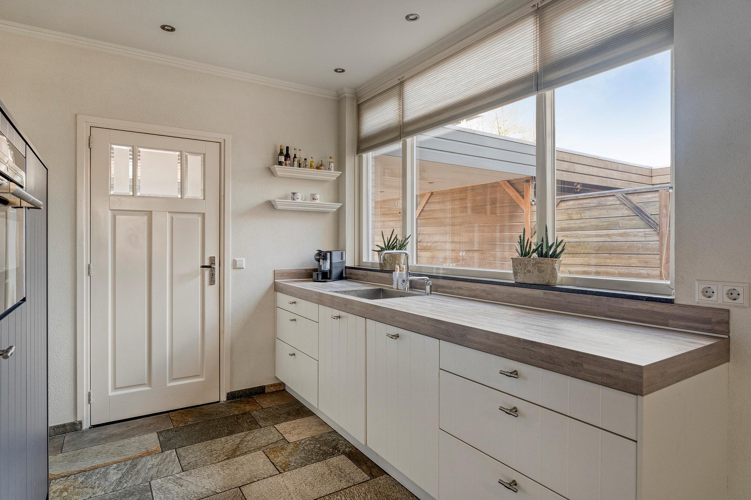 De keuken is gesitueerd aan de voorzijde en voorzien van diverse inbouwapparatuur. Aansluitend bevindt zich de praktische bijkeuken met extra bergruimte.