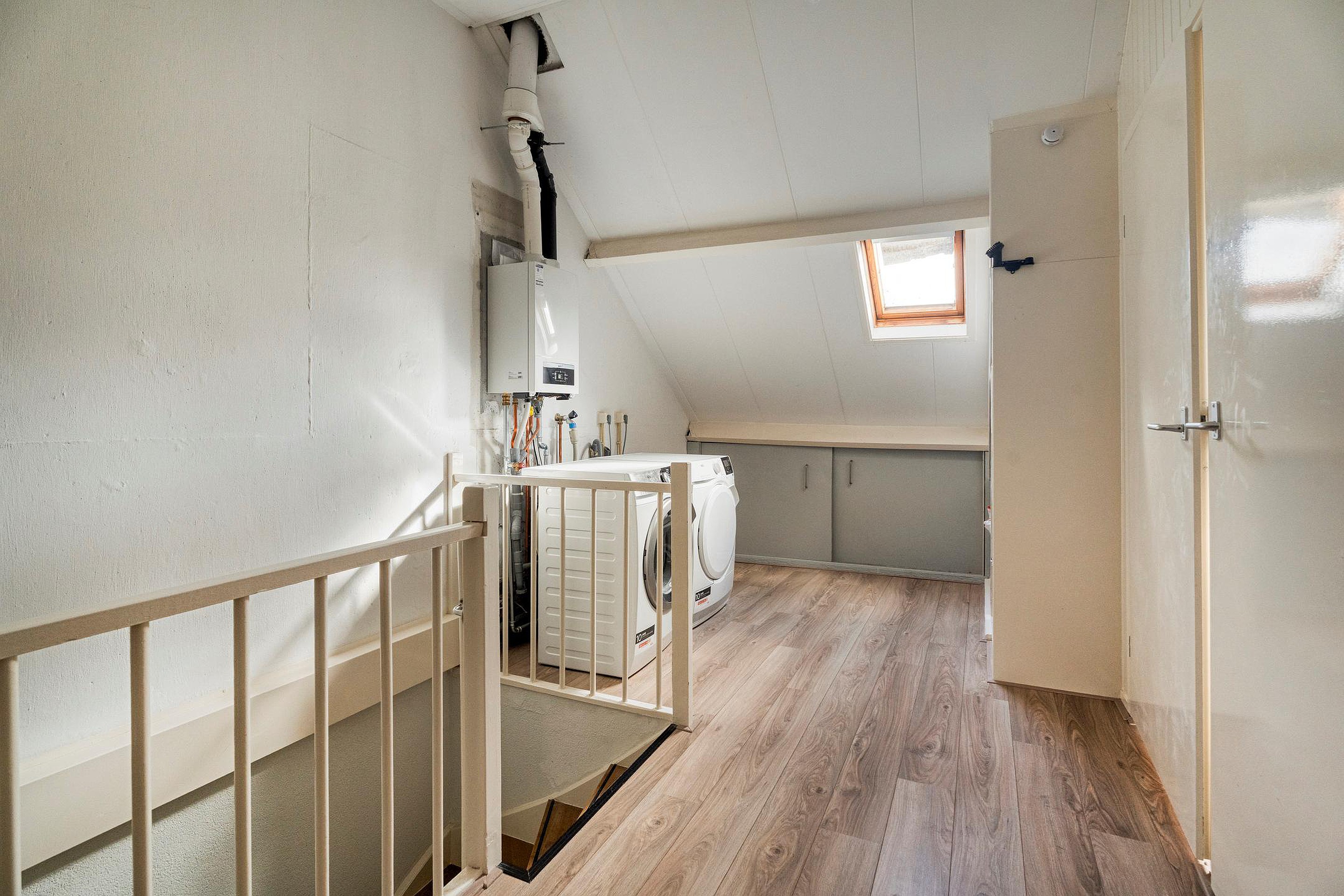 Op de overloop is tevens de opstelling voor de wasapparatuur gesitueerd en is er extra bergruimte aanwezig. Dankzij de dakramen genieten de ruimtes van prettig daglicht.