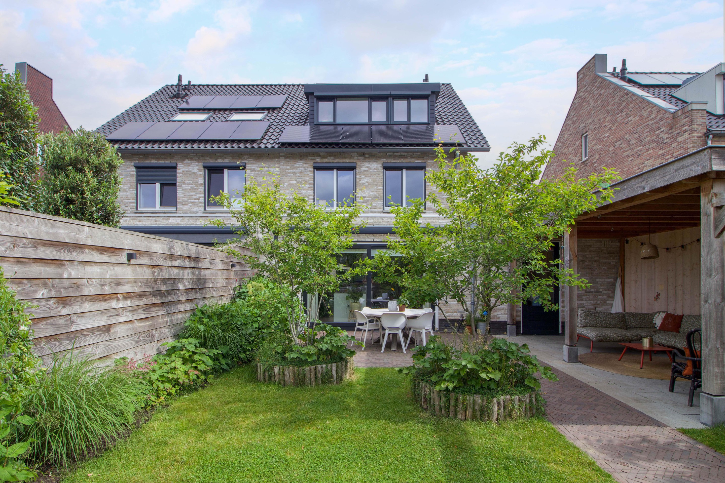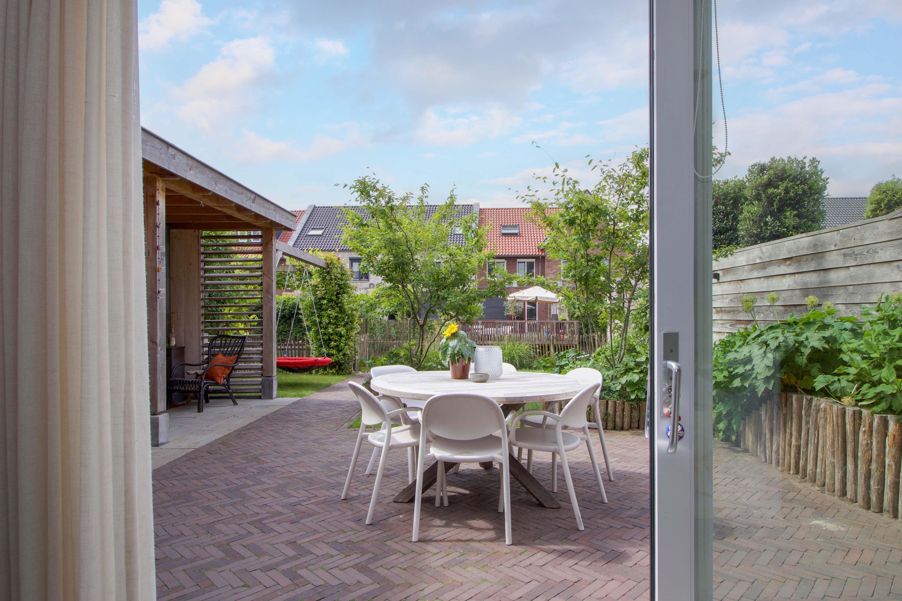 Buiten wacht een zonnige tuin op het zuiden, waar je vanaf het voorjaar tot ver in het najaar geniet van lange dagen in de zon. Het royale perceel van 266 m2 geeft je de vrijheid om te ontspannen, te spelen of uitgebreid te tafelen met familie en vrienden. Hier ervaar je rust en privacy, met alle ruimte om het buitenleven optimaal te beleven.