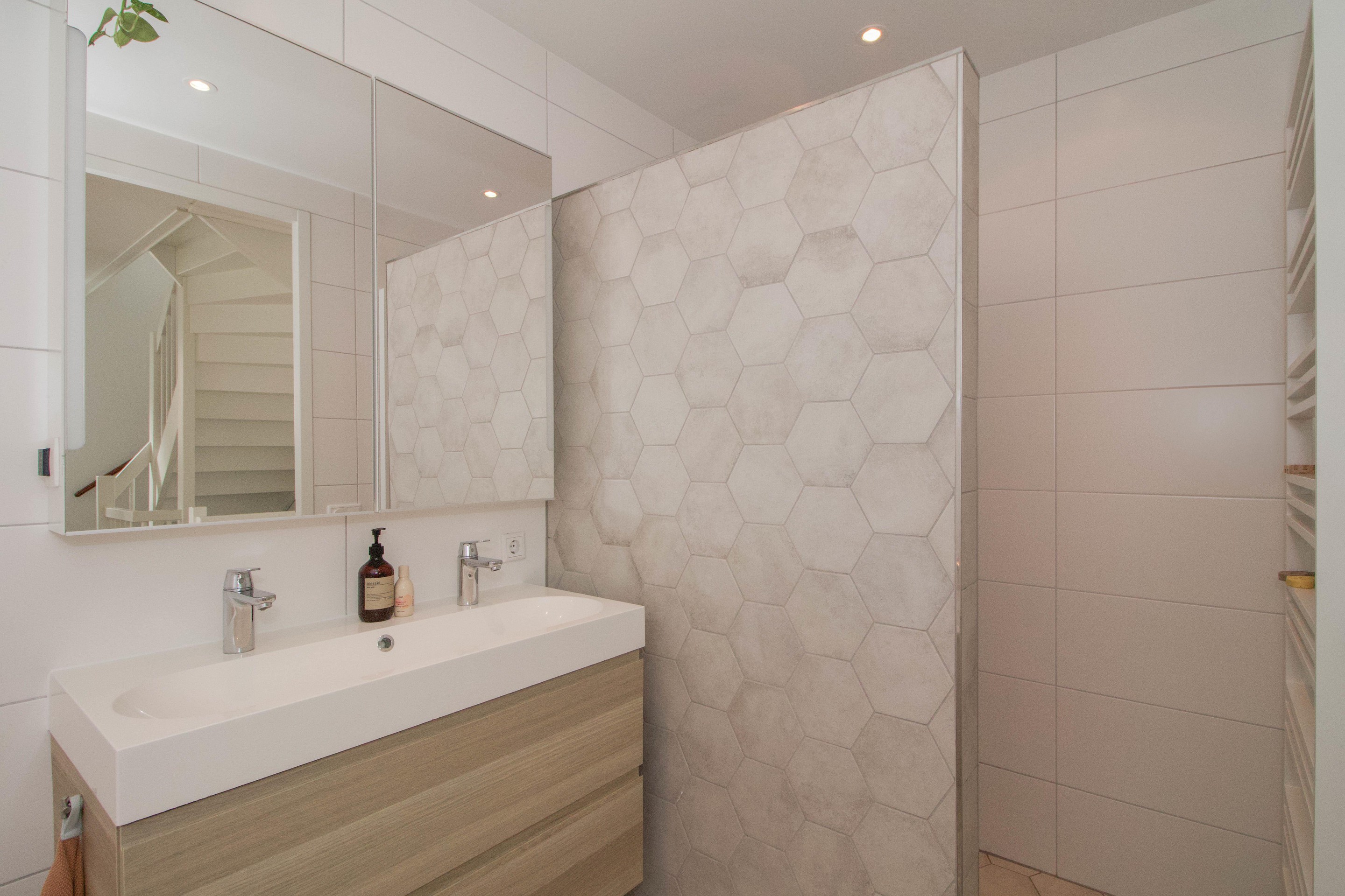 De leefruimte is royaal en doordacht ingedeeld, met als stralend middelpunt de ruime woonkeuken. Dit is geen plek om alleen te koken, maar om samen te komen. Lange avonden met vrienden, kinderen die hun huiswerk maken aan de keukentafel, een kop koffie in de ochtendzon of een verjaardag met familie; hier speelt het gezinsleven zich af. De moderne afwerking en hoogwaardige materialen zorgen voor een stijlvolle en rustige basis waarin ieder detail op zijn plek valt.