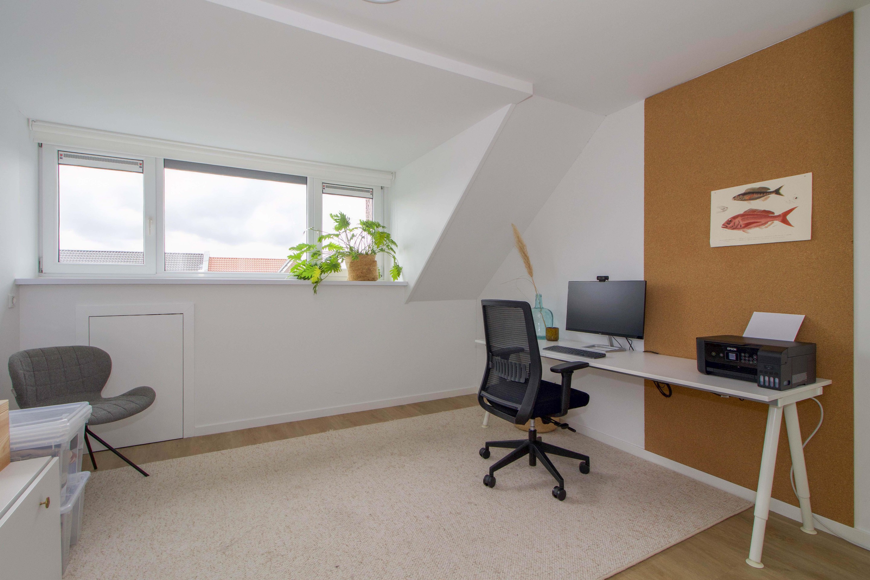 Aansluitend bevindt zich de volledig geïsoleerde garage, direct verbonden met de woning. Een praktische ruimte die al snel een onmisbaar verlengstuk van het huis wordt. Of het nu gaat om hobby, opslag of gewoon het gemak van binnendoor naar binnen stappen, dit is comfort waar je snel aan gewend raakt.