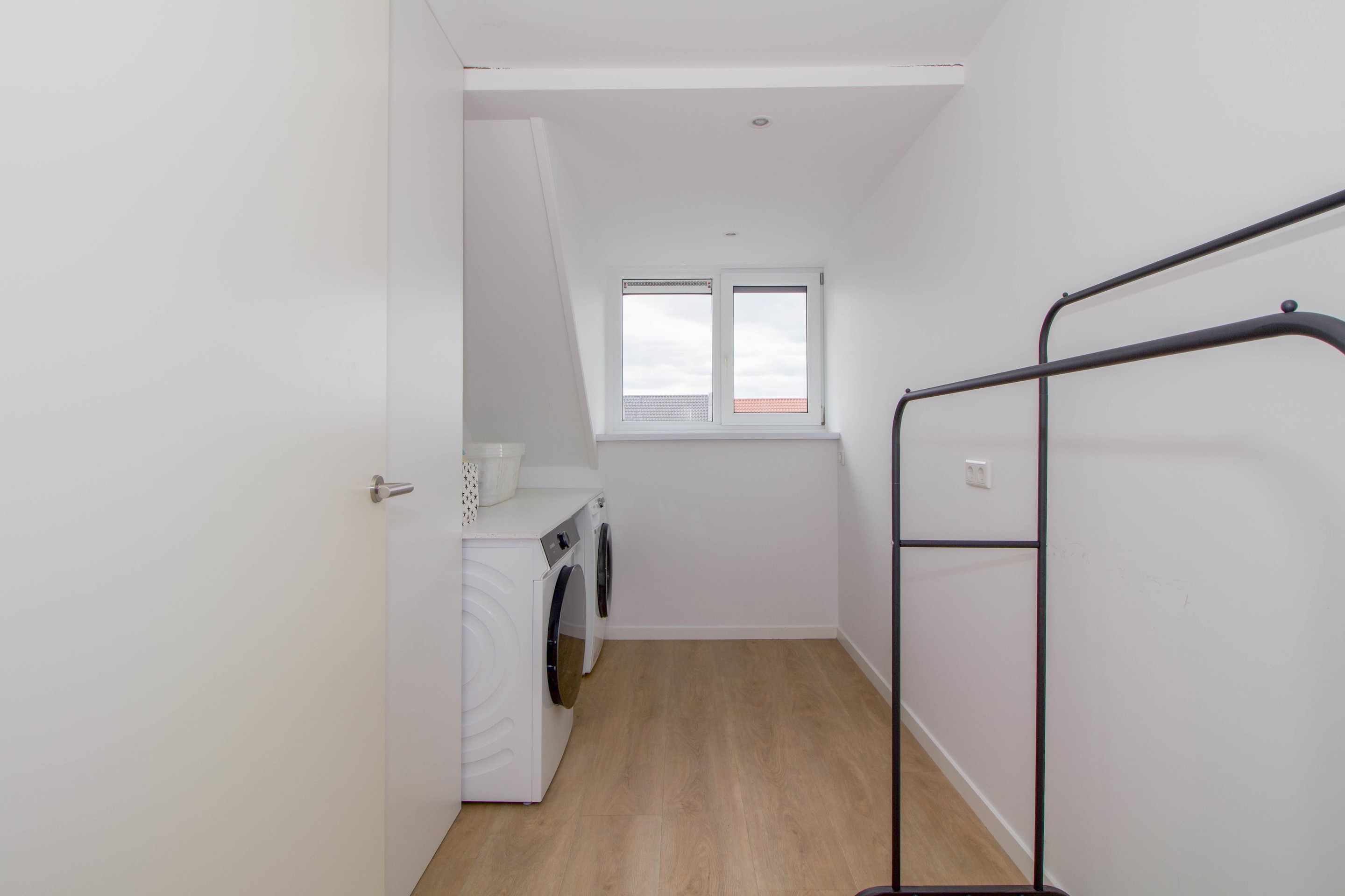 Tweede verdieping Overloop met toegang tot drie slaapkamers. In één van de slaapkamers bevindt zich de aansluiting voor de wasmachine en is tevens de opstelling voor de cv-installatie aanwezig. Daarnaast is er extra bergruimte achter de knieschotten en een separate berging.