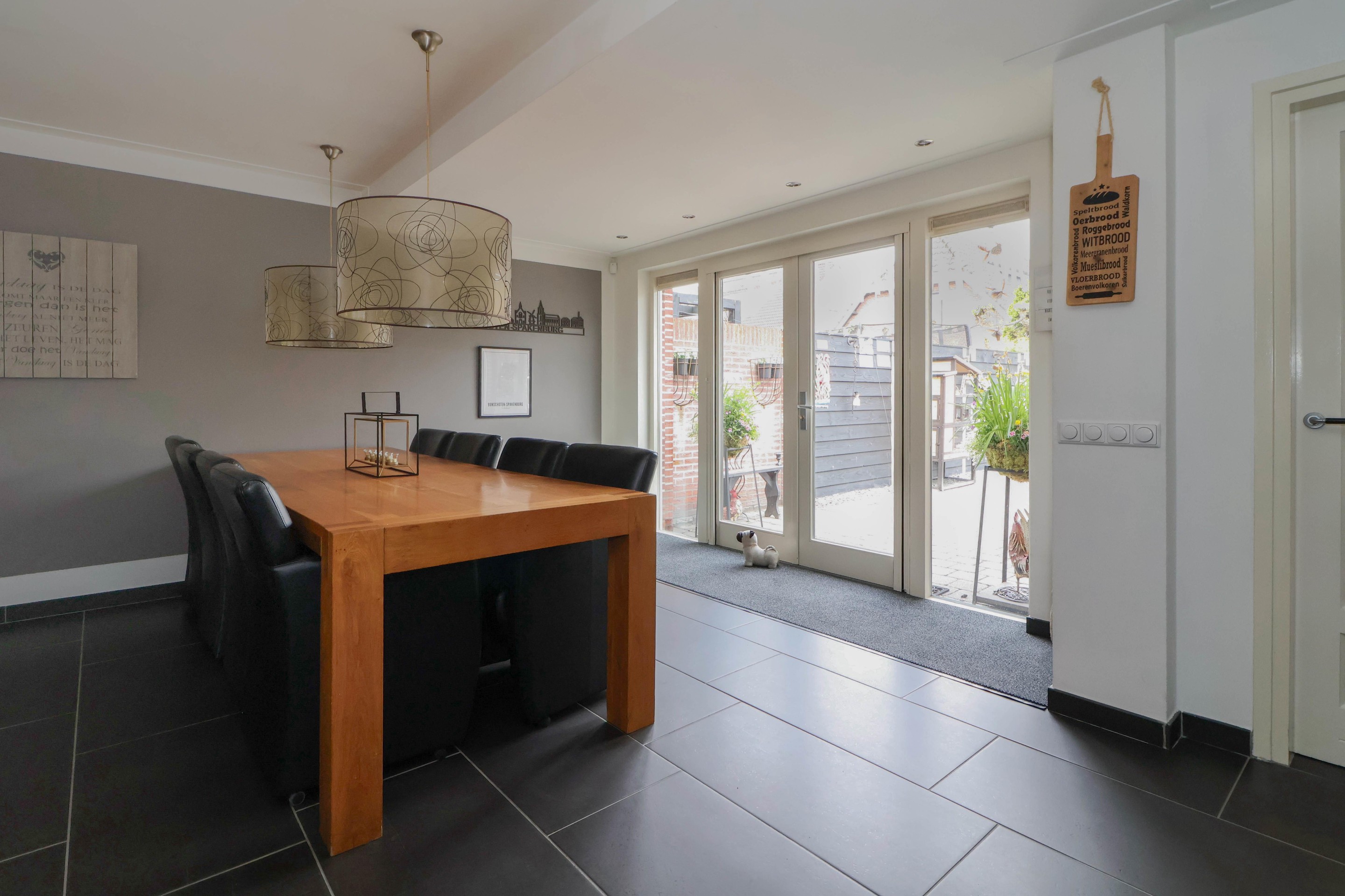 Binnen wacht een heerlijk lichte woonkamer met een charmante erker aan de voorzijde, die zorgt voor een warme, open sfeer en volop daglicht. Aan de achterzijde ligt de royale woonkeuken — een plek waar gekookt, gelachen en geleefd wordt. De open indeling maakt dit het kloppend hart van het huis, perfect voor gezinnen of voor wie graag gasten ontvangt.