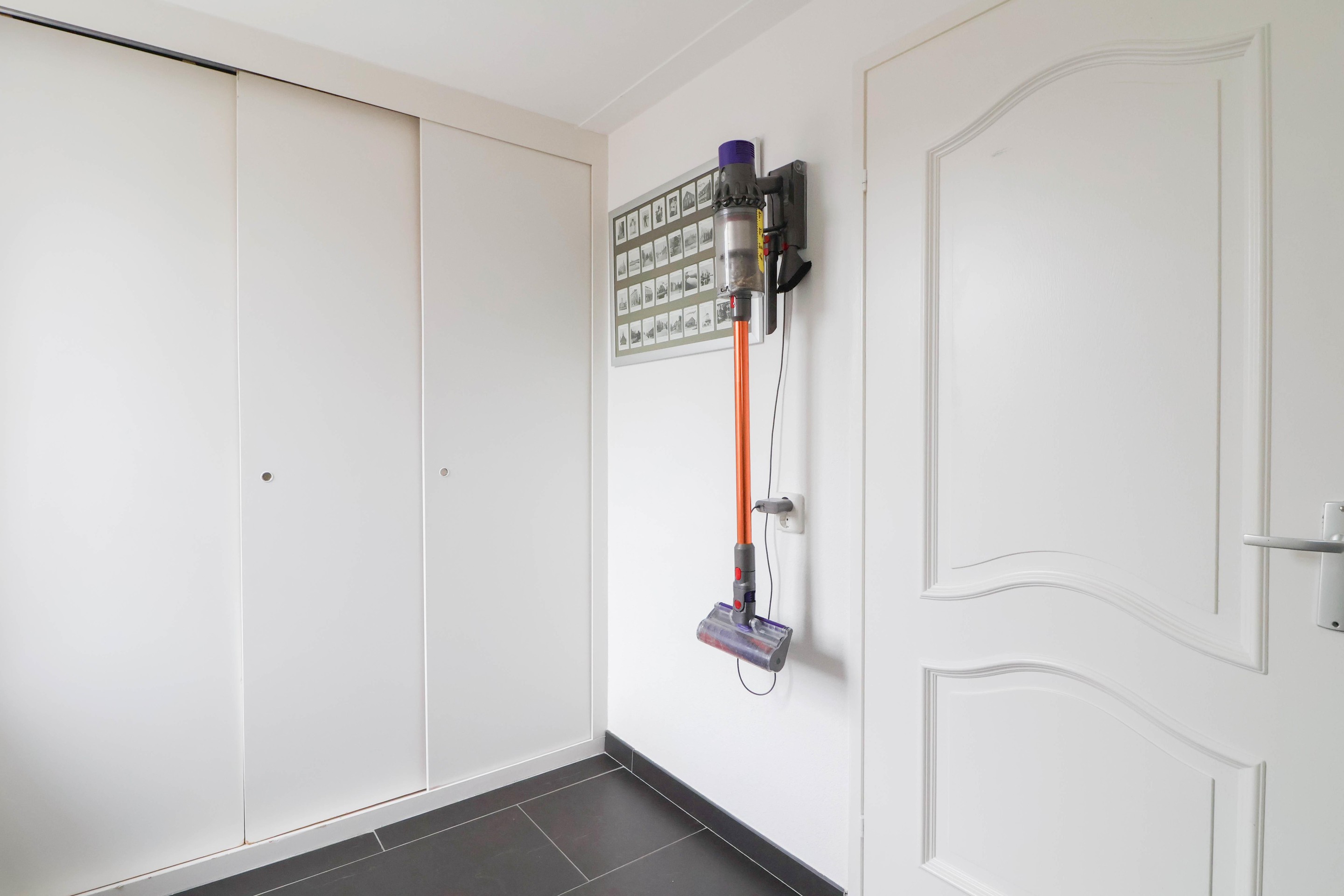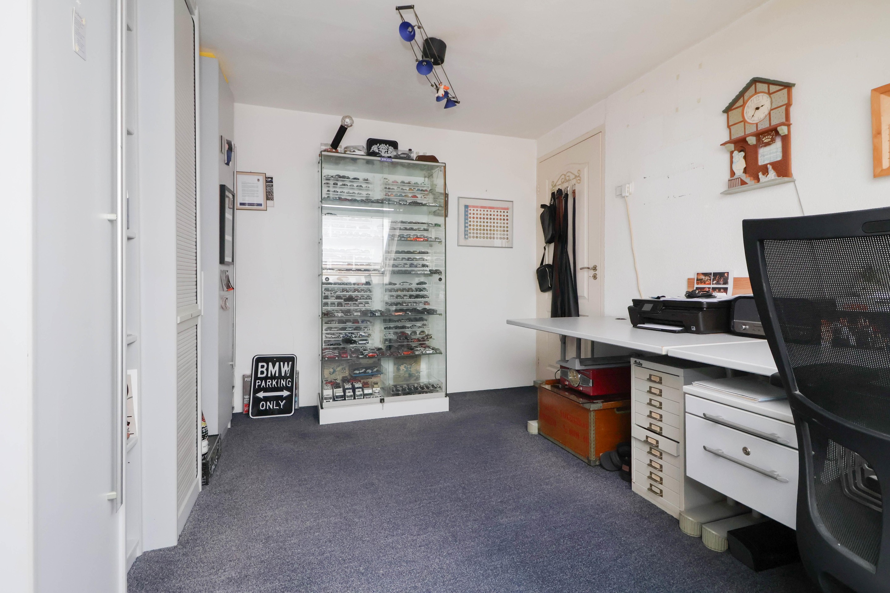 En dan de garage: volledig geïsoleerd en direct vanuit de woning bereikbaar. Ideaal als werkruimte, hobbyplek of simpelweg als praktische uitbreiding van je woonoppervlak. Dankzij de vliering erboven beschik je bovendien over verrassend veel bergruimte — alles uit het zicht, maar altijd binnen handbereik.