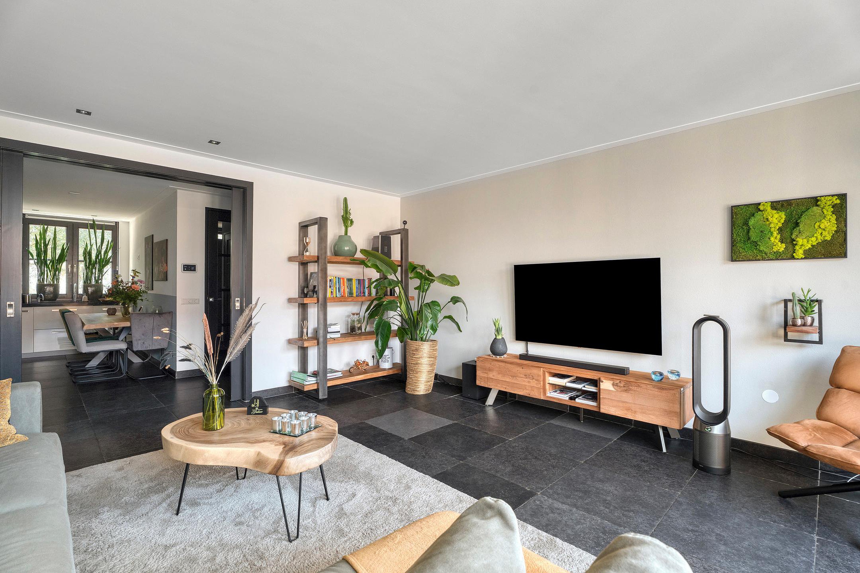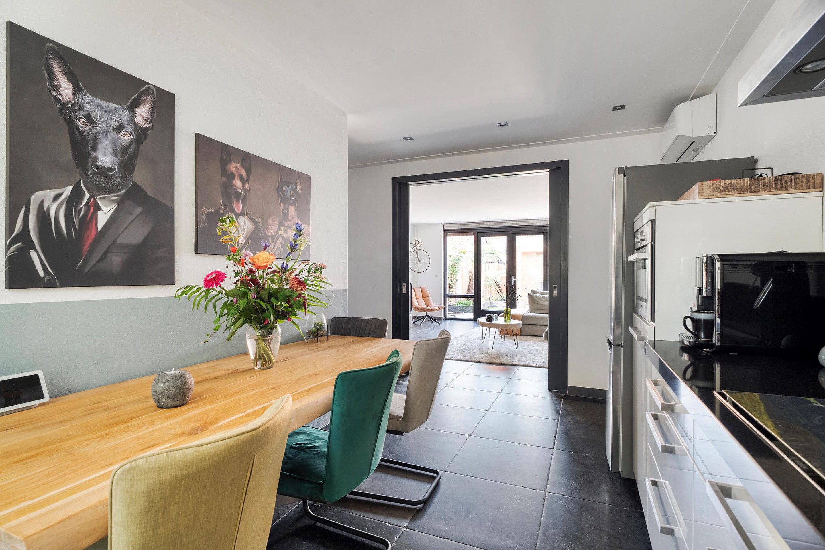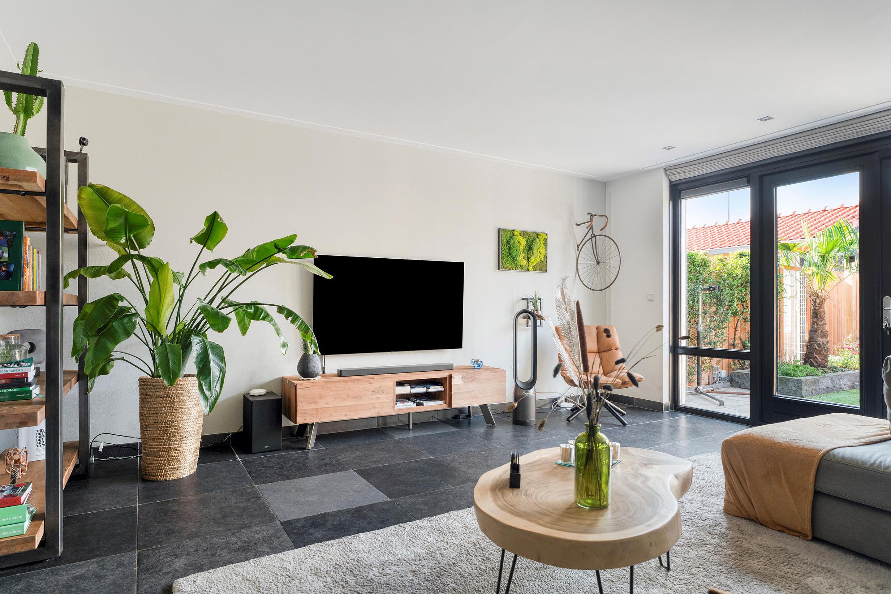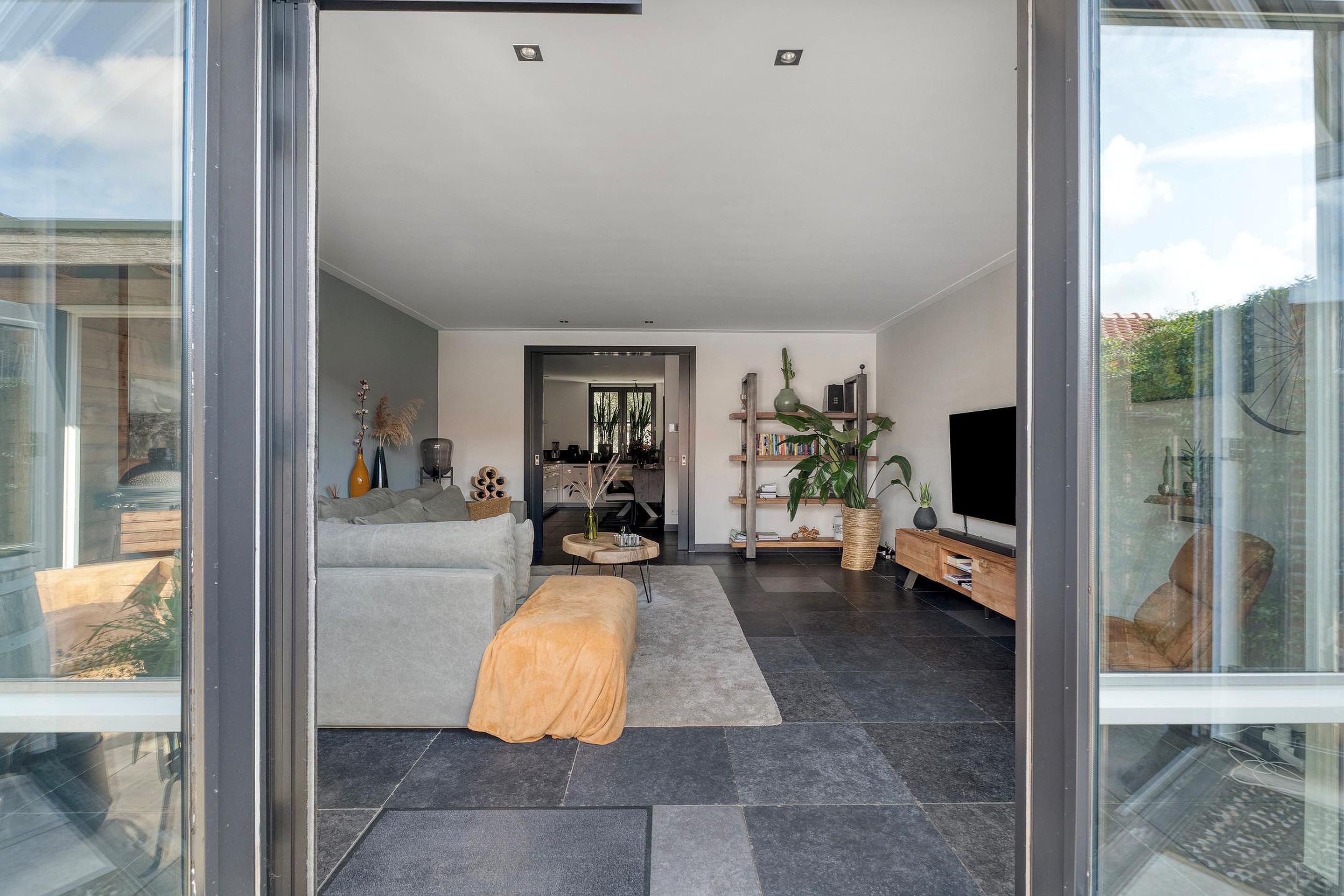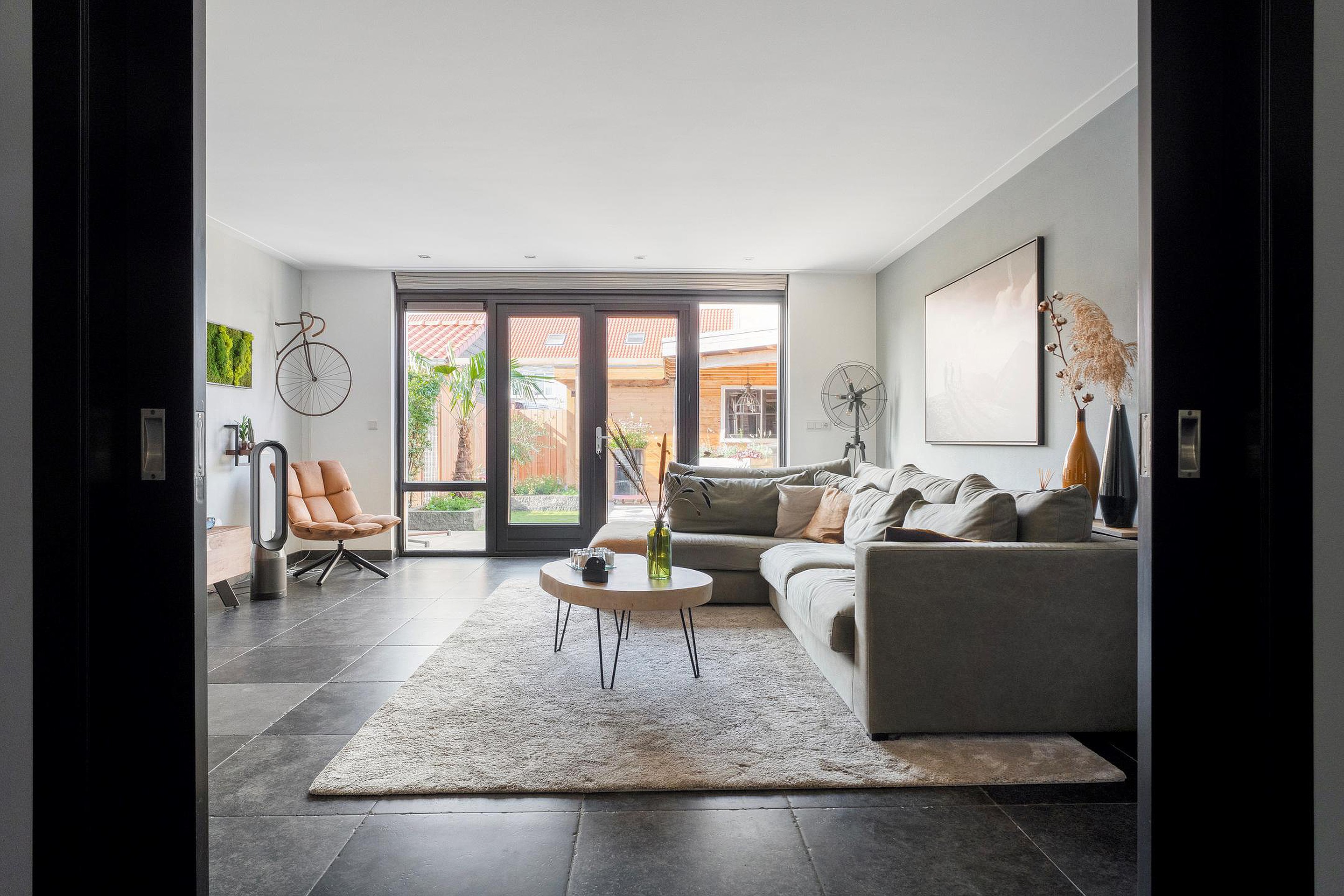 Aansluitend bereikt u de tuingerichte woonkamer. Deze royale en lichte ruimte strekt zich uit over de volledige breedte van de woning en biedt volop mogelijkheden voor een comfortabele zithoek en een ruime eettafel. Via dubbele openslaande deuren heeft u direct toegang tot de achtertuin, waardoor binnen en buiten mooi in elkaar overlopen.