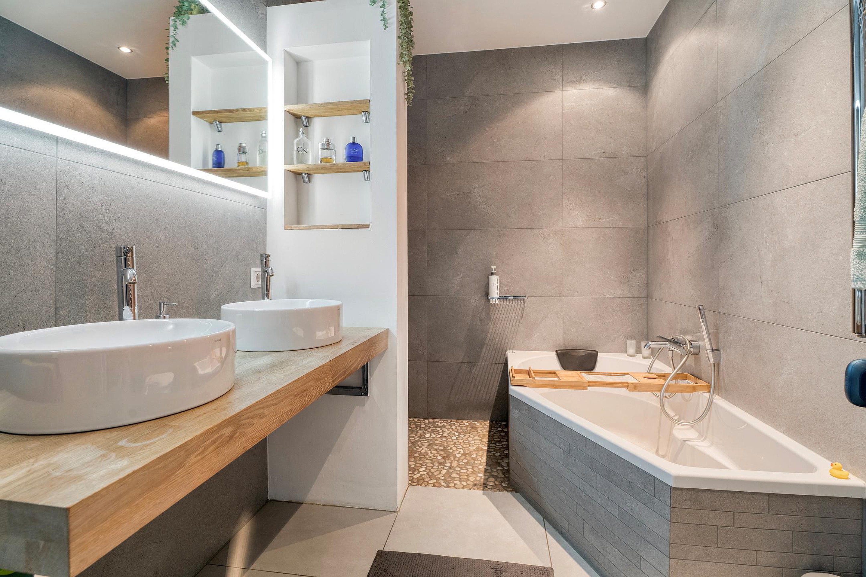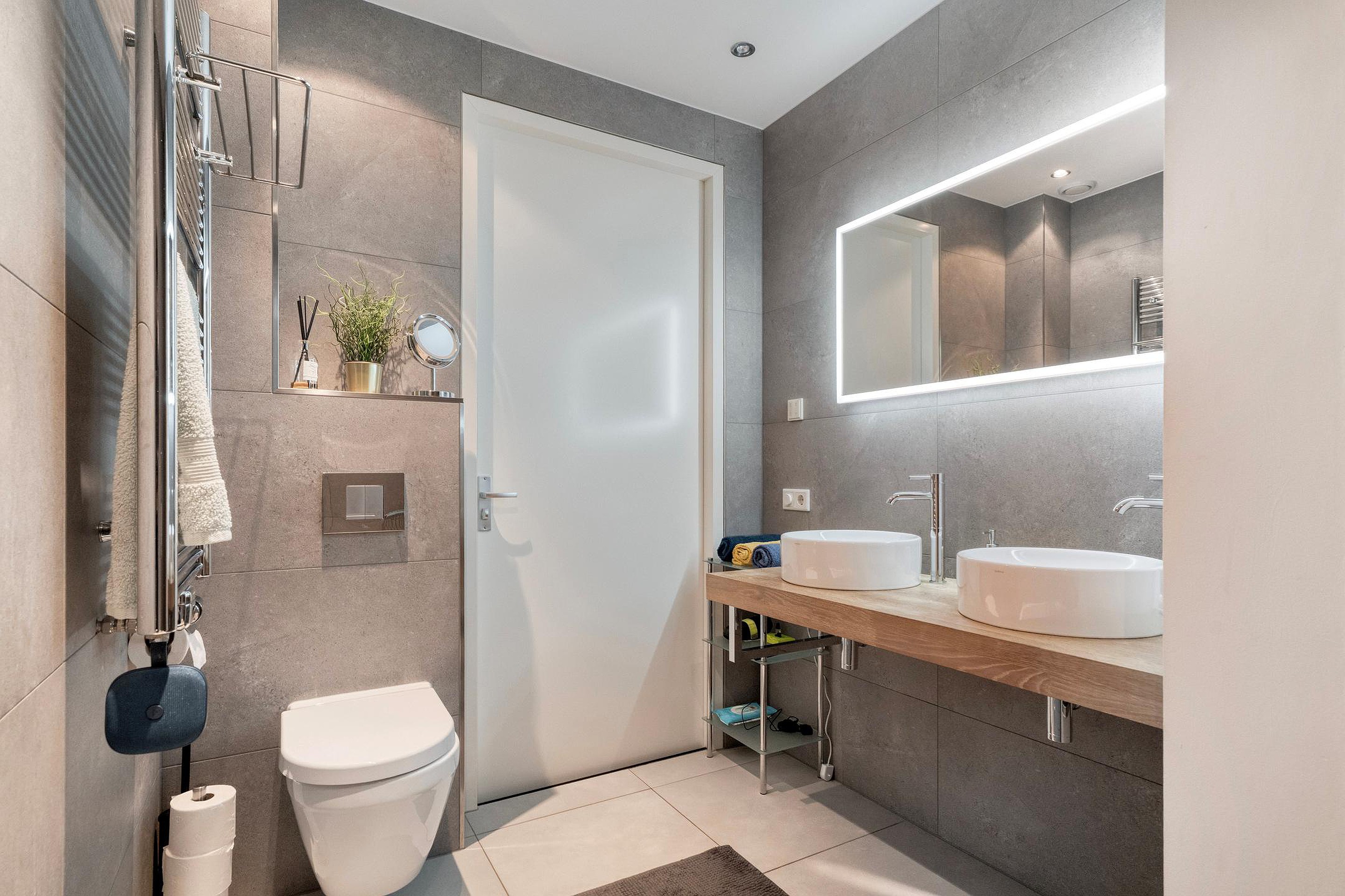 Centraal op de verdieping ligt de badkamer. Deze is modern en compleet uitgerust met een ligbad, tweede toilet, dubbele wastafel en een separate douche. Dankzij de praktische indeling is de badkamer zowel functioneel als comfortabel in gebruik.